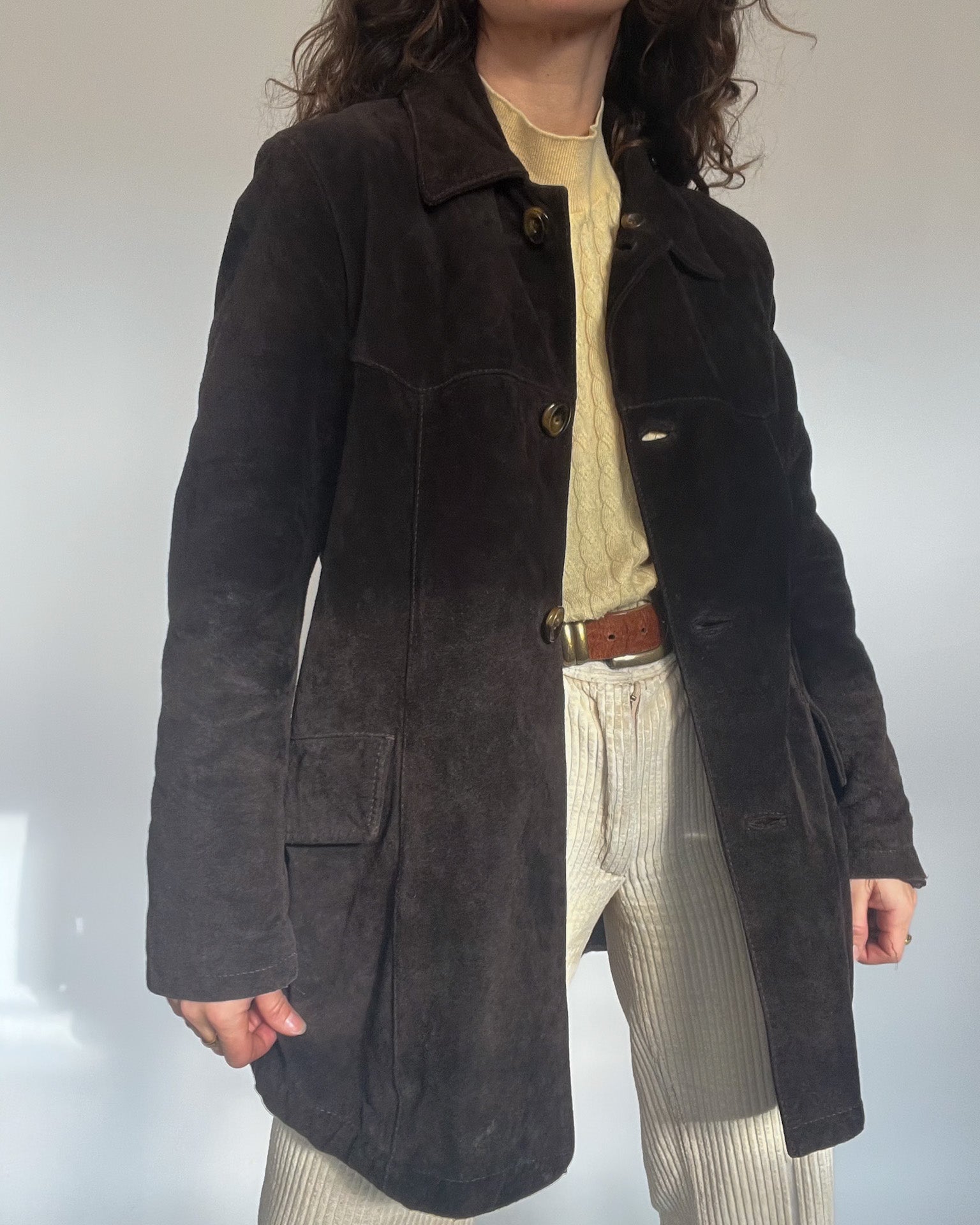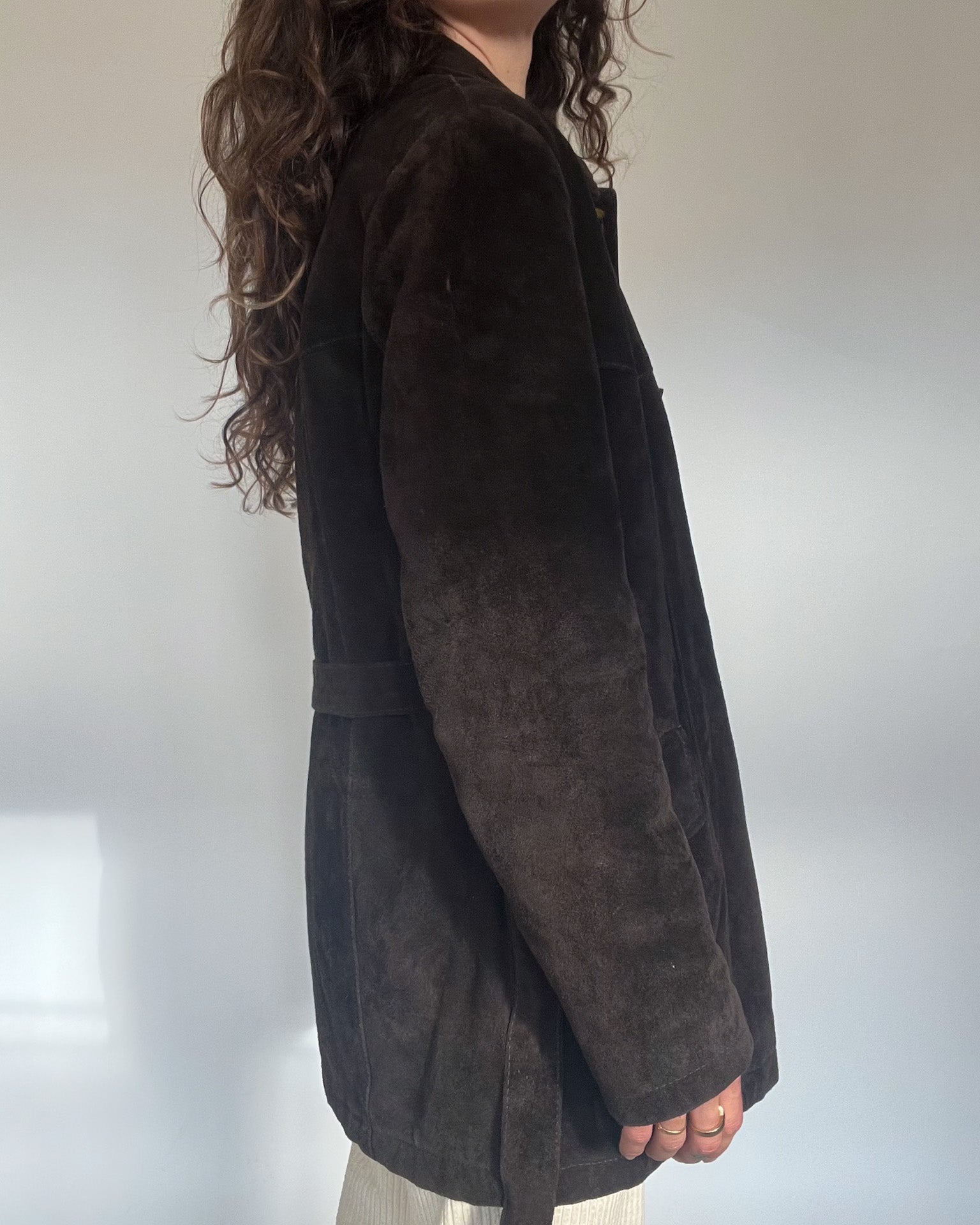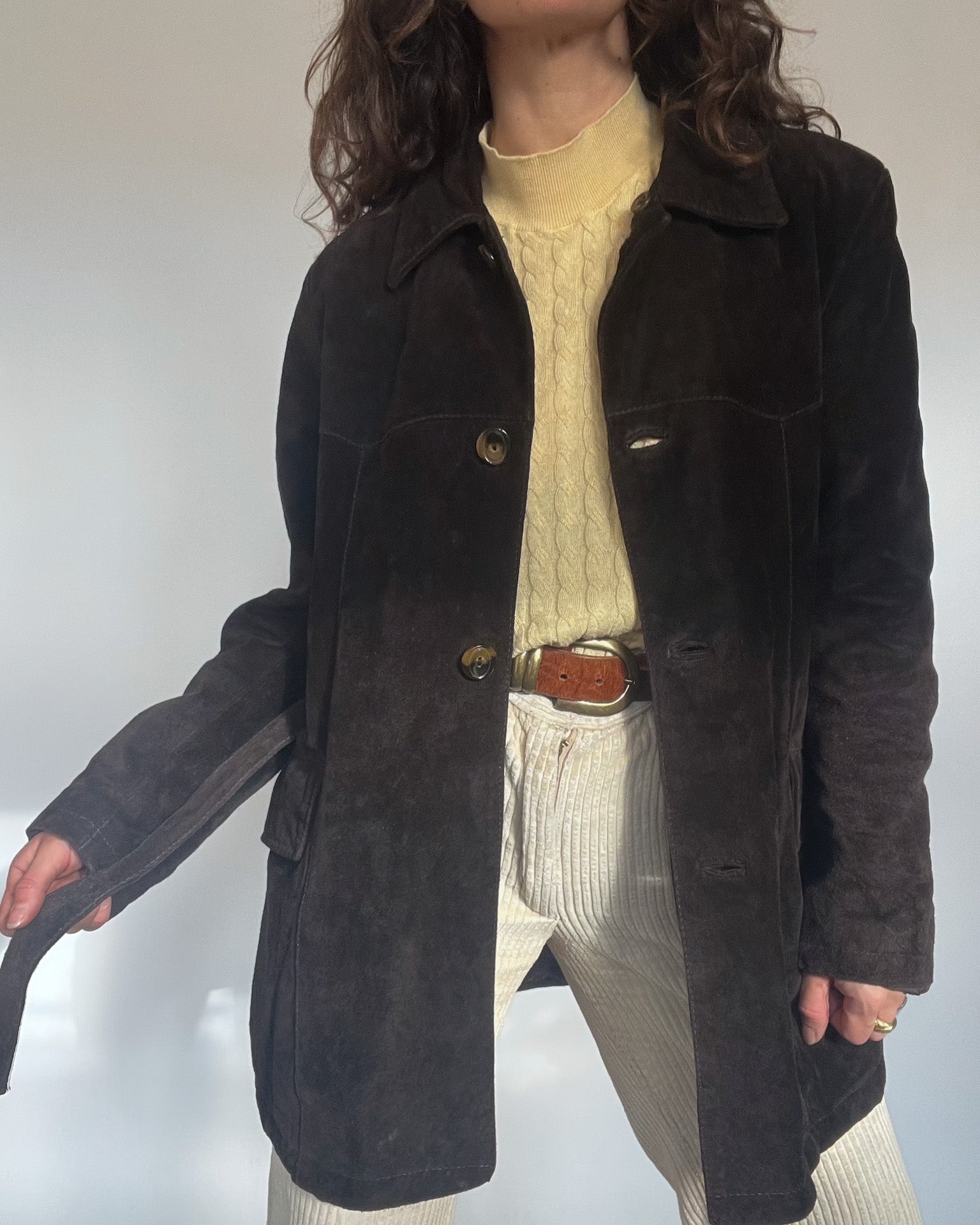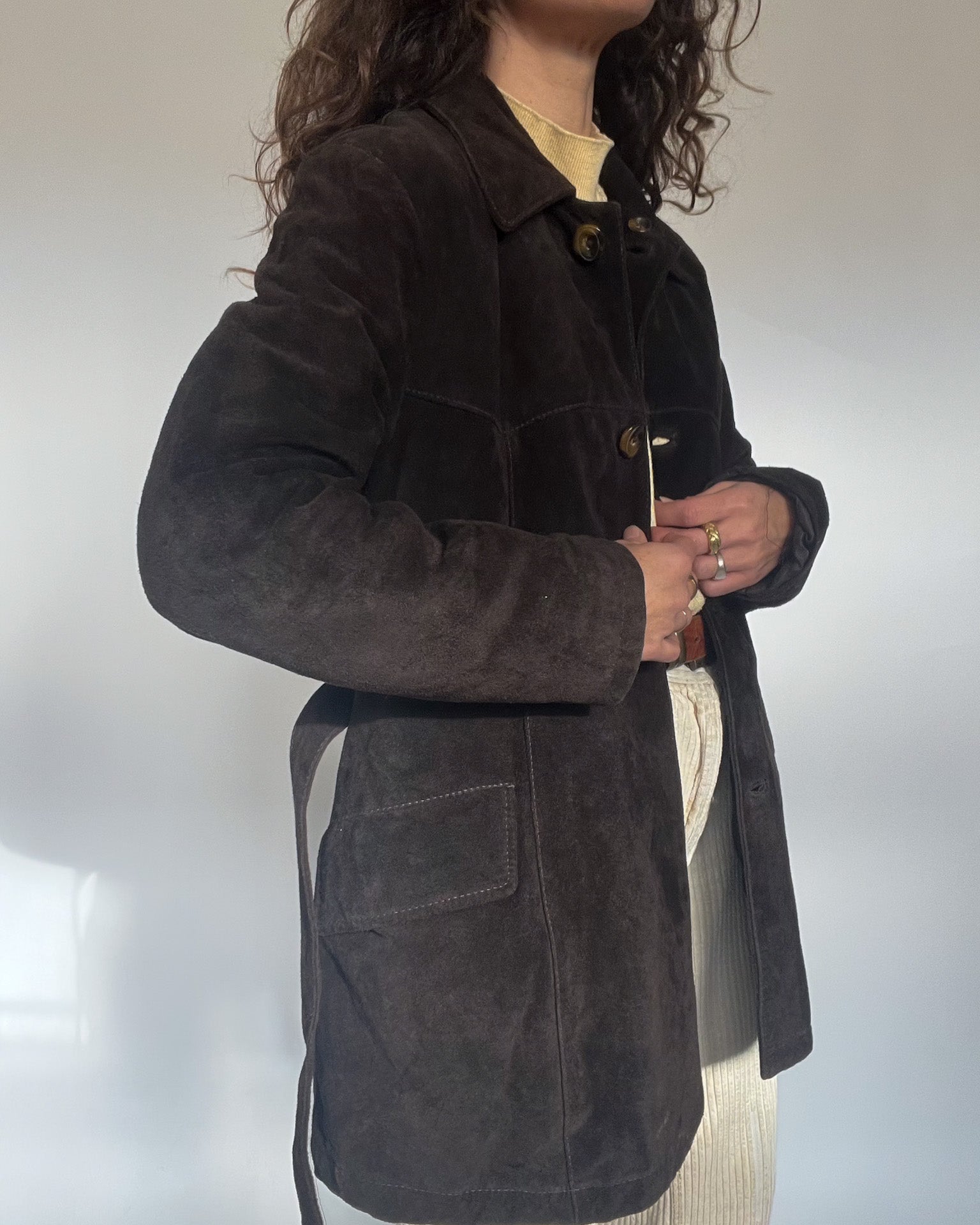 This coat is an absolute favorite of mine, with its perfect fit and exceptionnel quality. The rich brown color and velvet texture add a cozy yet chic vibe, making it an ideal pièce for staying stylish and warm in the coller months. Thanks!!