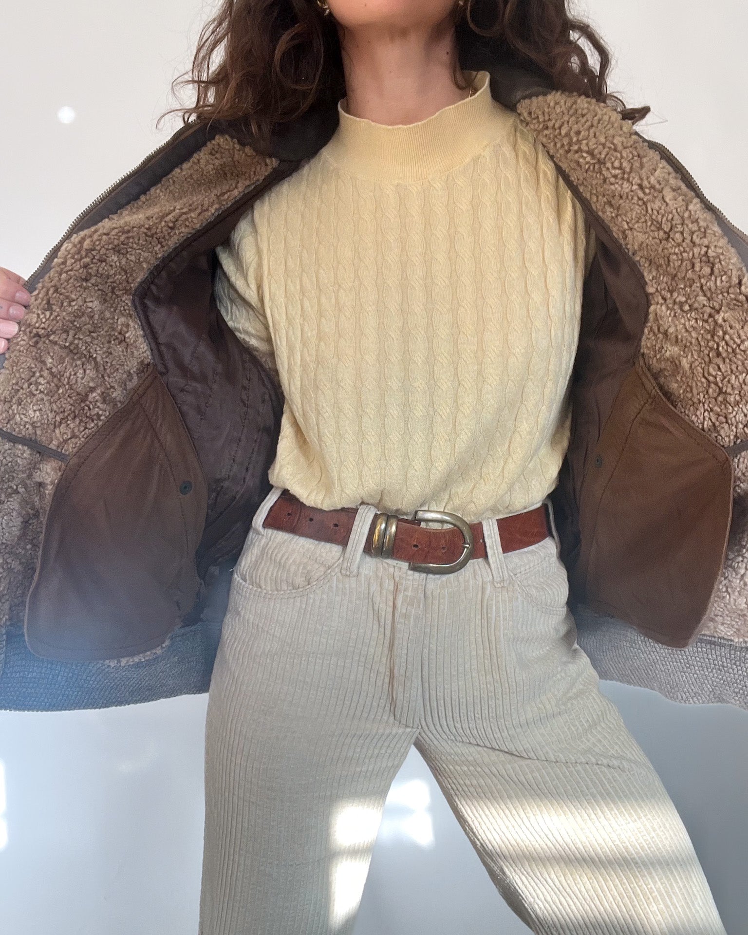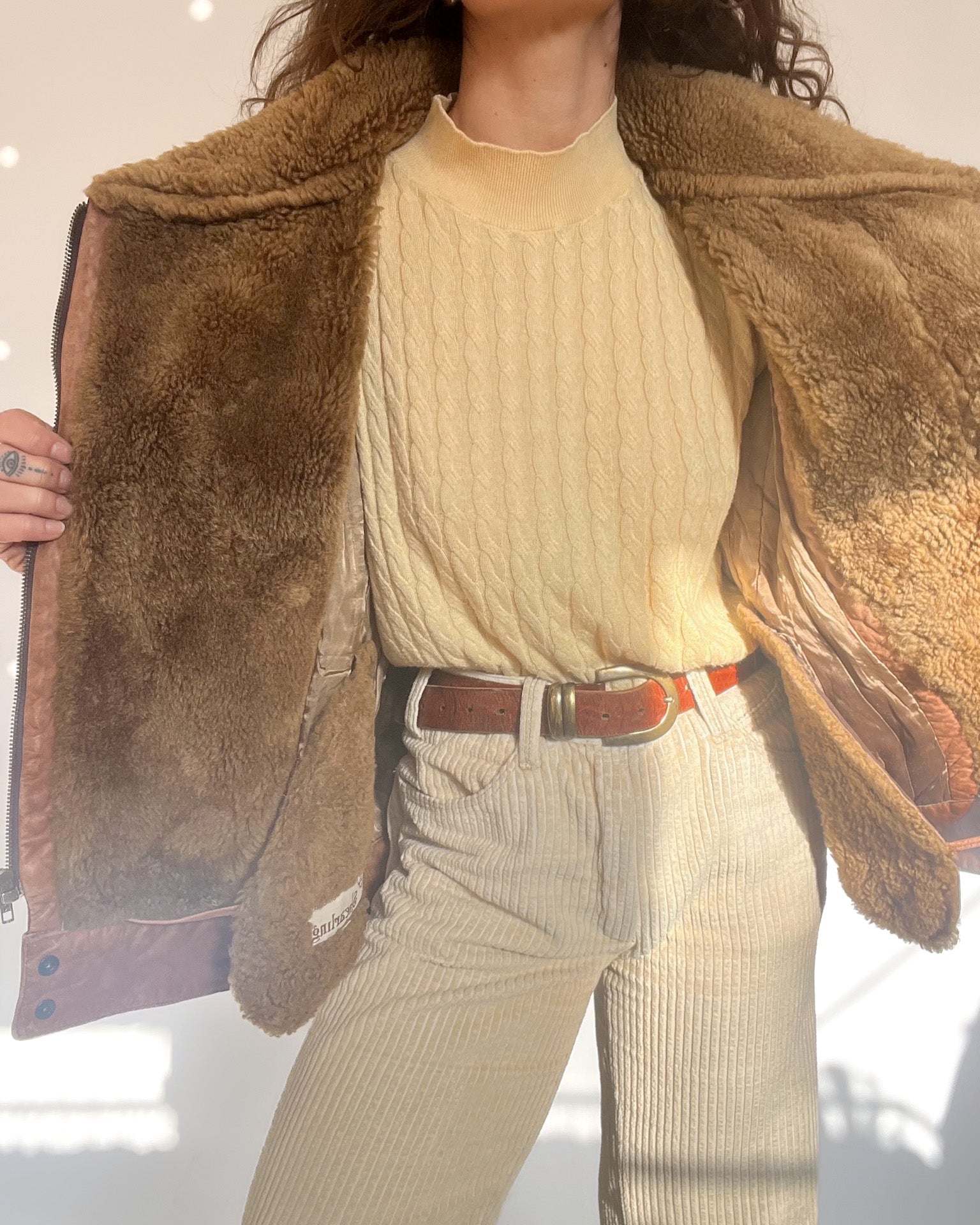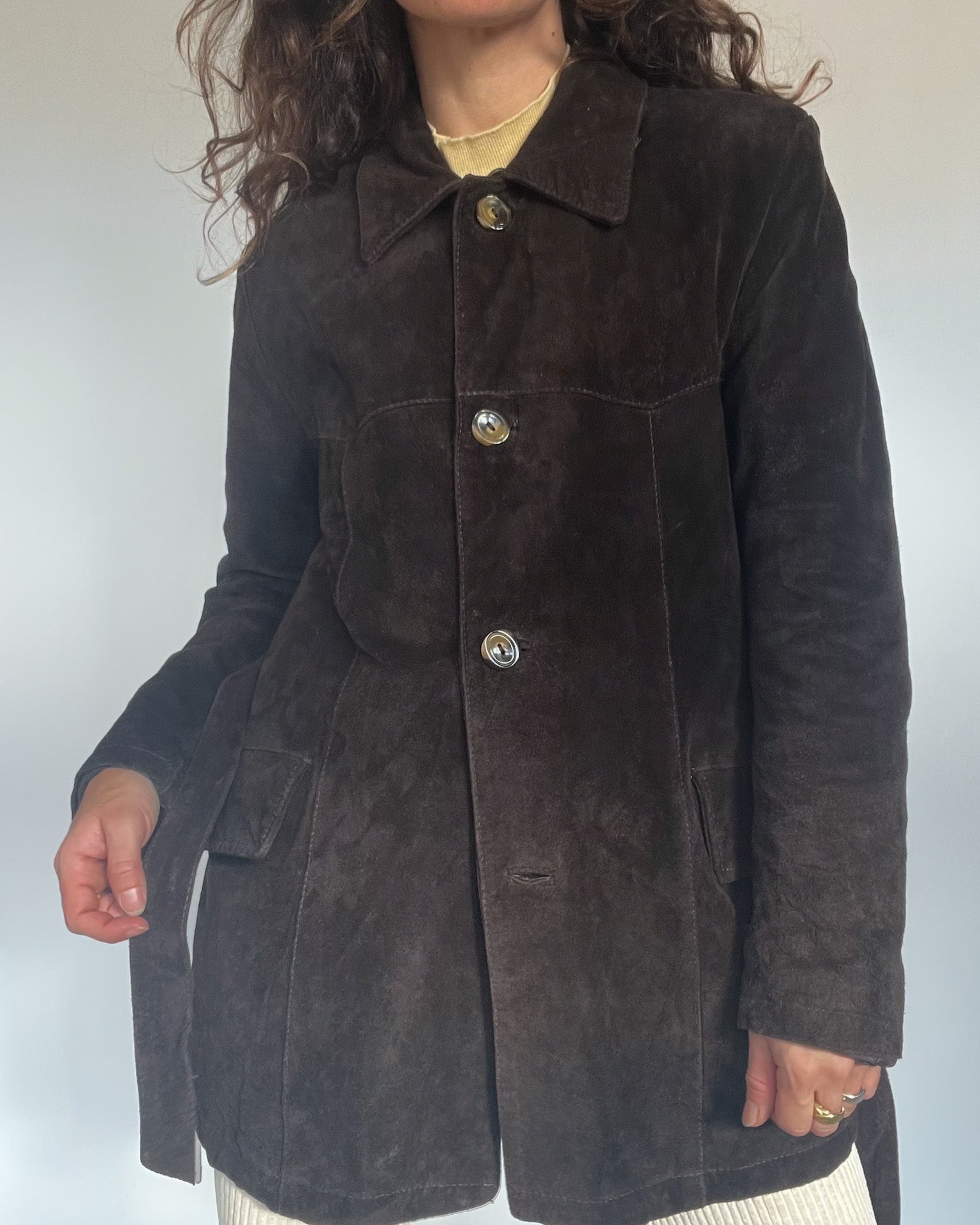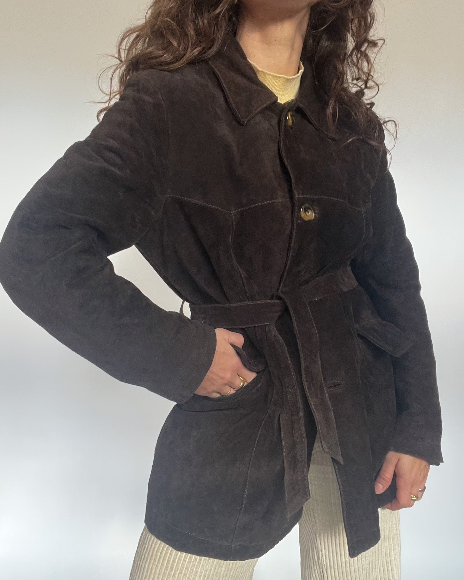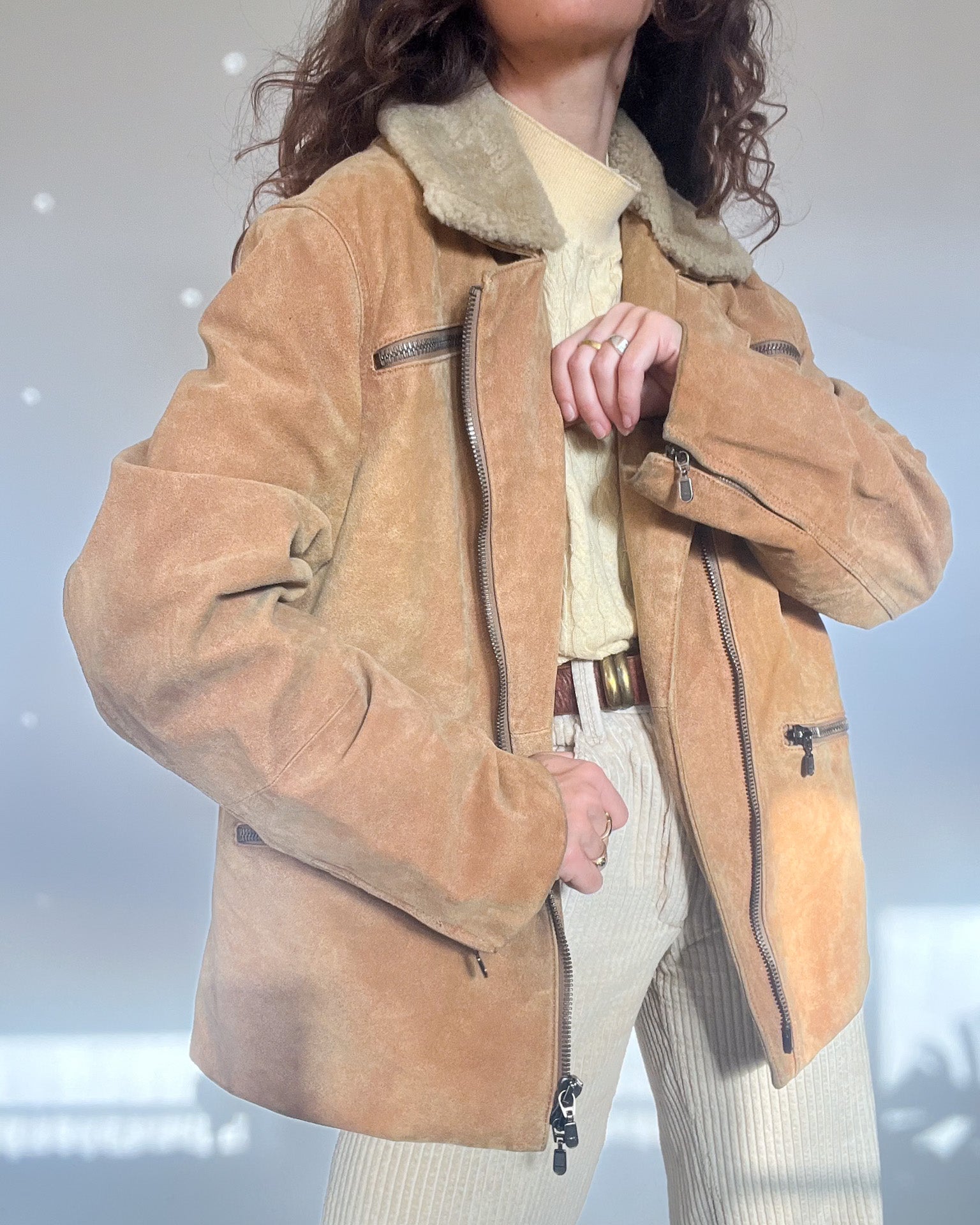This coat is an absolute favorite of mine, with its perfect fit and exceptionnel quality. The rich brown color and velvet texture add a cozy yet chic vibe, making it an ideal pièce for staying stylish and warm in the coller months. Thanks!!
