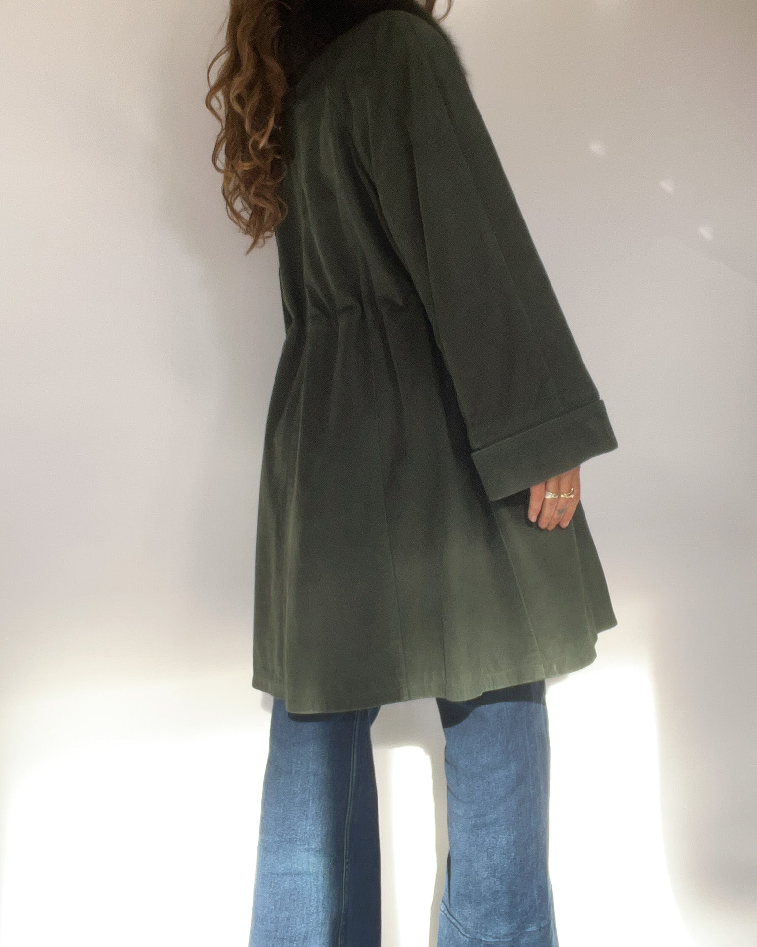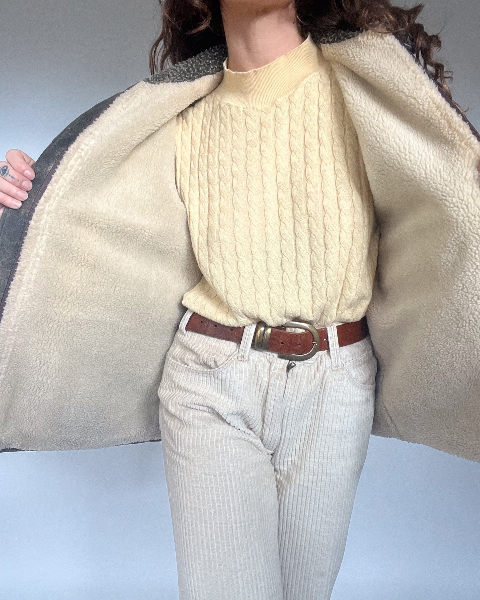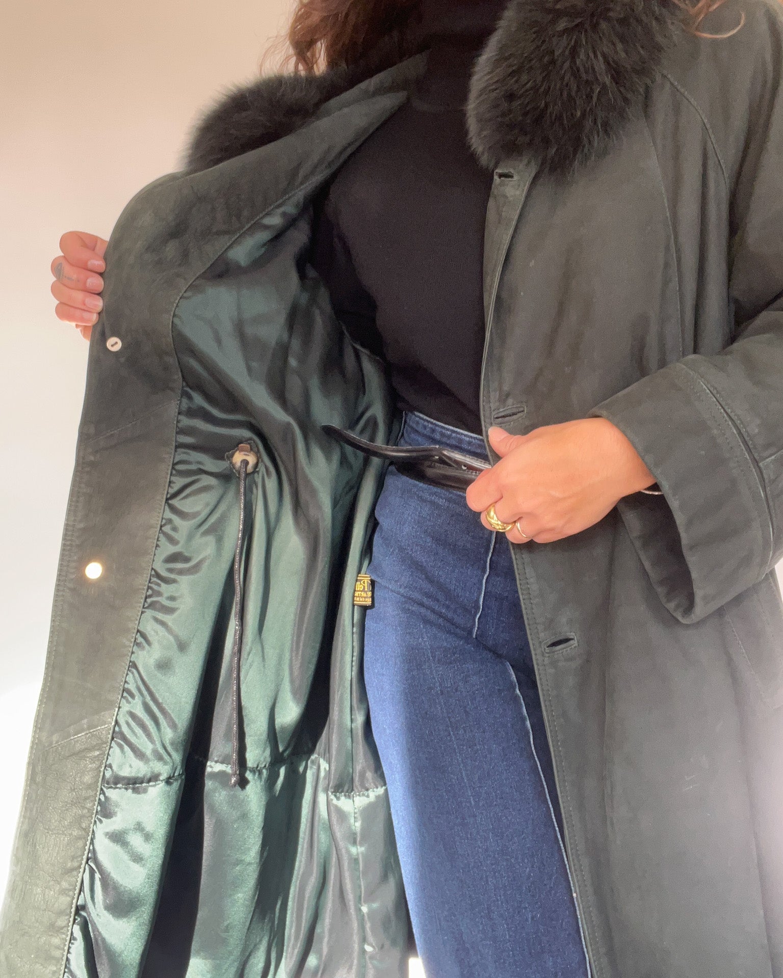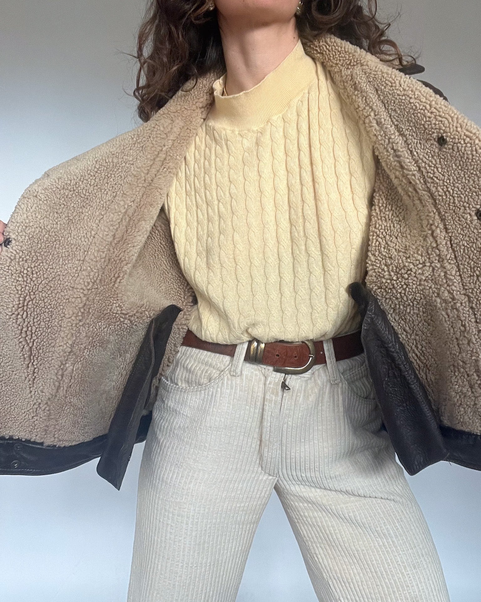 This coat is an absolute favorite of mine, with its perfect fit and exceptionnel quality. The rich brown color and velvet texture add a cozy yet chic vibe, making it an ideal pièce for staying stylish and warm in the coller months. Thanks!!
