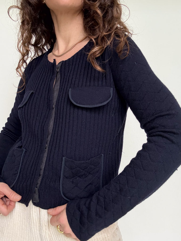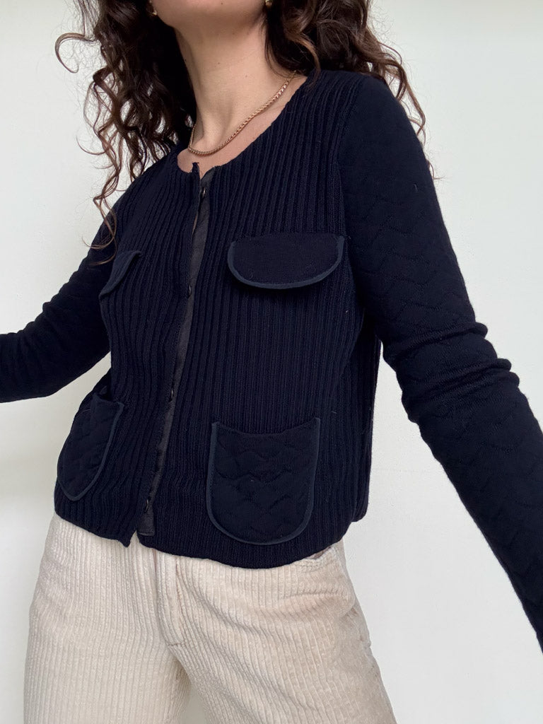 Vintage 90’s Navy Virgin Wool & Silk Cardigan