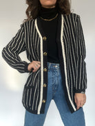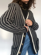 Vintage 80’s Black & Cream Striped Italian Knit Cardigan