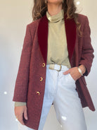 Vintage 80’s Burgundy Wool Blazer with Velvet Collar