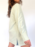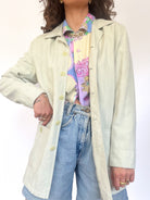 A pastel-toned gem with a timeless silhouette, this vintage 90’s longline jacket in beige is the perfect lightweight layer to elevate your spring/summer outerwear game. Its tailored shape and sleek cut offer understated elegance, while the soft-touch fabric and minimalist detailing make it easy to style from day to night. With its utilitarian front pockets and tonal buttons, this piece embodies the clean sophistication Skorpiones Vintage is known for — where every piece holds the strength of simplicity and the power of uniqueness.