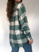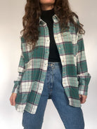 A soft, easygoing flannel with the perfect 90’s oversized vibe — the kind of piece you throw on for effortless comfort while still keeping that confident, Skorpiones Vintage attitude.This shirt features a beautiful mix of emerald green, cream, and subtle red lines, giving it that classic yet elevated plaid pattern. The XL cut offers a relaxed silhouette that works perfectly layered over a turtleneck, a tee, or even styled as a light jacket.A timeless essential chosen for its authenticity, comfort, and the quiet strength of its design — a true everyday icon.