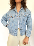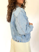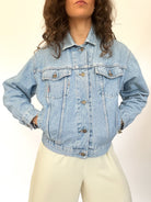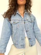 A timeless staple from the 90s, this denim jacket captures everything we love about effortless cool. With its structured shoulders and signature chest pockets, it nods to classic Americana while staying incredibly versatile. The light wash and subtle faded patina evoke years of stories woven into the fabric—perfect for layering, styling, and giving your everyday look that vintage edge Skorpiones Vintage is known for.