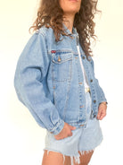 A forever classic. This light-wash denim jacket has that lived-in, slightly oversized feel that makes vintage denim so special. Designed with contrast stitching, chest pockets and branded hardware, it’s the layer you’ll reach for again and again. Part of the Skorpiones signature: strong basics with a twist.