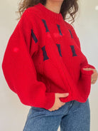 Infused with graphic energy, this knit combines textured red wool with navy geometric intarsia and a bold cable detail. More than just warmth, it’s a statement of strength and individuality, built to last through changing trends.