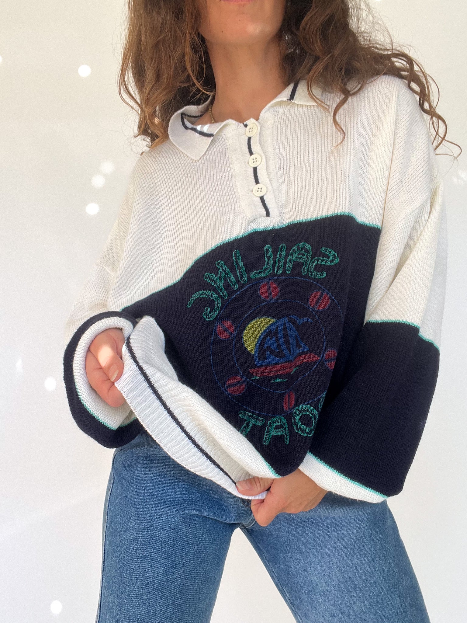 Vintage 90’s Sailing Boat Embroidered Knit Polo