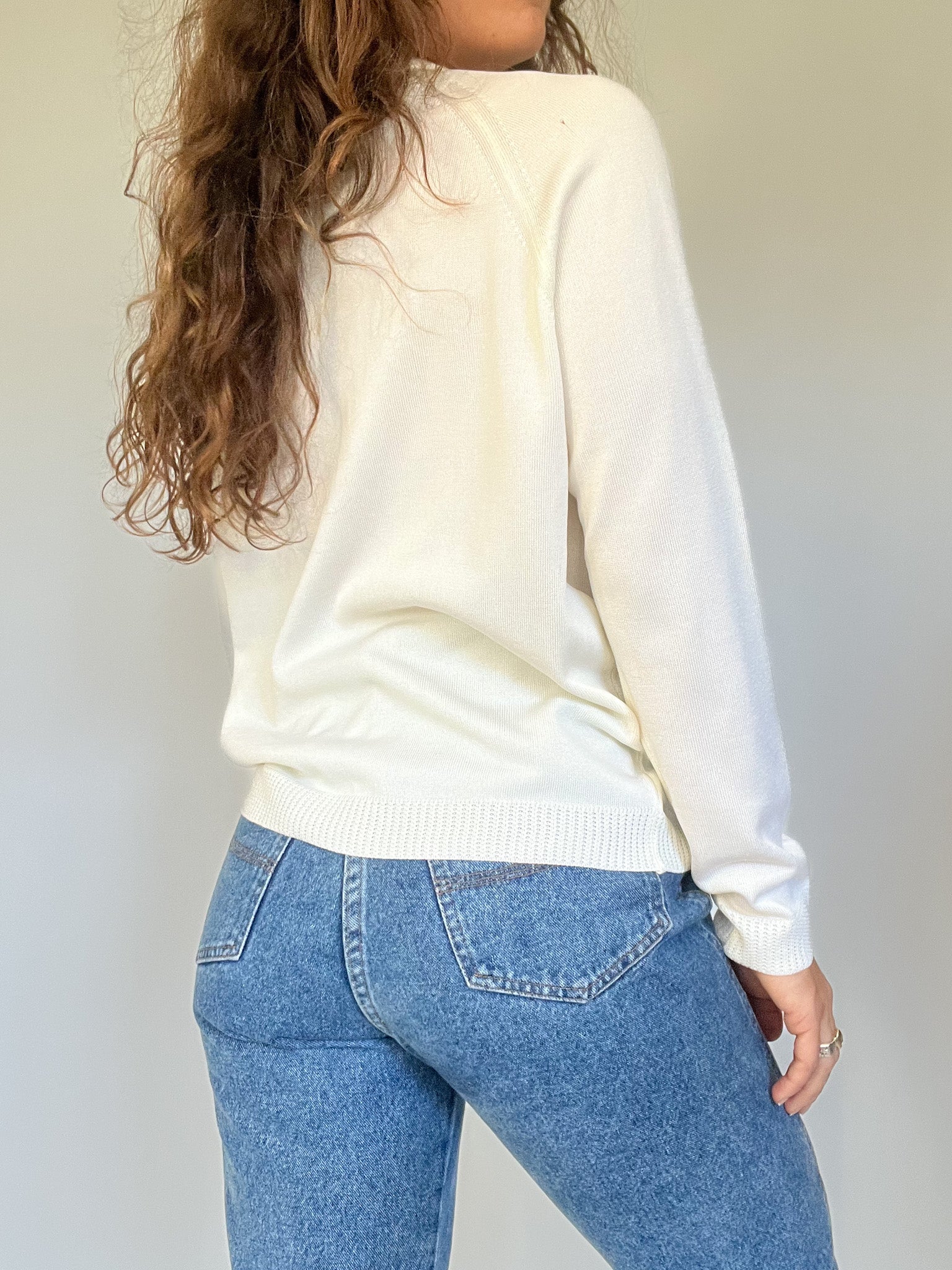 Vintage 90’s White Knit Cardigan with Subtle Pattern