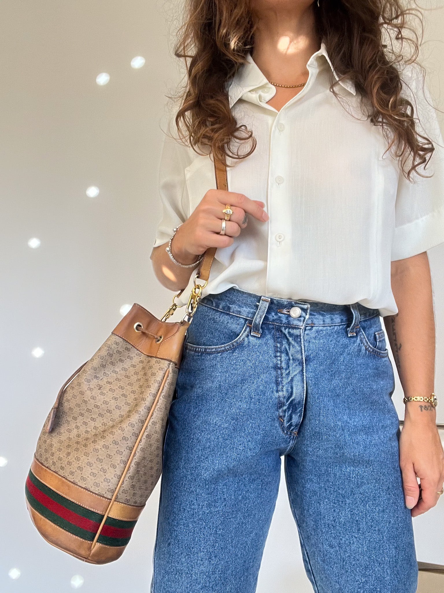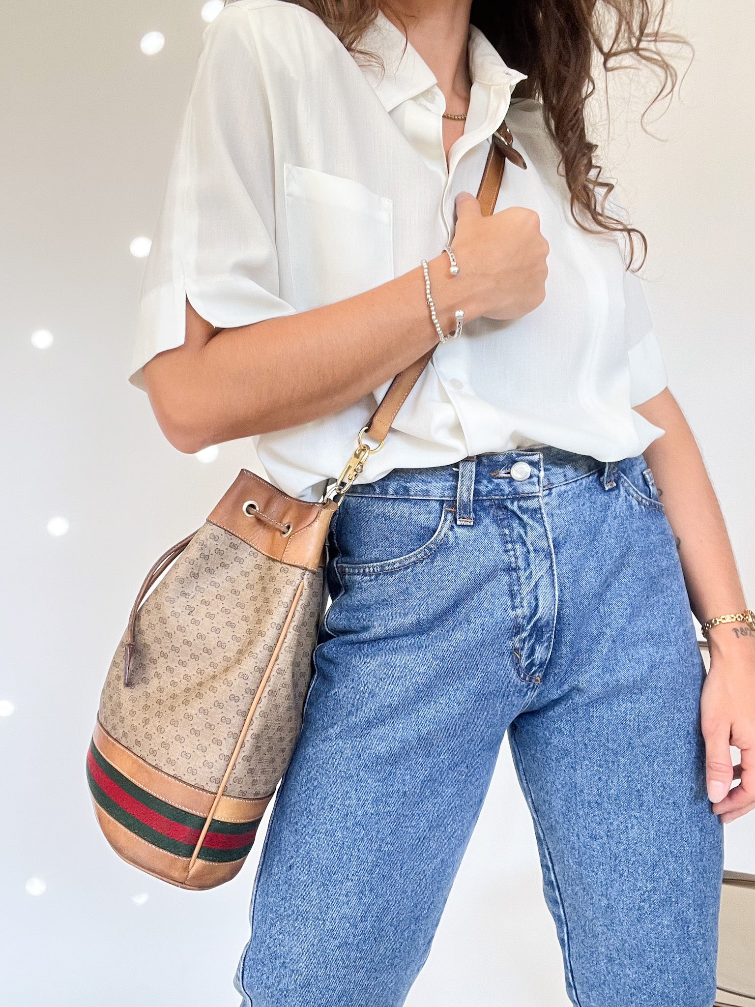 Vintage 80’s Gucci GG Supreme Bucket Bag – Web Stripe