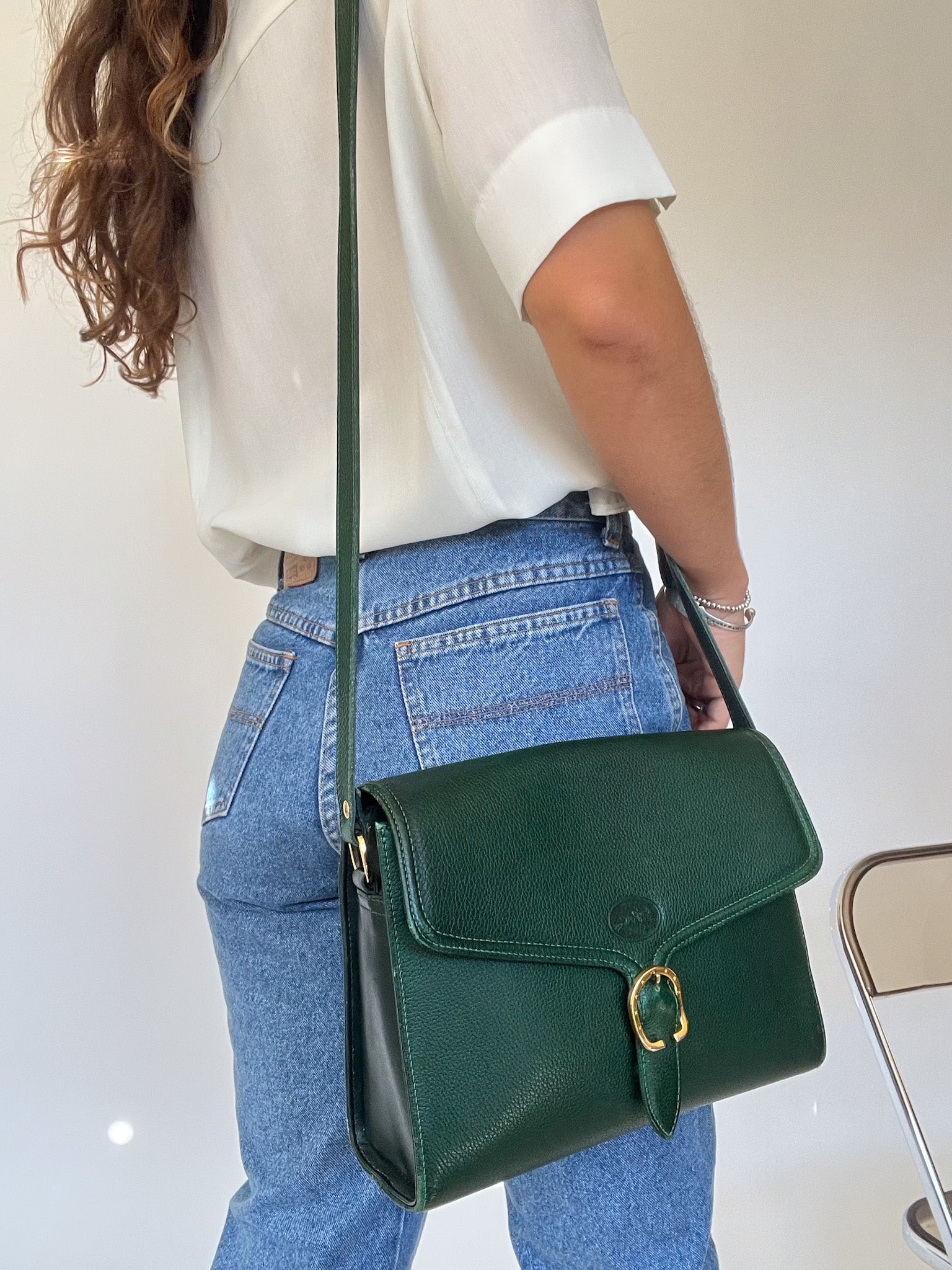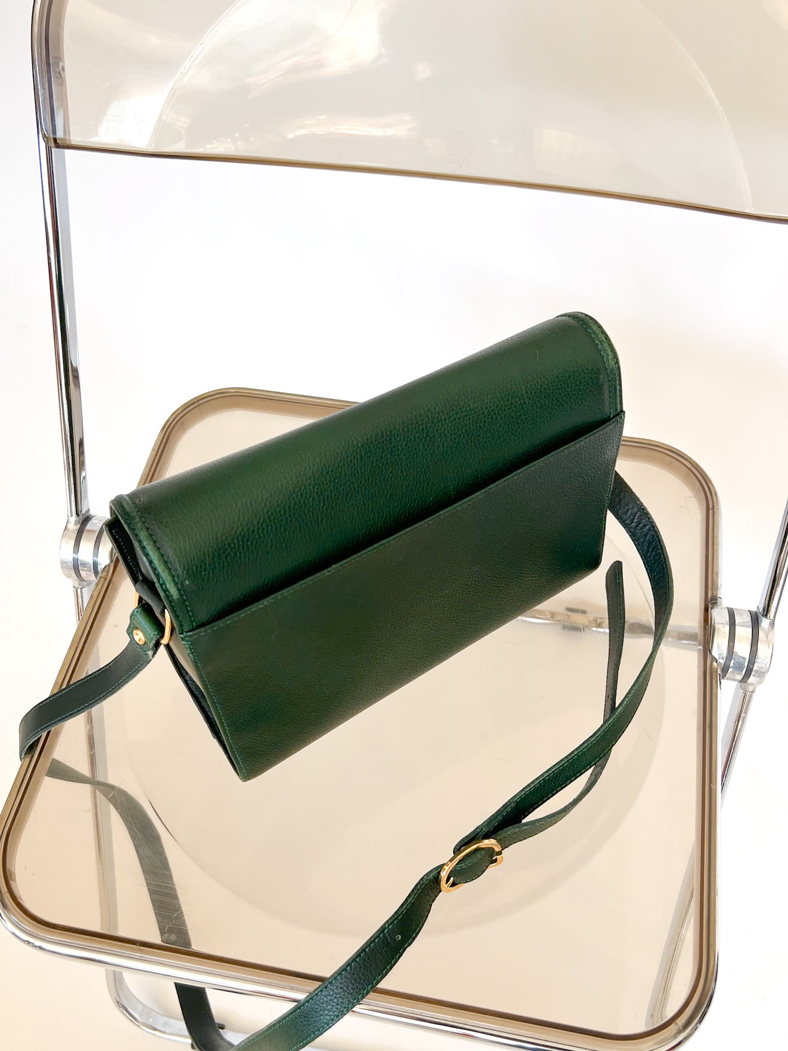 This rare emerald green Longchamp shoulder bag is a timeless piece of understated luxury. Crafted in France from grained leather with a structured silhouette, it features a classic saddle flap design, a signature gold-tone buckle clasp, and a clean-lined shape that embodies the refined elegance of the late 80s. It’s the kind of piece that elevates any outfit, from denim to tailoring, while whispering its story rather than shouting it. At Skorpiones, we cherish those pieces that balance timeless design and character and this one does exactly that.