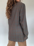 An iconic 80’s blazer that perfectly captures the power and elegance of vintage tailoring. Crafted in pure virgin wool with a refined grey check pattern and warm rust undertones, it offers structure and effortless sophistication. Its slightly oversized silhouette allows versatile styling — from sharp to relaxed. A timeless statement piece that embodies the confidence and authenticity central to the Skorpiones Vintage aesthetic.