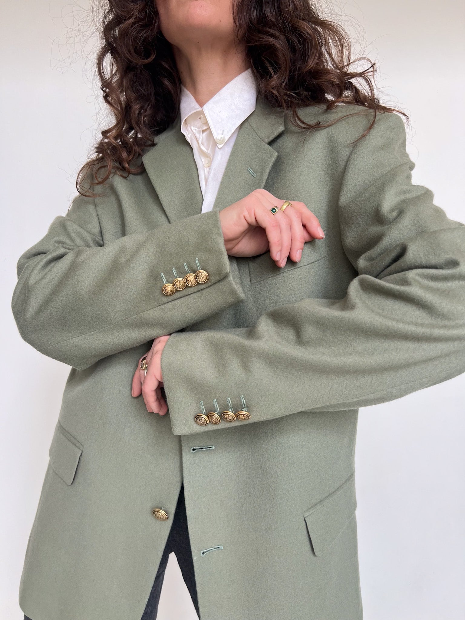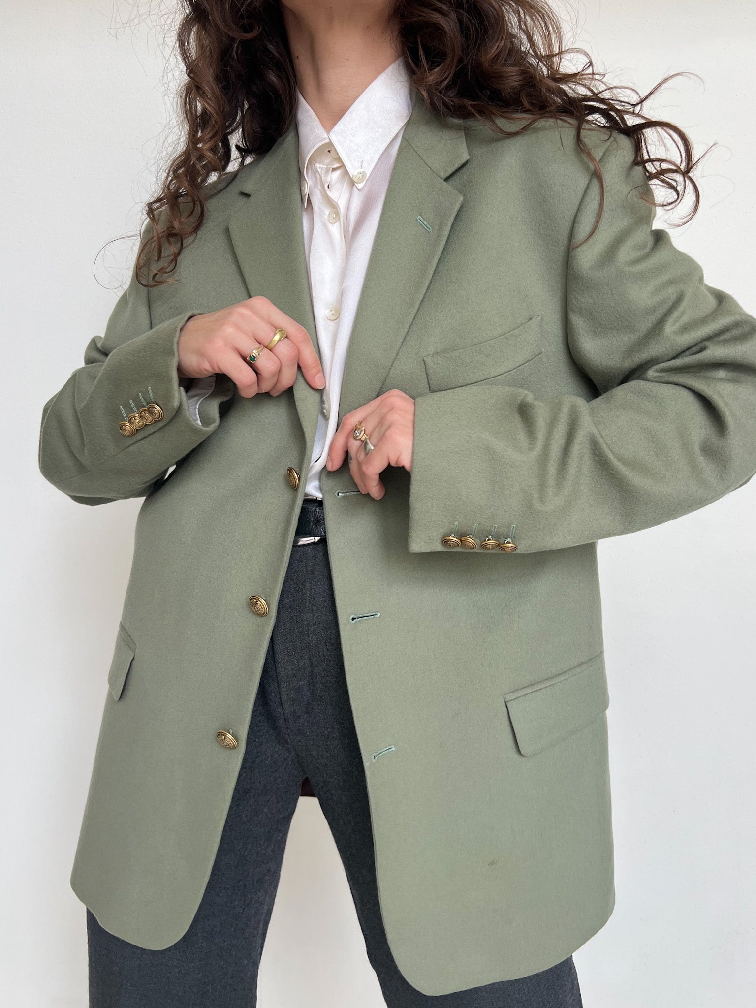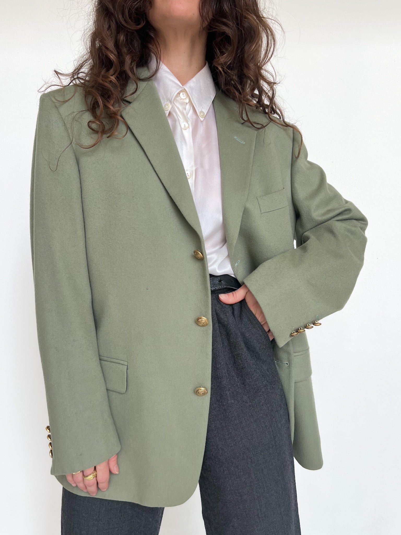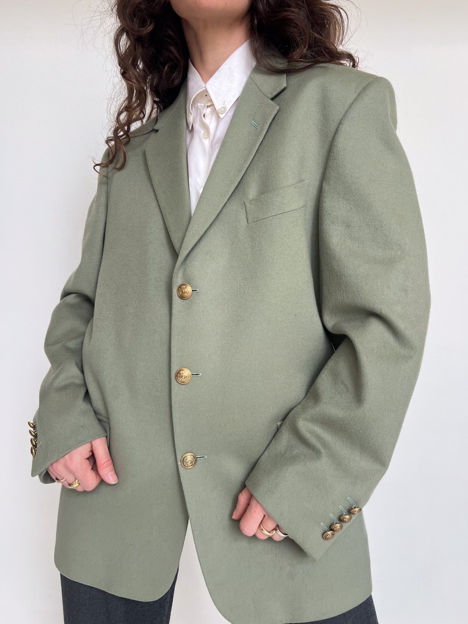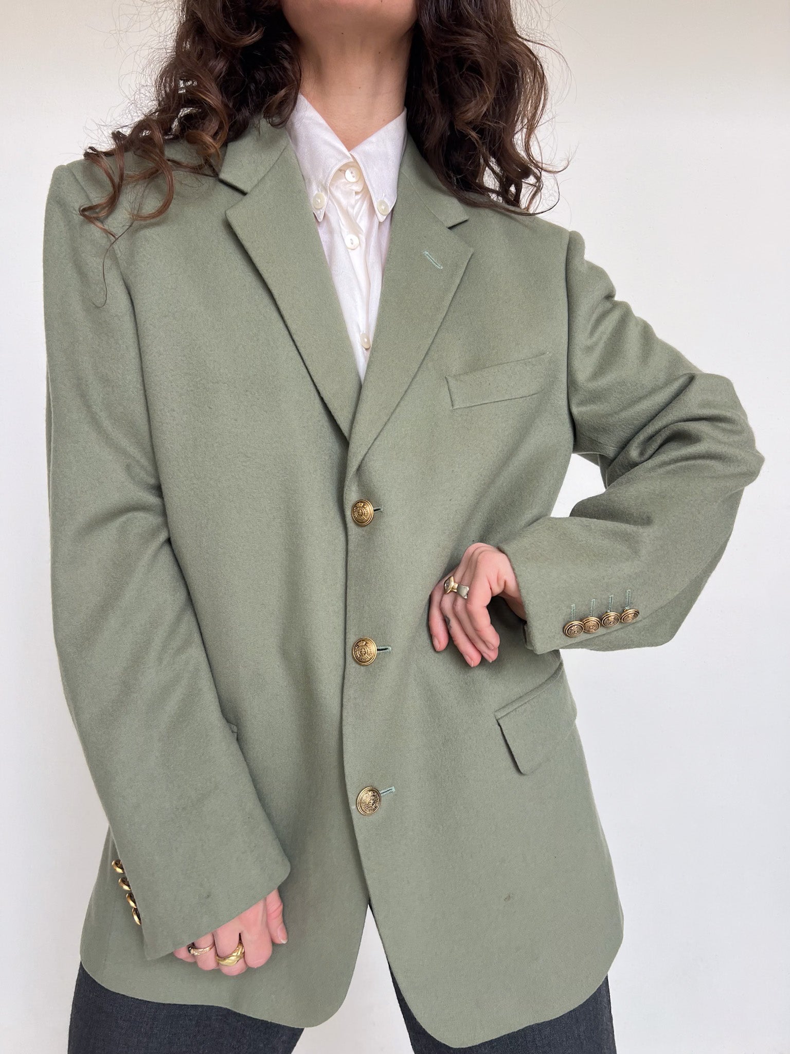 - Special features: Structured vintage cut, gold-tone buttons, elegant tailoring, high-end cashmere fabric