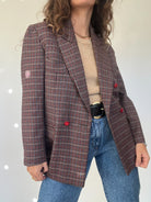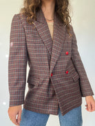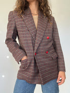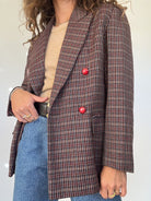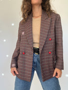 Vintage 90’s Checked Wool Blazer with Red Buttons