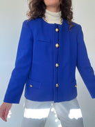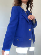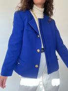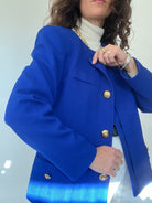 Crafted from pure wool, it offers structure while keeping a refined drape. The gold sculpted buttons elevate the piece even further, adding that luxurious vintage touch that catches the eye without ever feeling too much. This is the kind of blazer you style when you want to stand out effortlessly — powerful, elegant, and unforgettable.