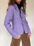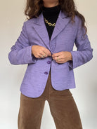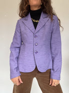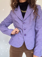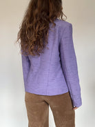 Refined and full of character, this lilac blazer captures the spirit of 90’s elegance with a playful twist. Its structured cut enhances the silhouette while the subtle textured fabric and tonal buttons bring a unique depth to the look. A statement of quiet strength — sophisticated, feminine, and daringly original, true to the Skorpiones Vintage ethos.