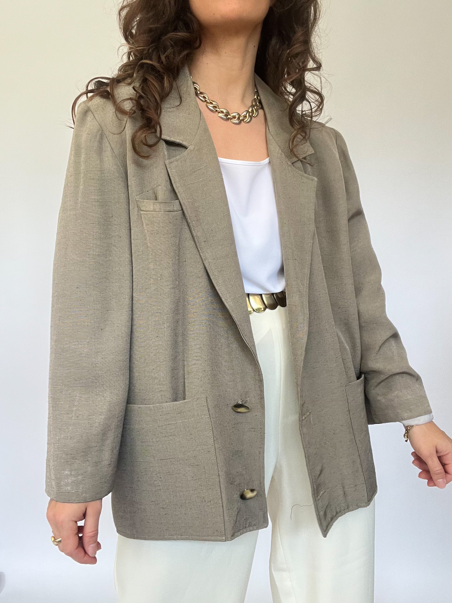 A warm-toned showstopper with that Italian nonchalance. This vintage rust blazer balances sharp tailoring with a fluid silhouette, giving it that understated elegance we chase at Skorpiones Vintage. The linen blend brings structure without stiffness, while the golden buttons add a soft contrast that feels sun-kissed. Ideal to throw on over crisp whites or flowy summer pieces, it’s the kind of blazer that lets you express boldness, without shouting. A celebration of texture, ease, and timeless style — straight from the 90’s and ready for today.