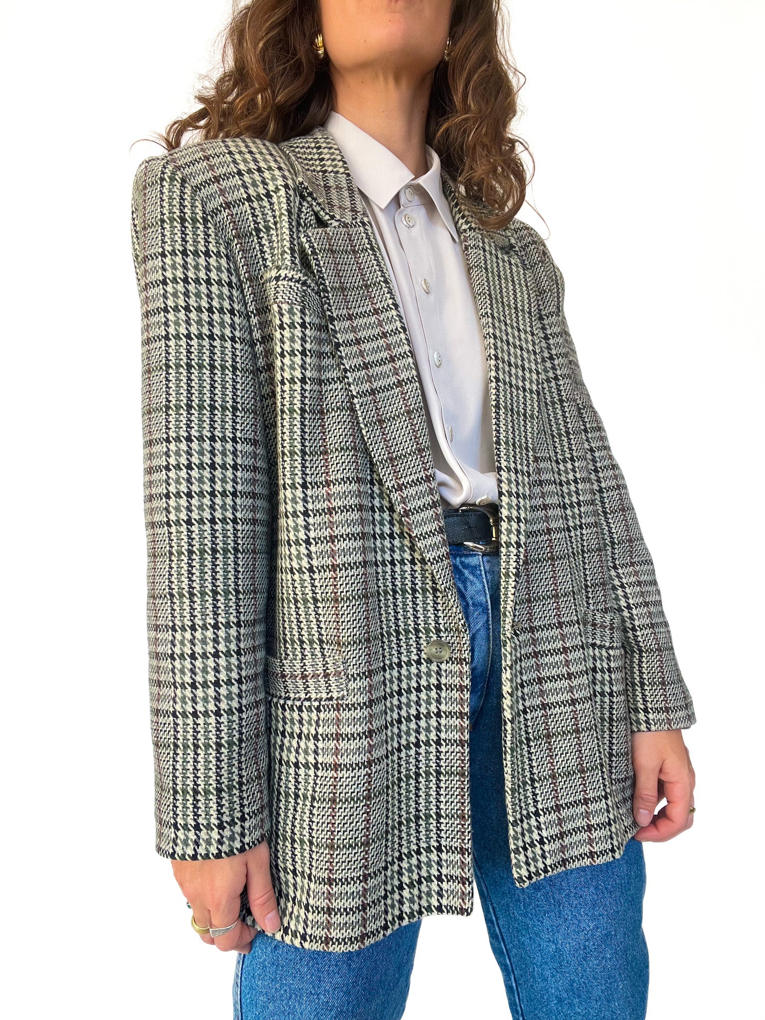 • Special Features: Classic houndstooth pattern, structured shoulders