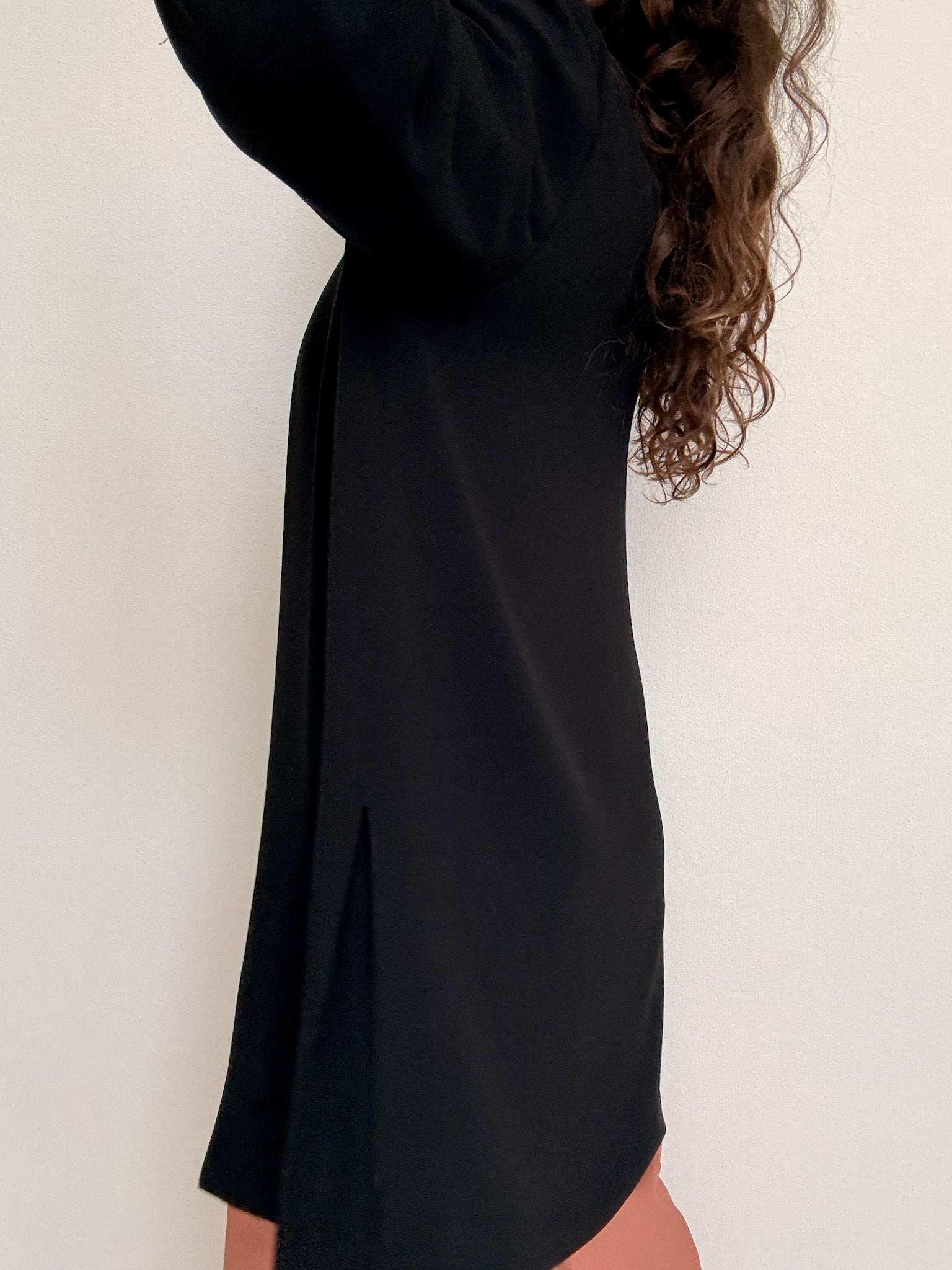 - Special features Long open cut, side slits, minimalist design, Ozoni Genève label