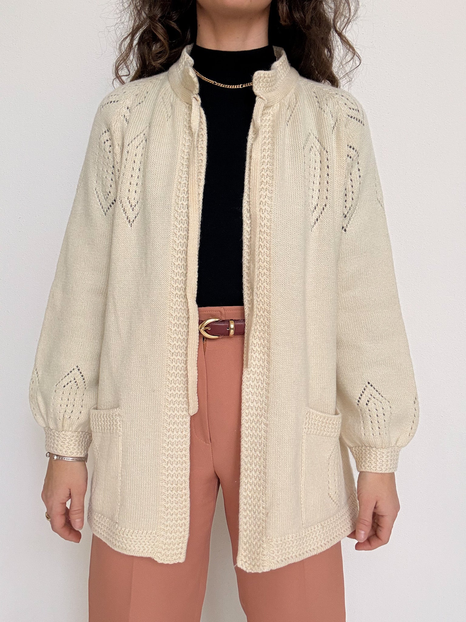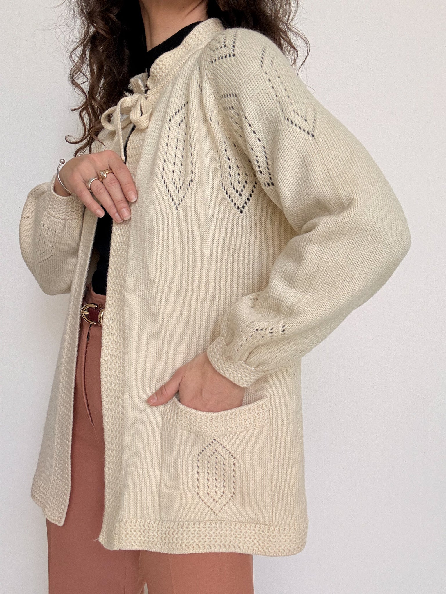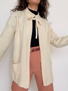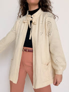 Vintage 80’s Cream Knit Cardigan with Tie Detail