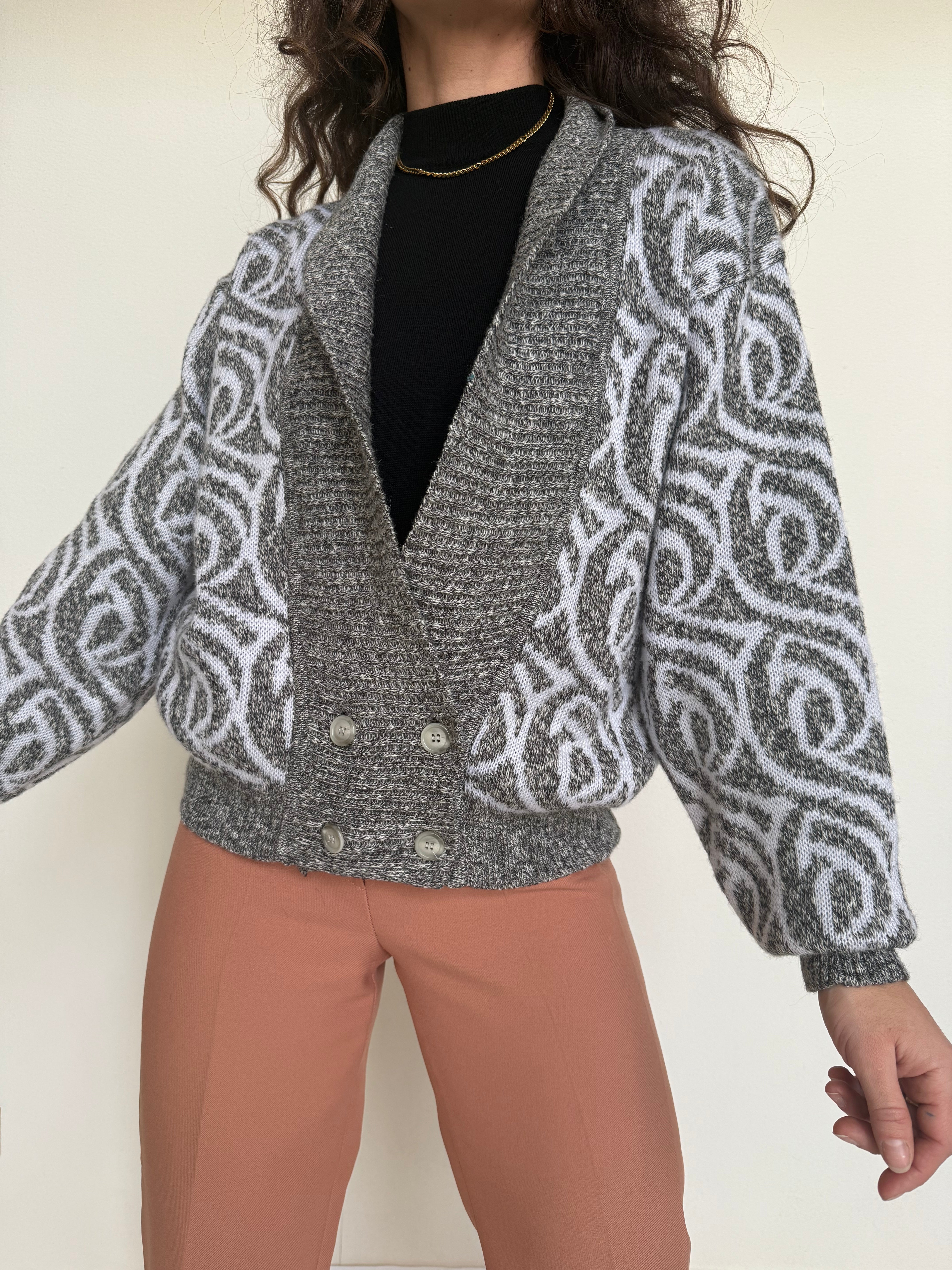 Vintage 80’s Grey Patterned Wool Knit Cardigan