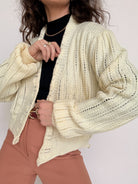 Vintage 80’s Hand Knit Wrap Cardigan in Cream