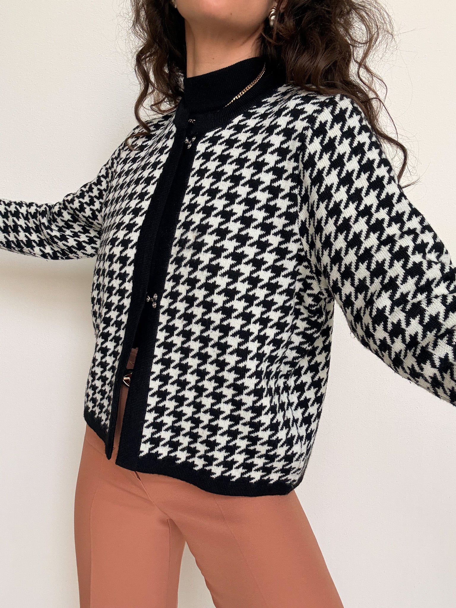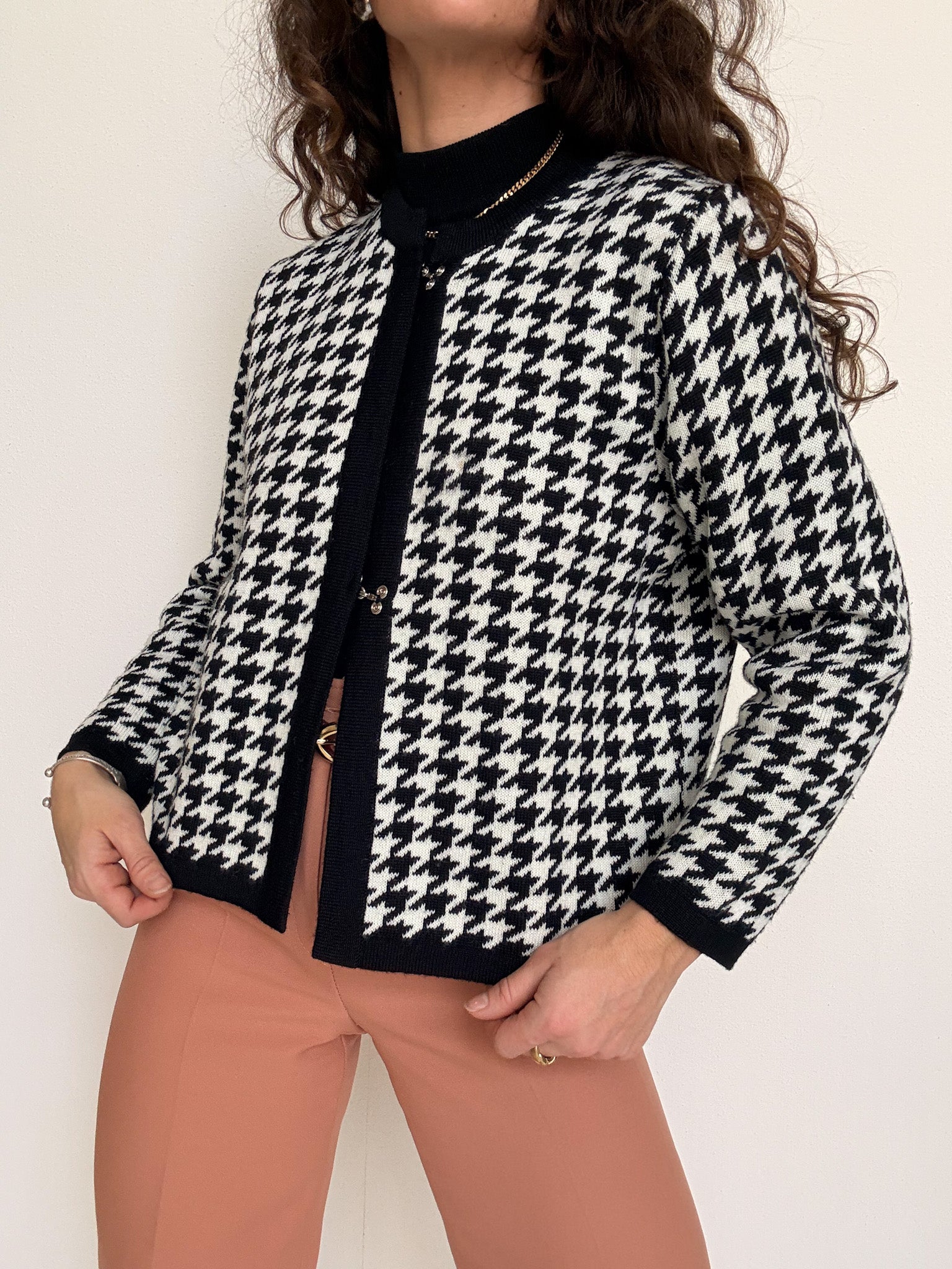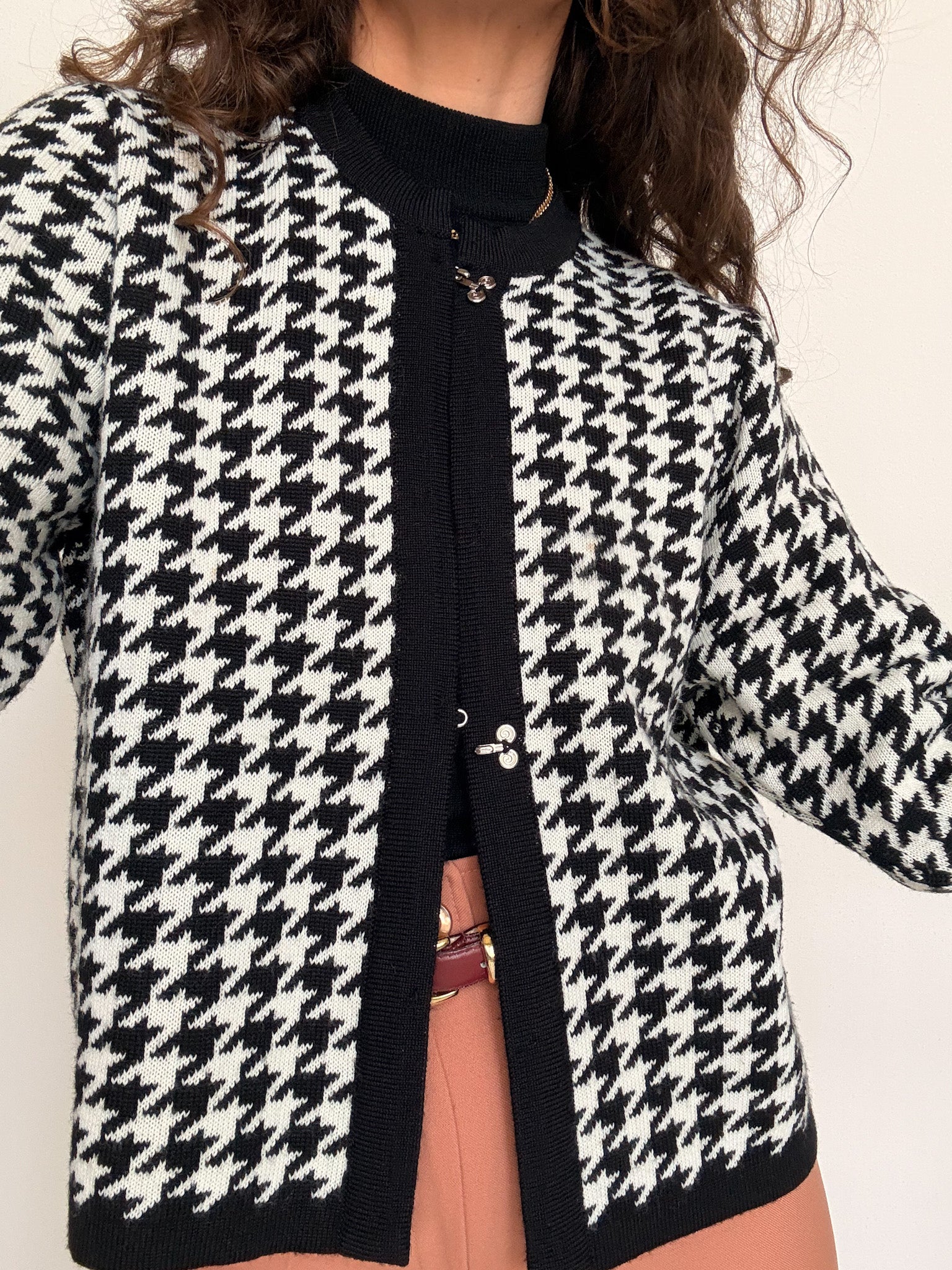 Vintage 80’s Houndstooth Knit Cardigan with Metal Closures