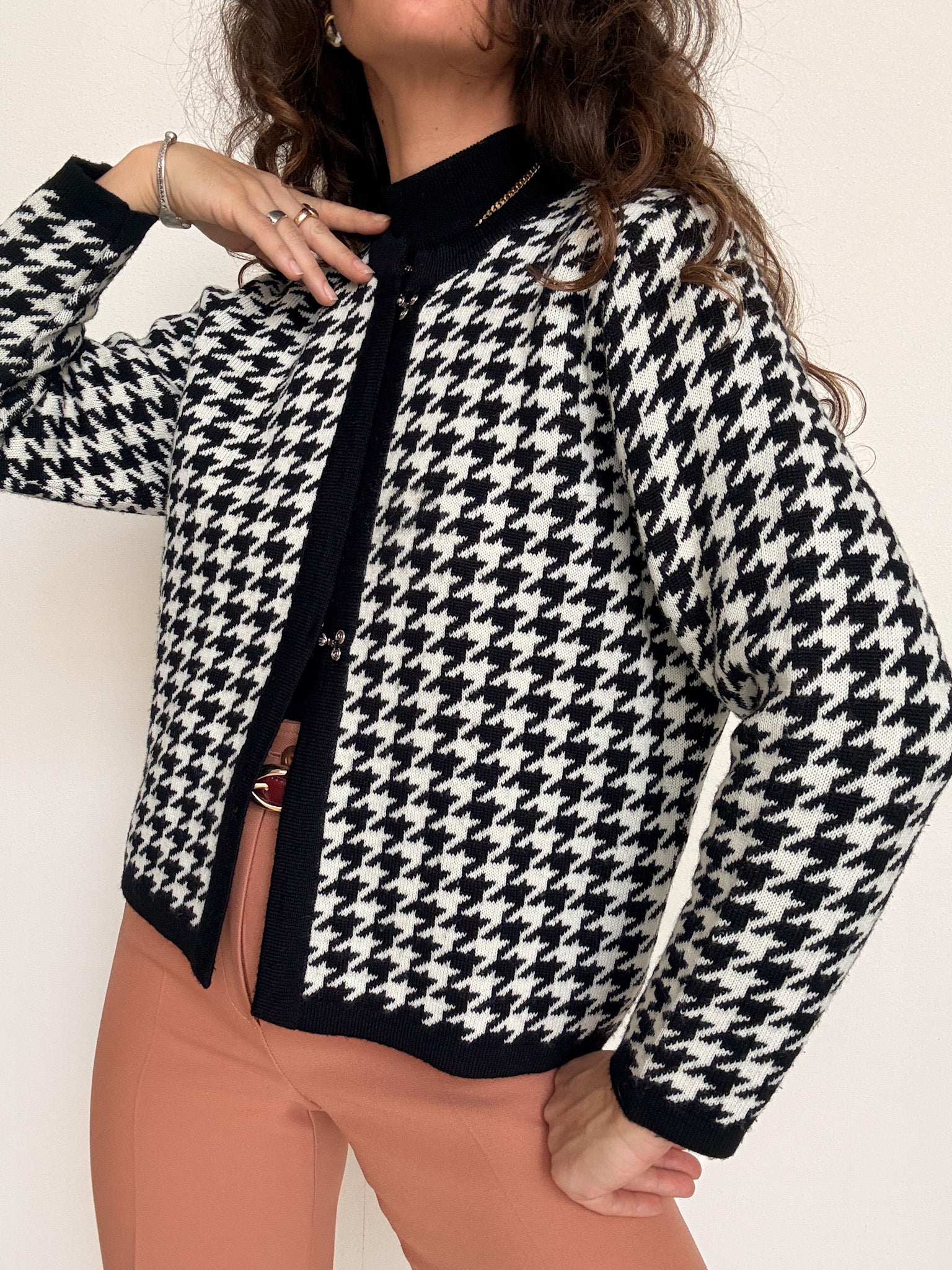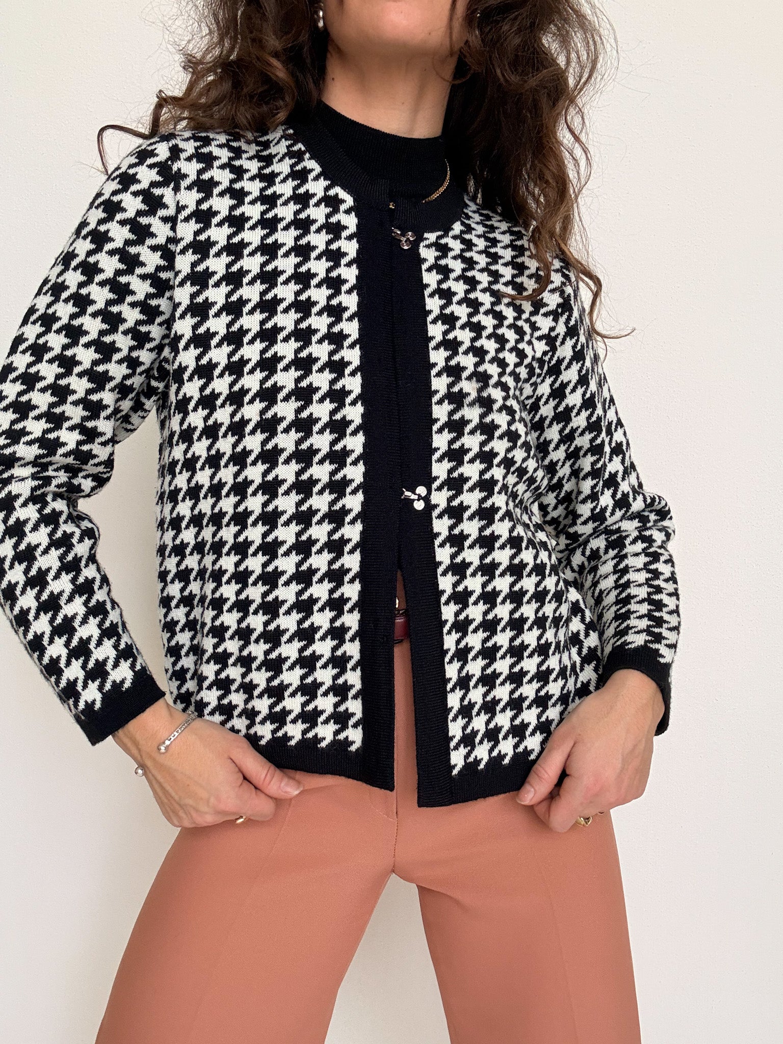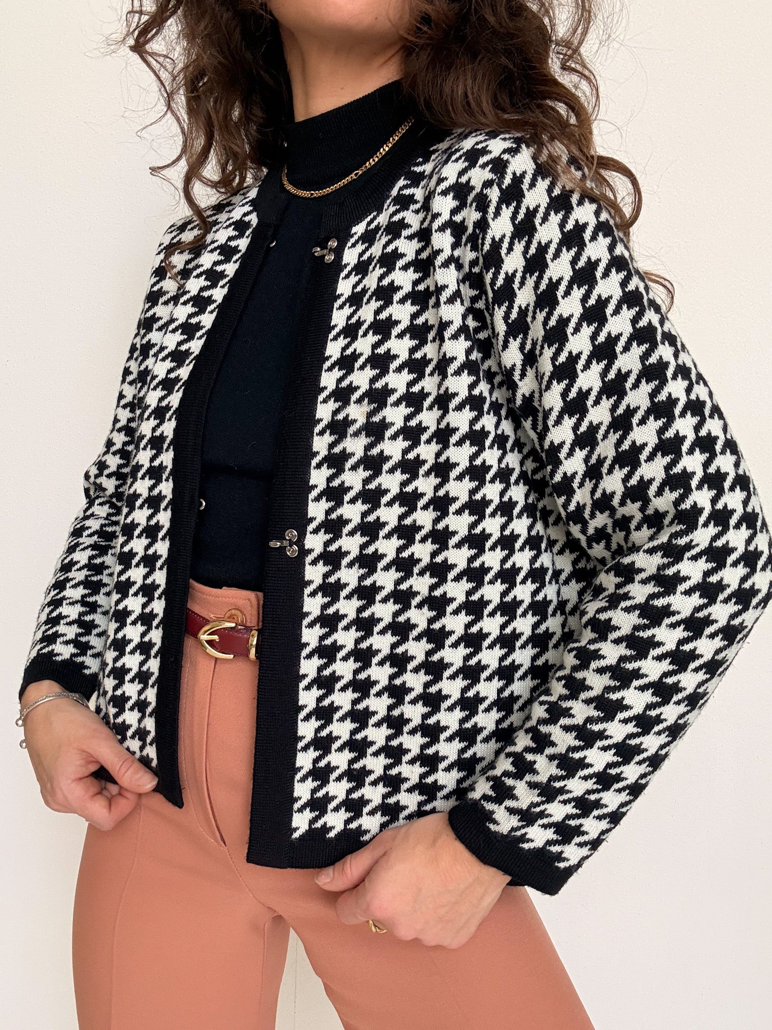 Vintage 80’s Houndstooth Knit Cardigan with Metal Closures