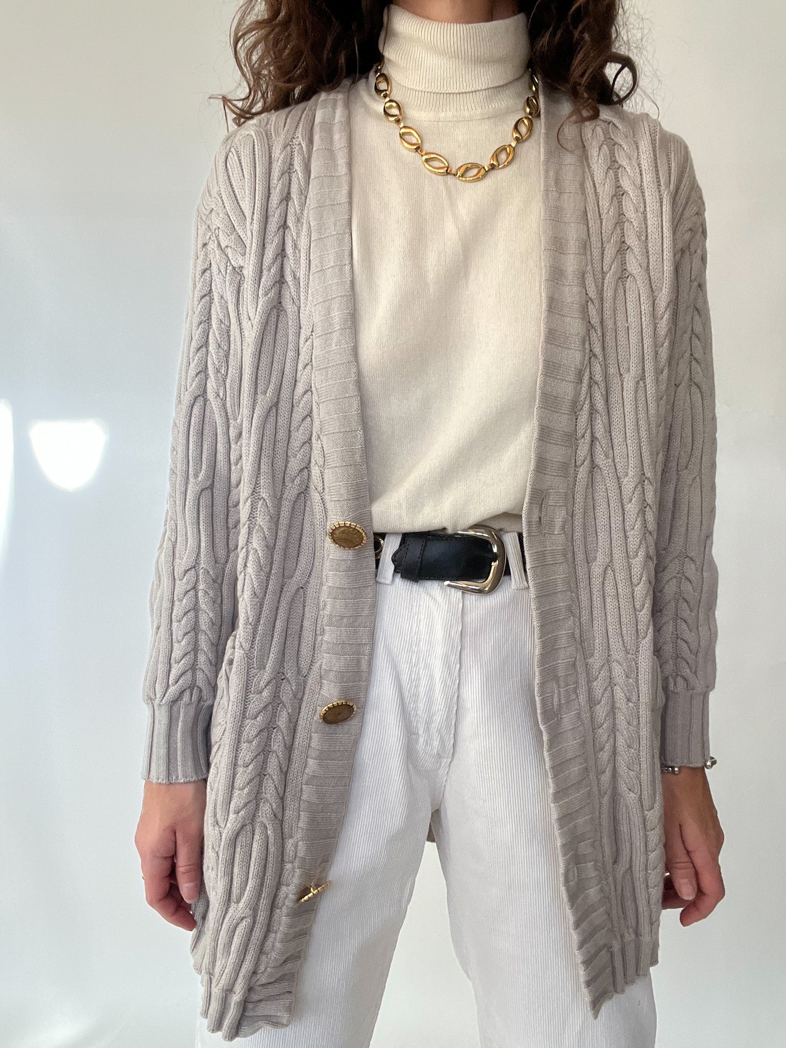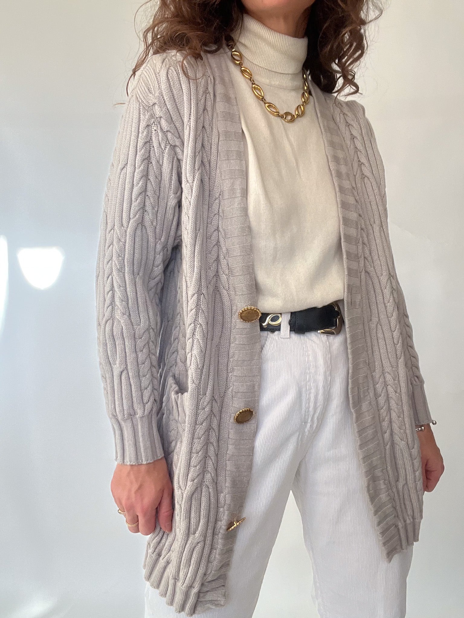 Vintage 80’s Soft Grey Cable Knit Cardigan
