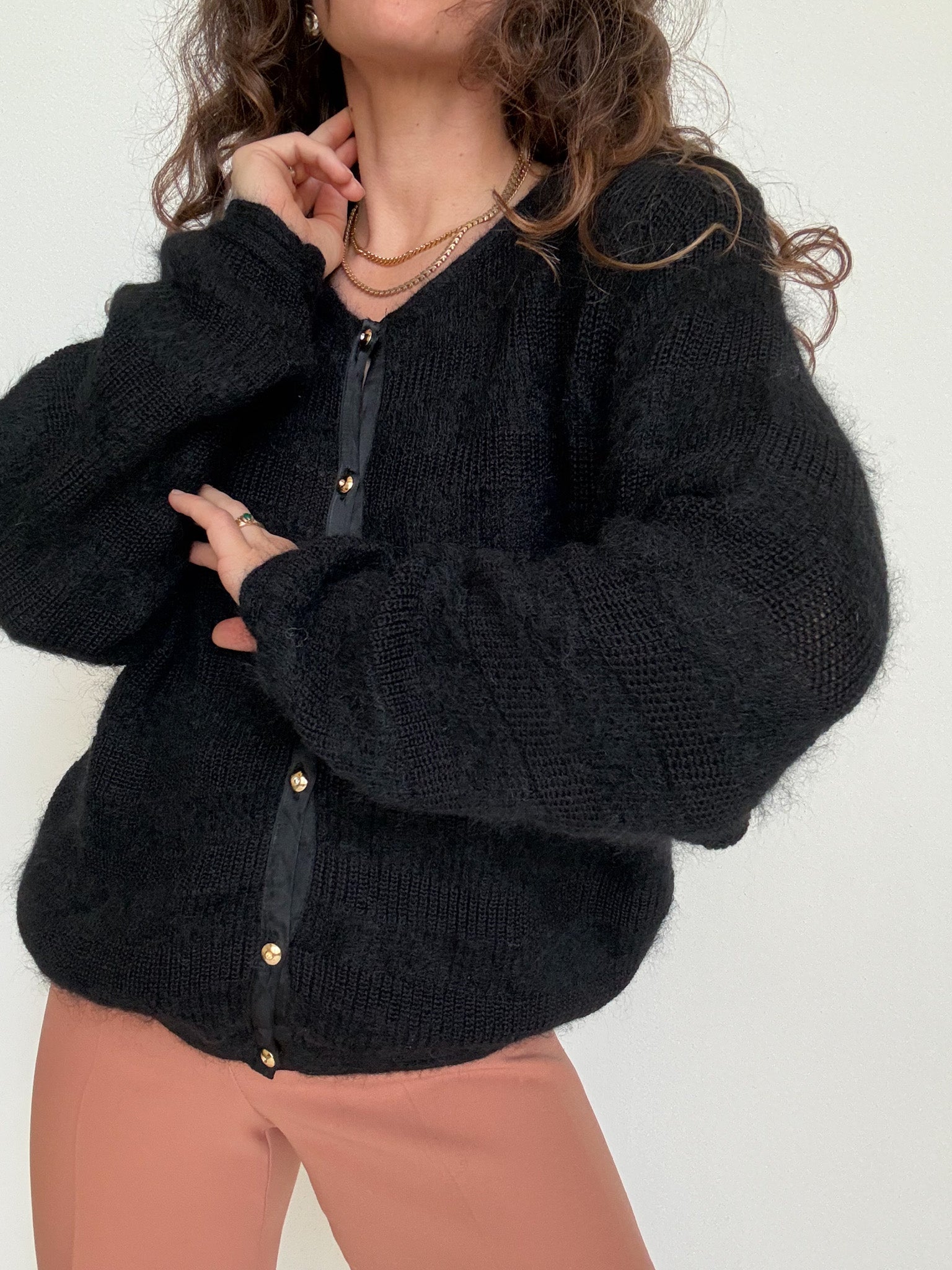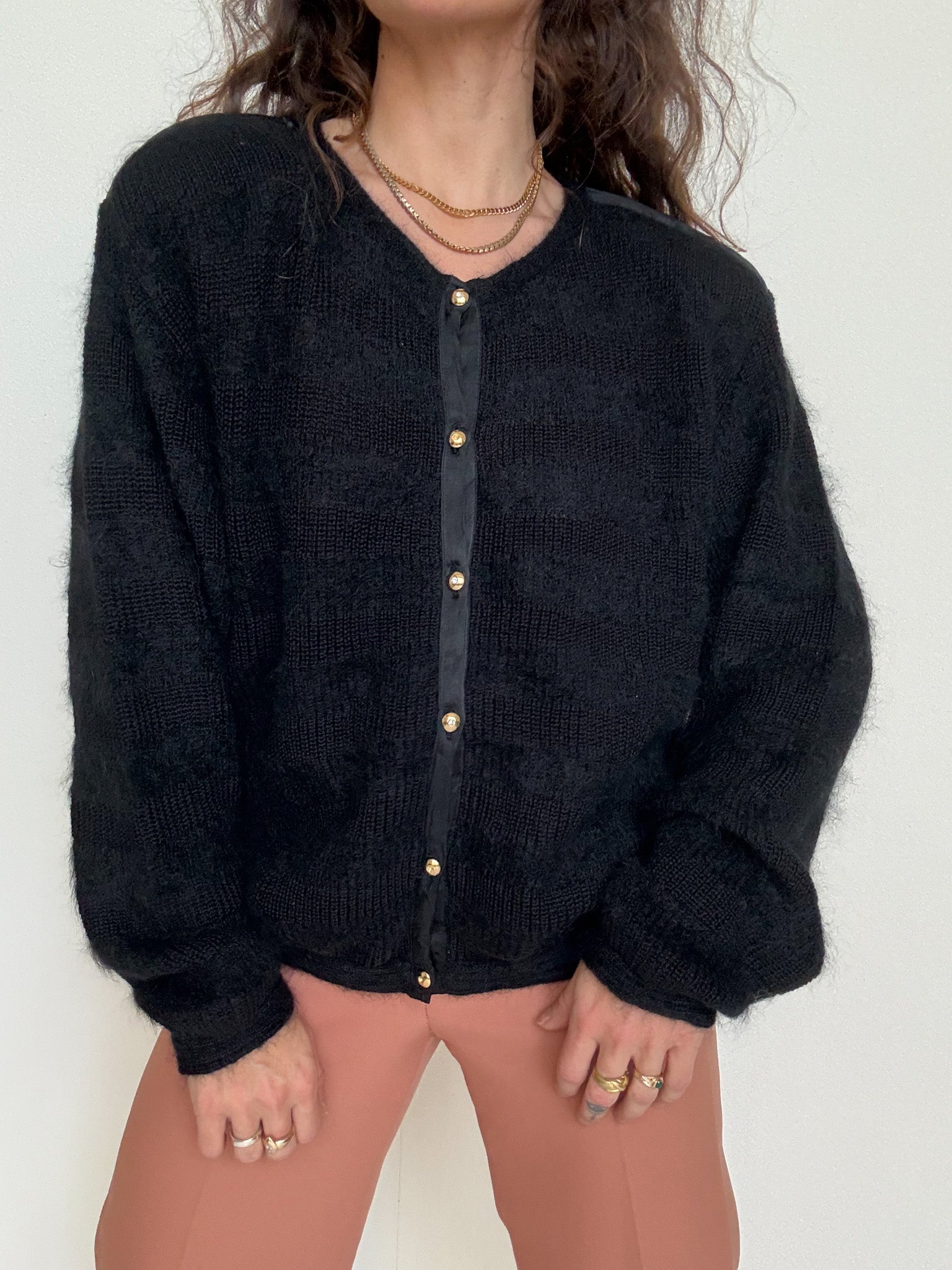 Vintage 90’s Black Mohair Buttoned Cardigan