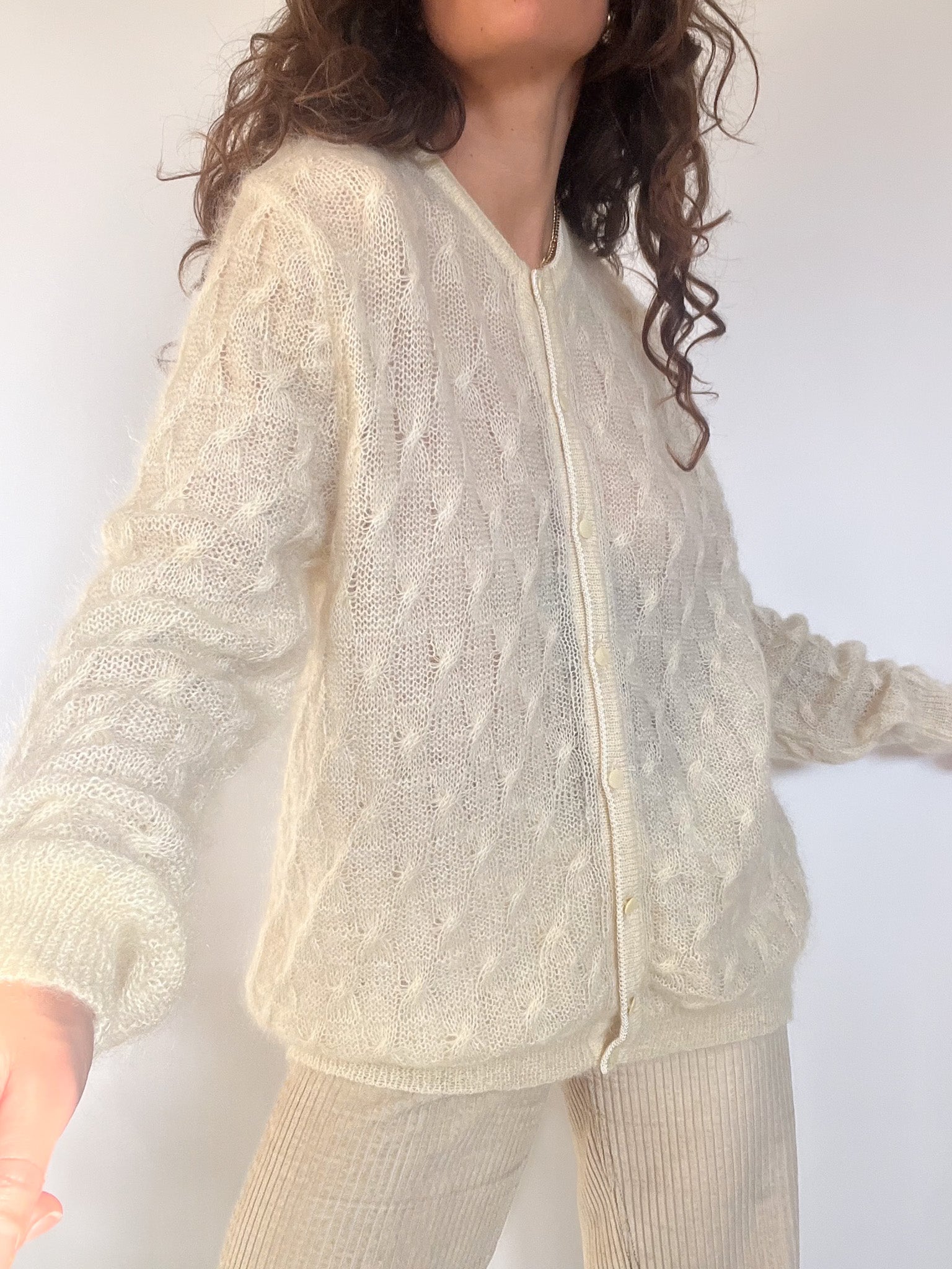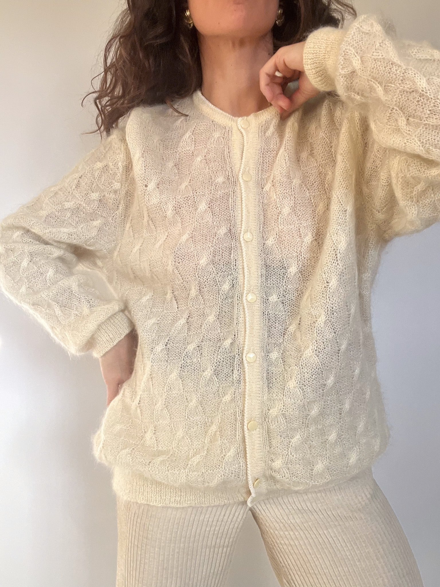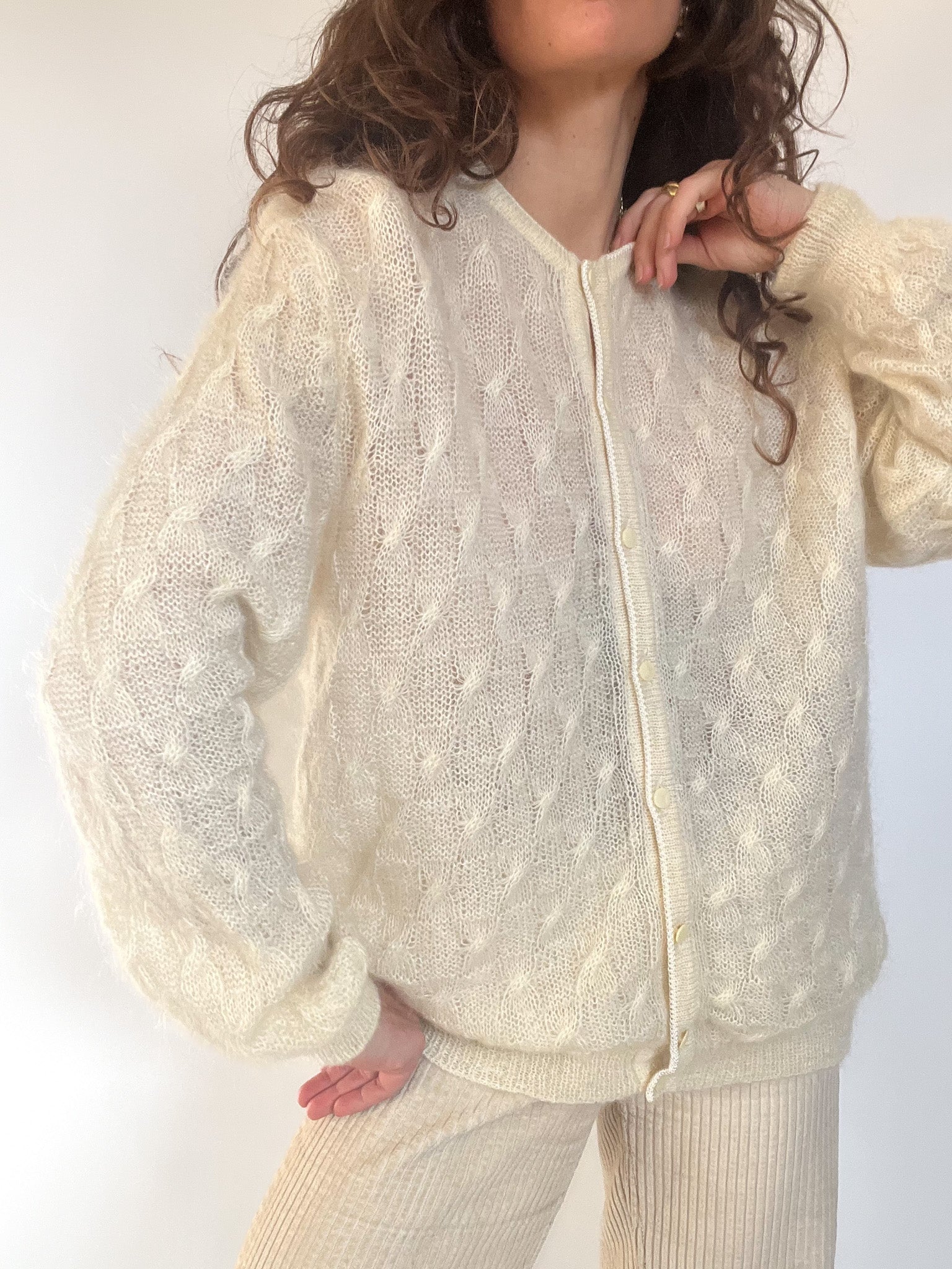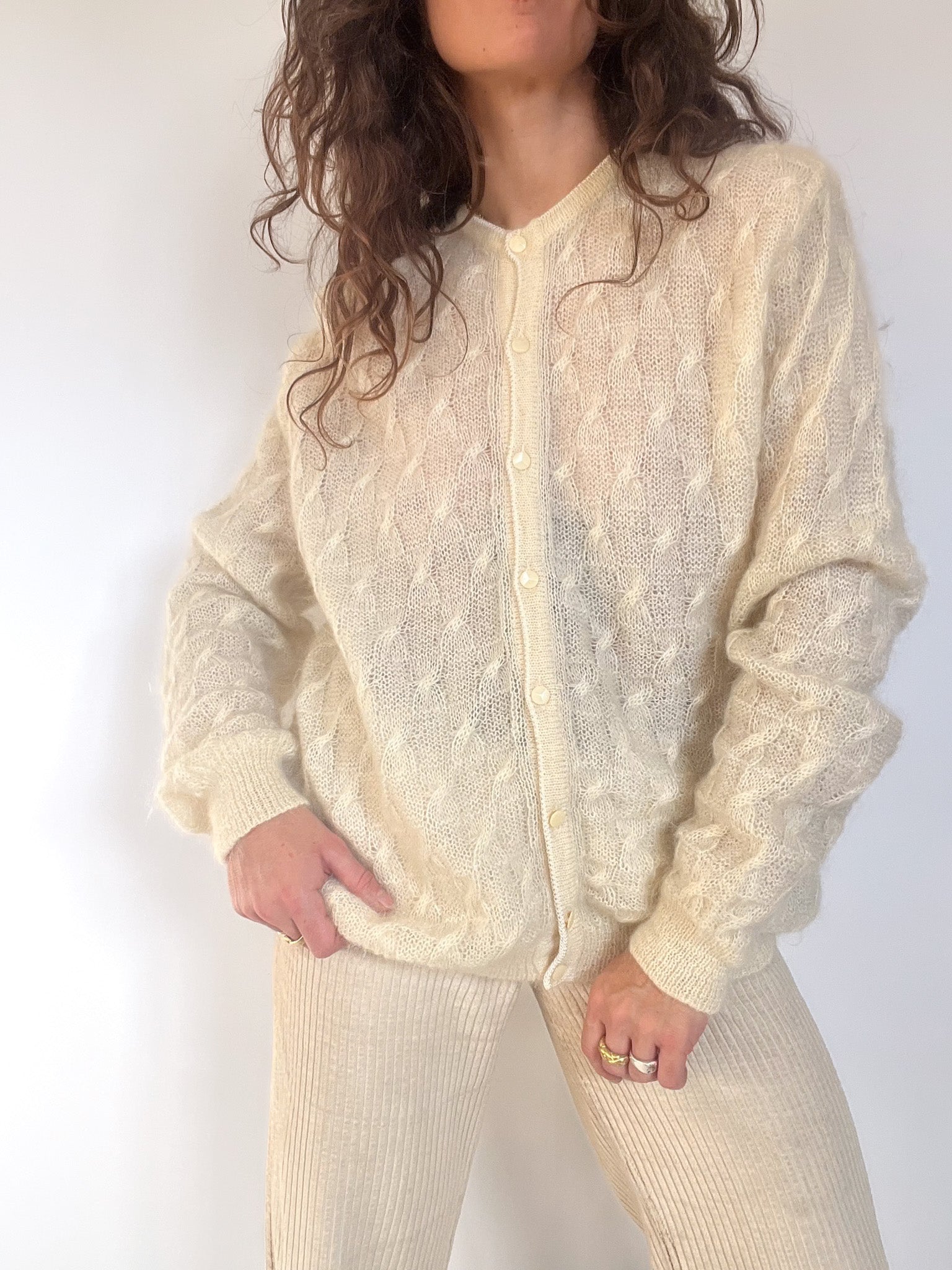 Vintage 90’s Cream Mohair Loose Knit Cardigan