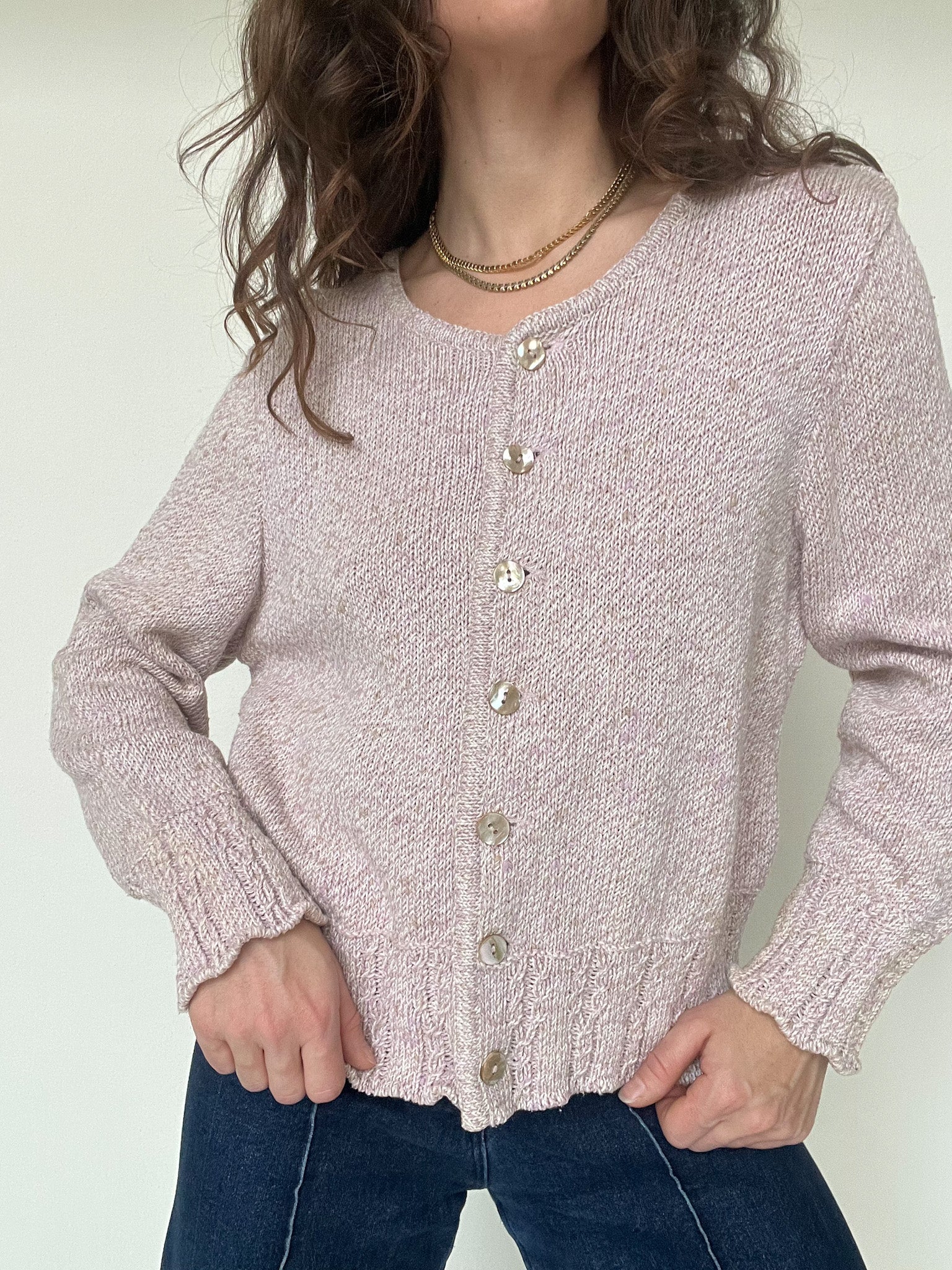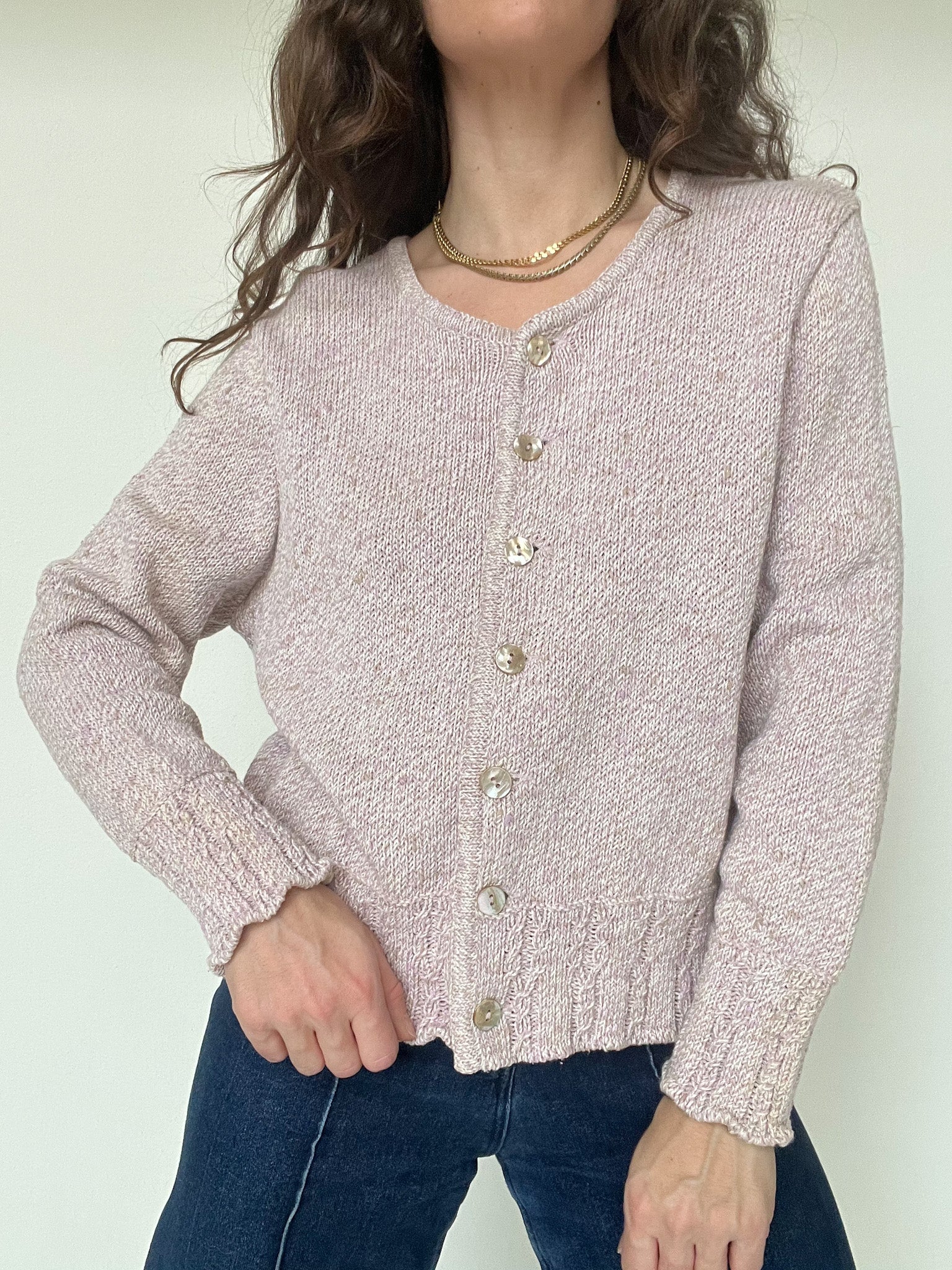 - Special features: Soft pastel pink tone, classic buttoned front, fine knit texture, lightweight yet cozy feel, authentic 90’s silhouette