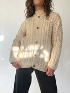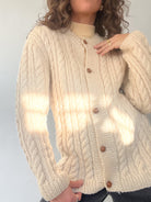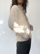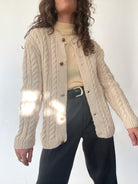 This timeless vintage cardigan is crafted with a beautiful cable-knit pattern, exuding classic charm and cozy elegance. The soft cream hue complements any outfit, making it a versatile addition to your wardrobe.