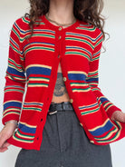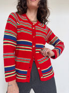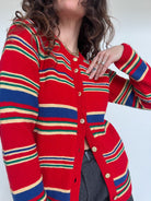 Vintage Red Striped Knit Cardigan