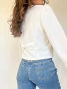 Refined and poetic, this white vintage jacket embodies a sense of quiet elegance. The curved hem and delicate back bow create a silhouette that feels both structured and soft. For women who love the subtle strength of beautiful tailoring — Skorpiones Vintage invites you to explore the power of details.