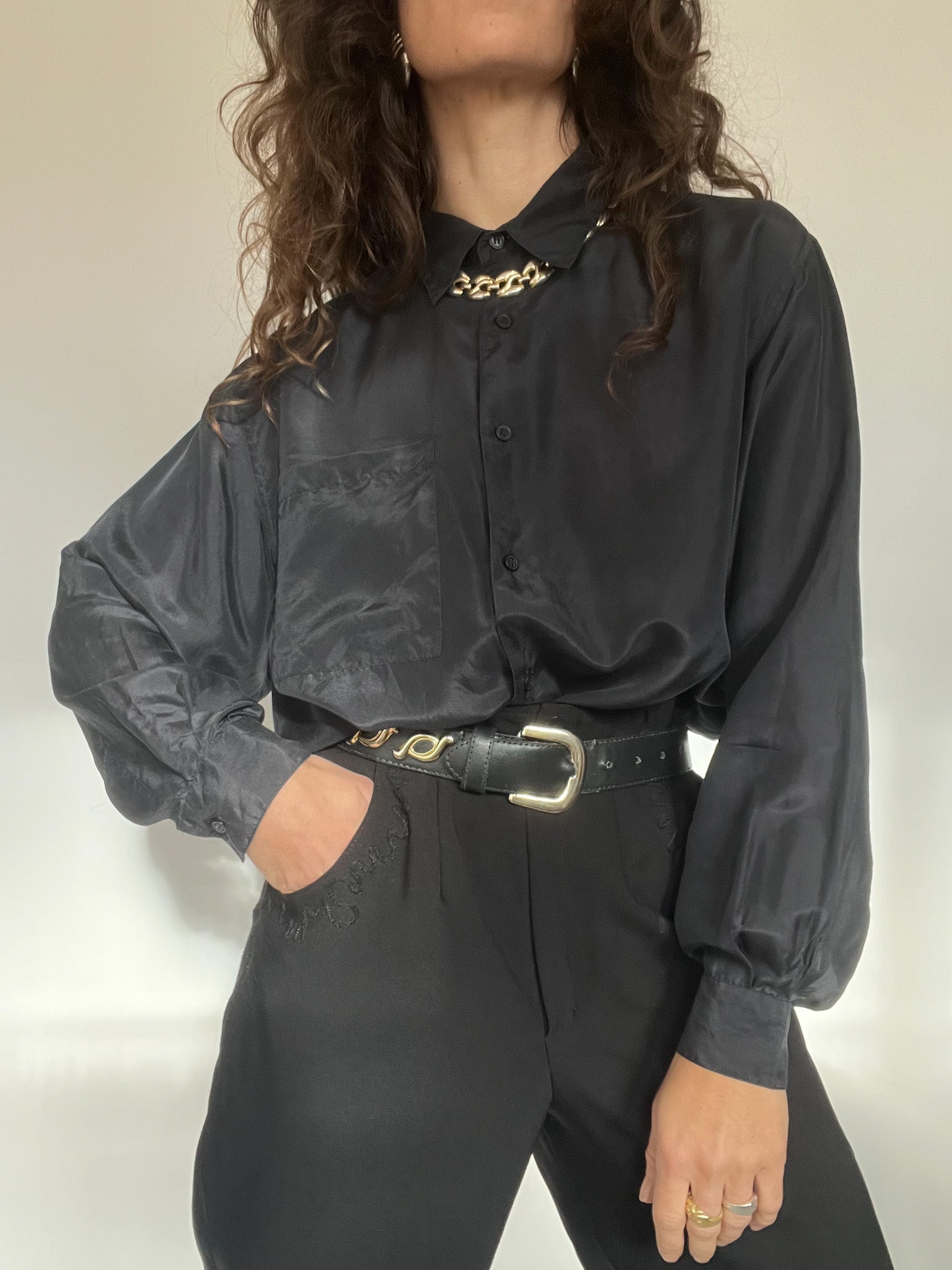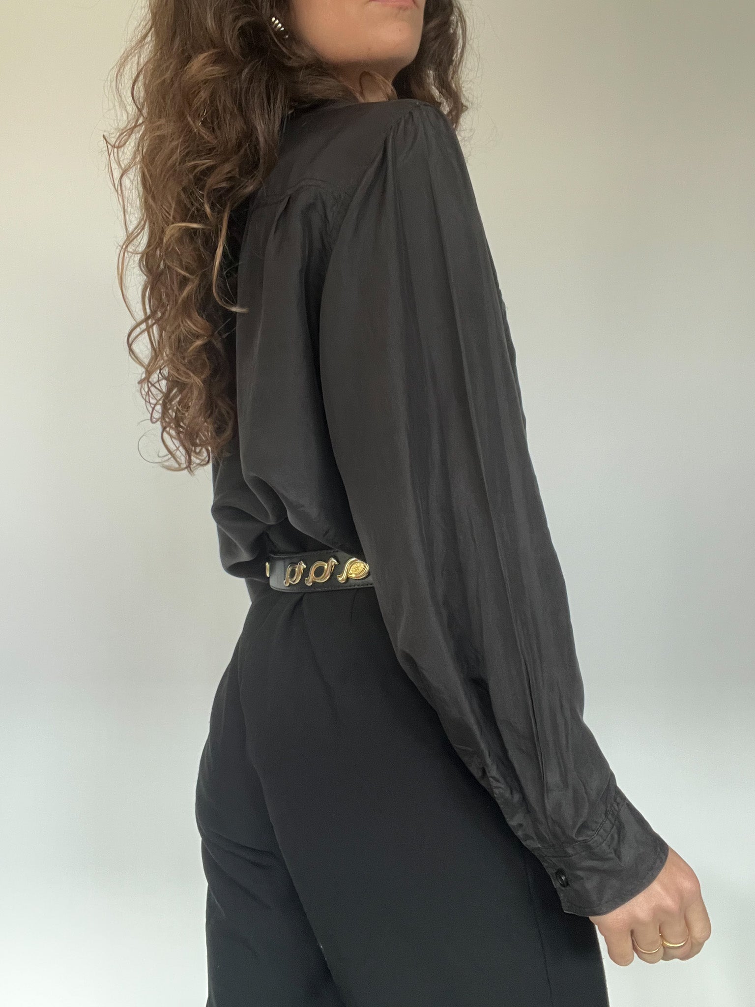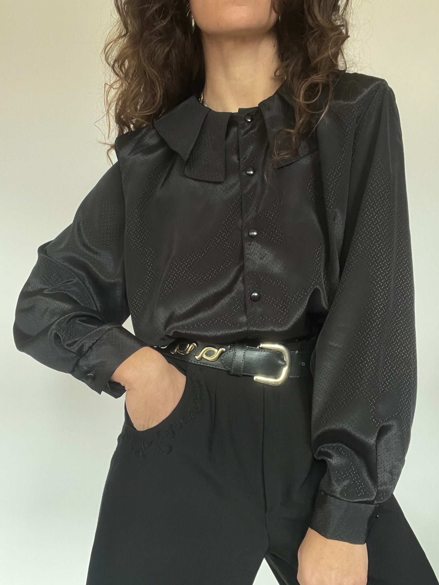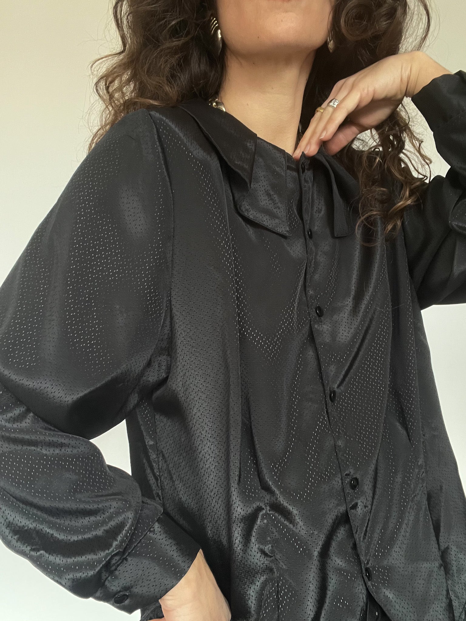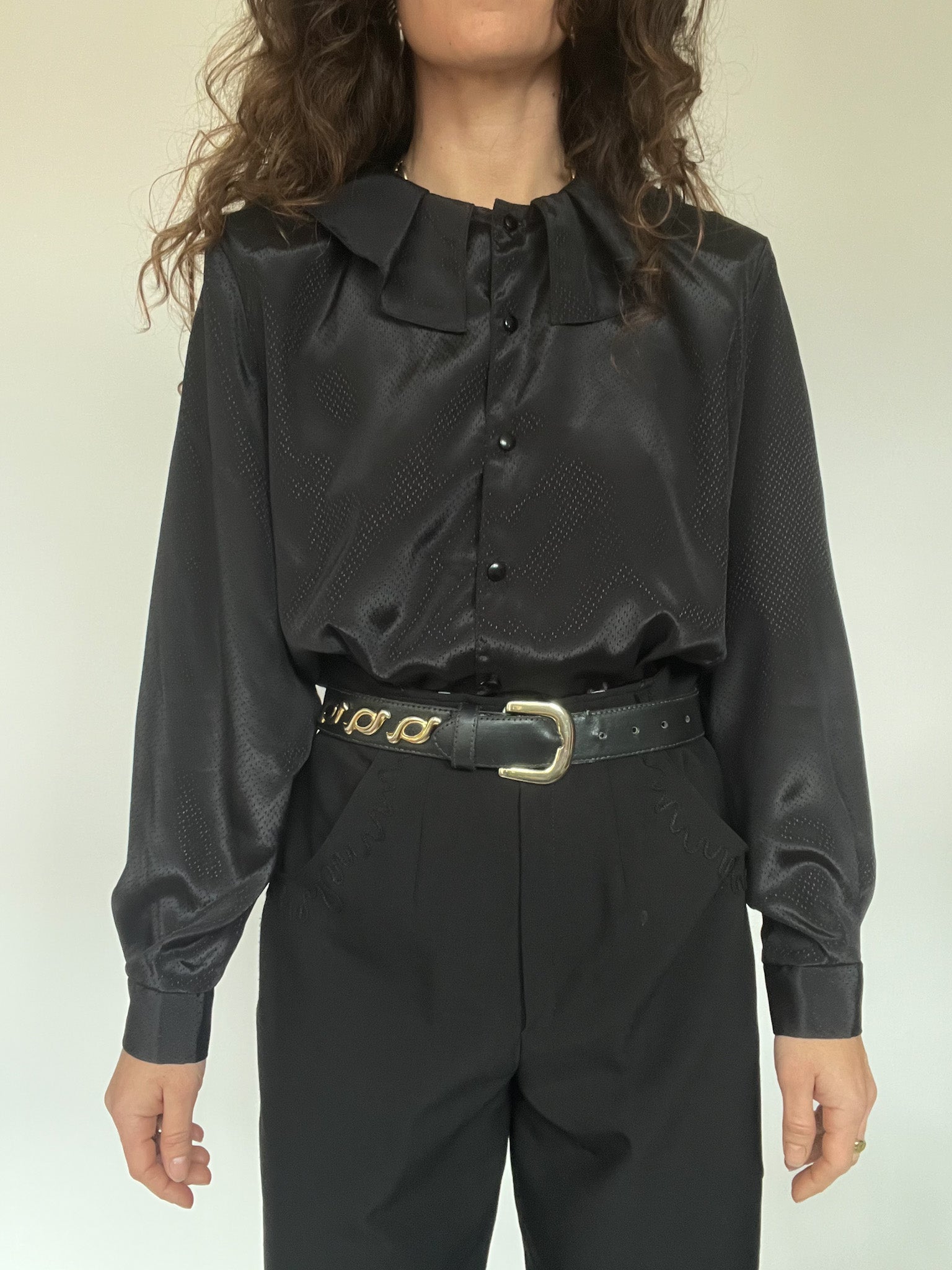 Vintage 90’s Black Textured Ruffled Collar Shirt