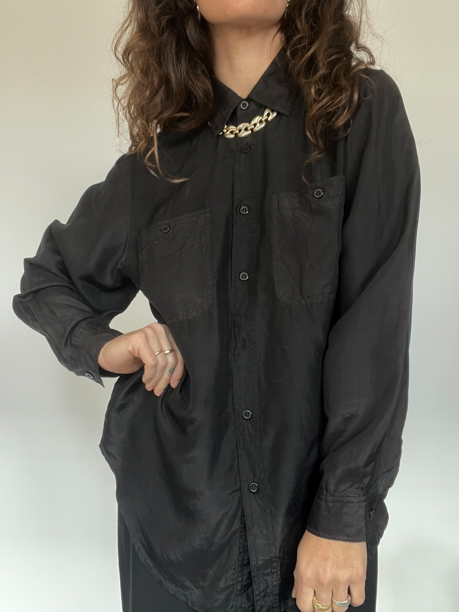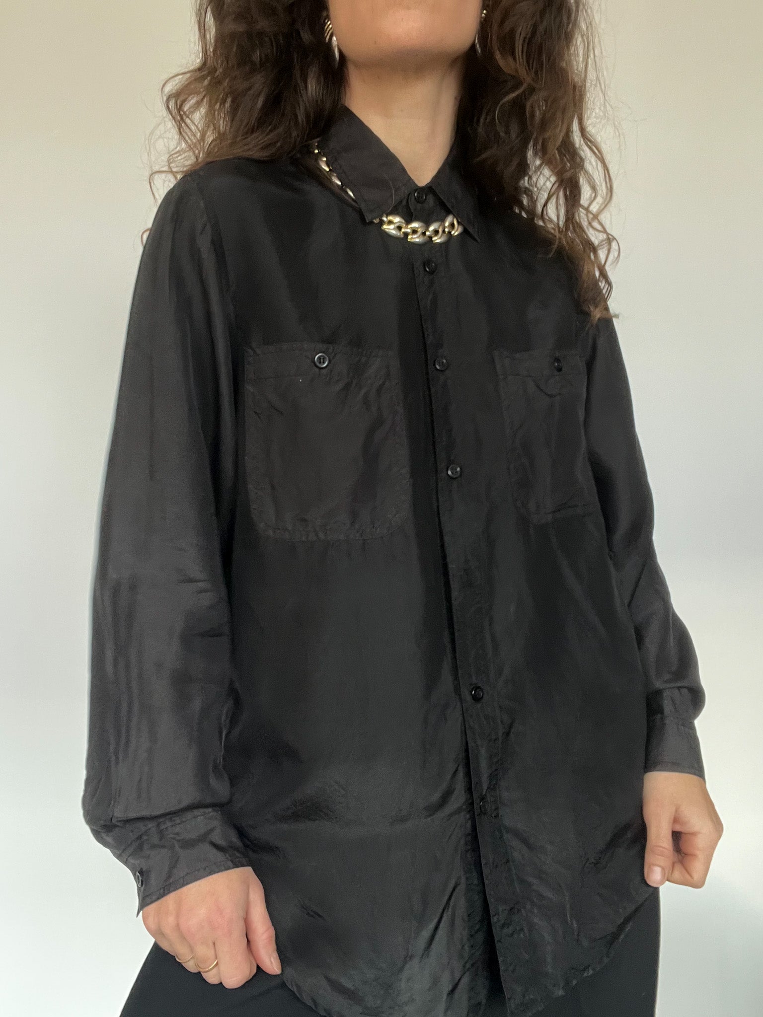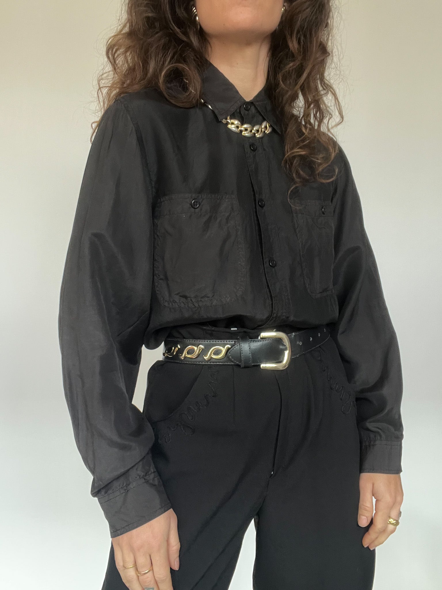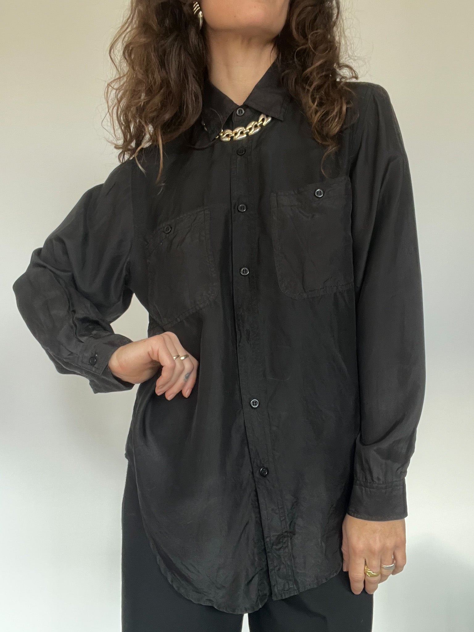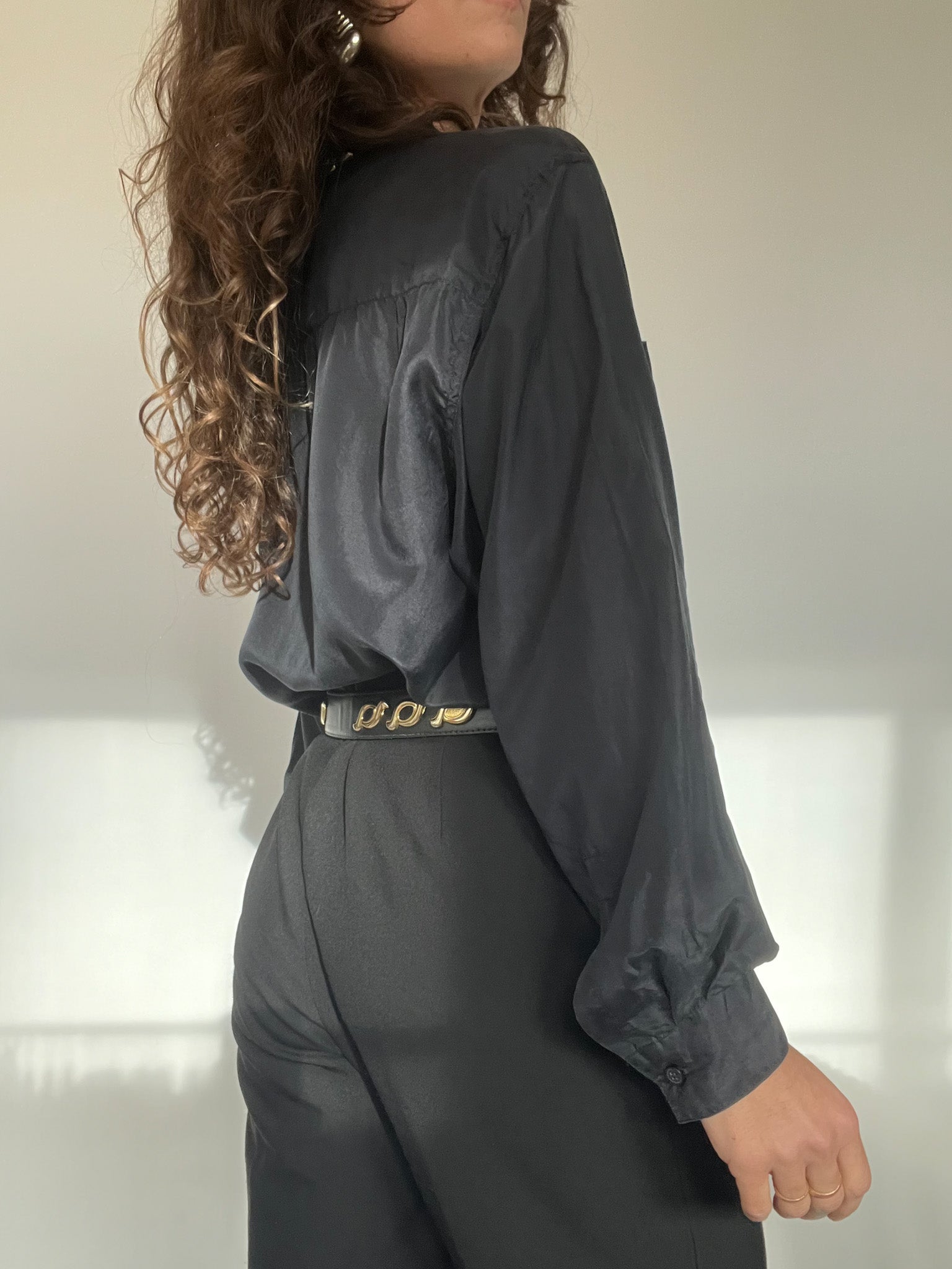 Vintage 90’s Black Textured Ruffled Collar Shirt