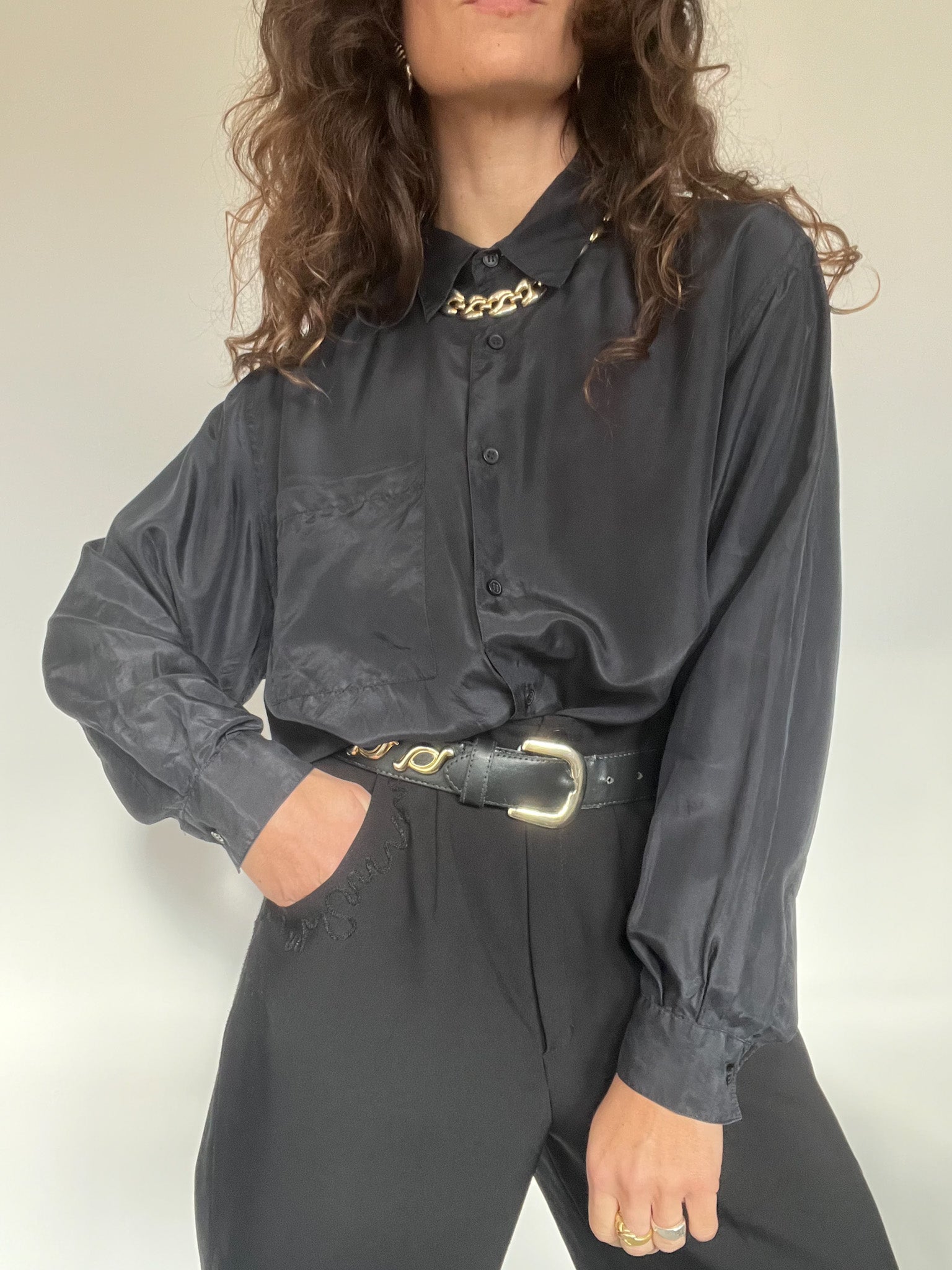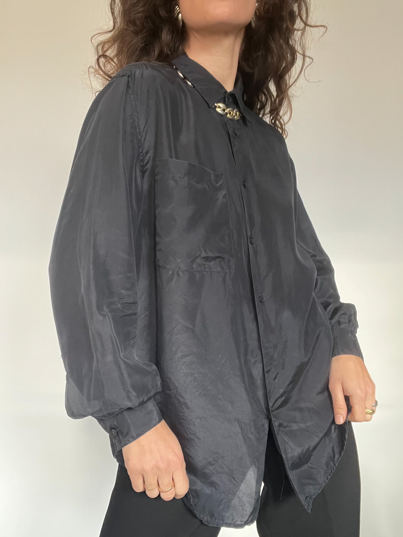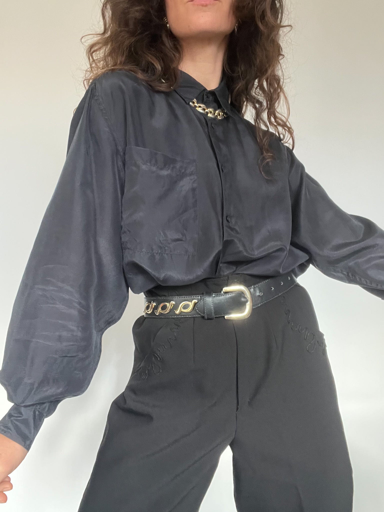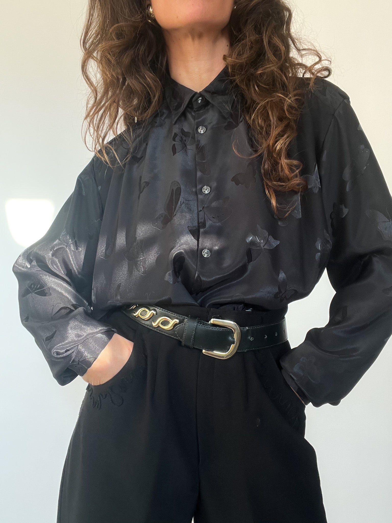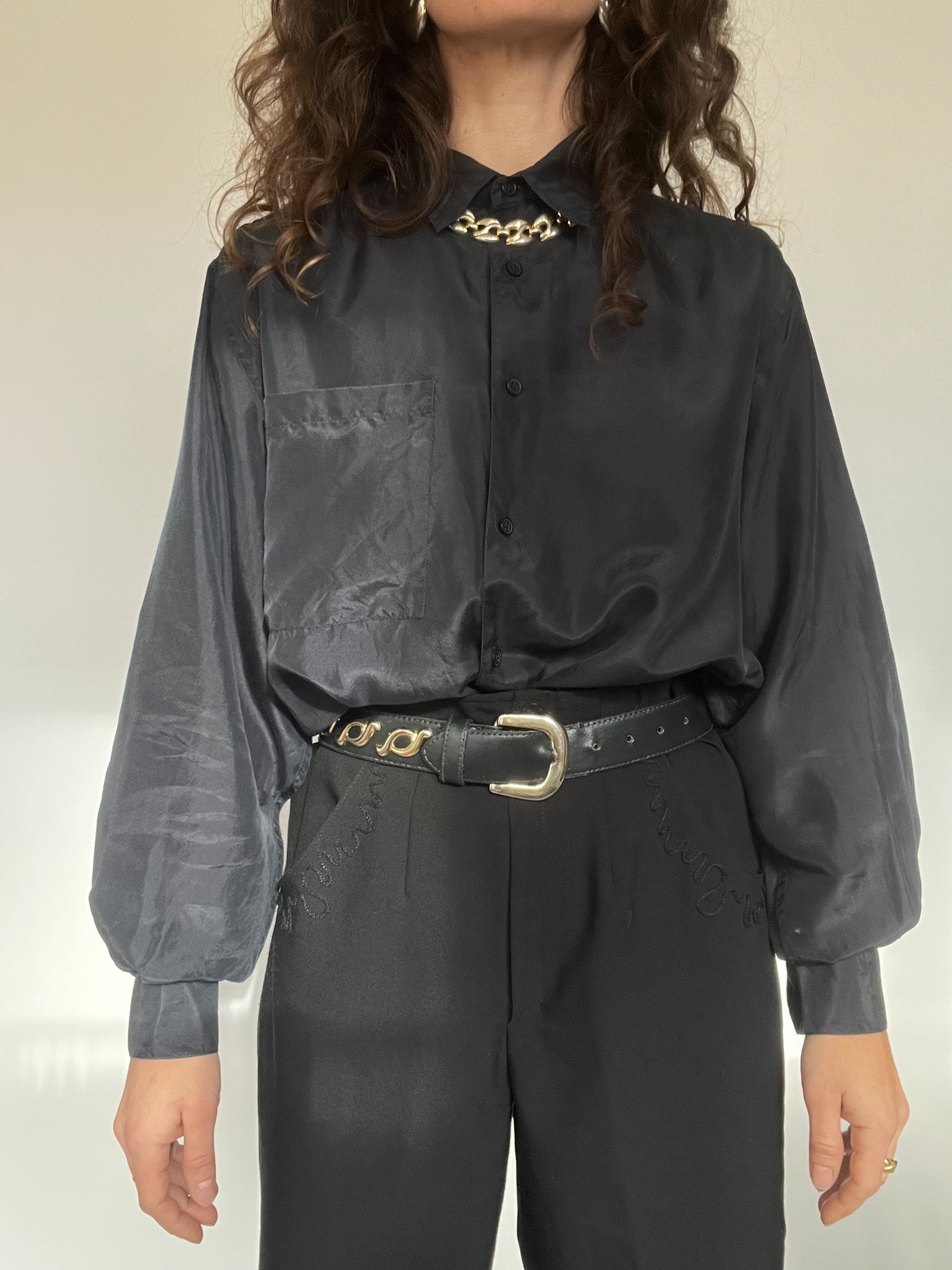 Vintage 90’s Black Textured Ruffled Collar Shirt