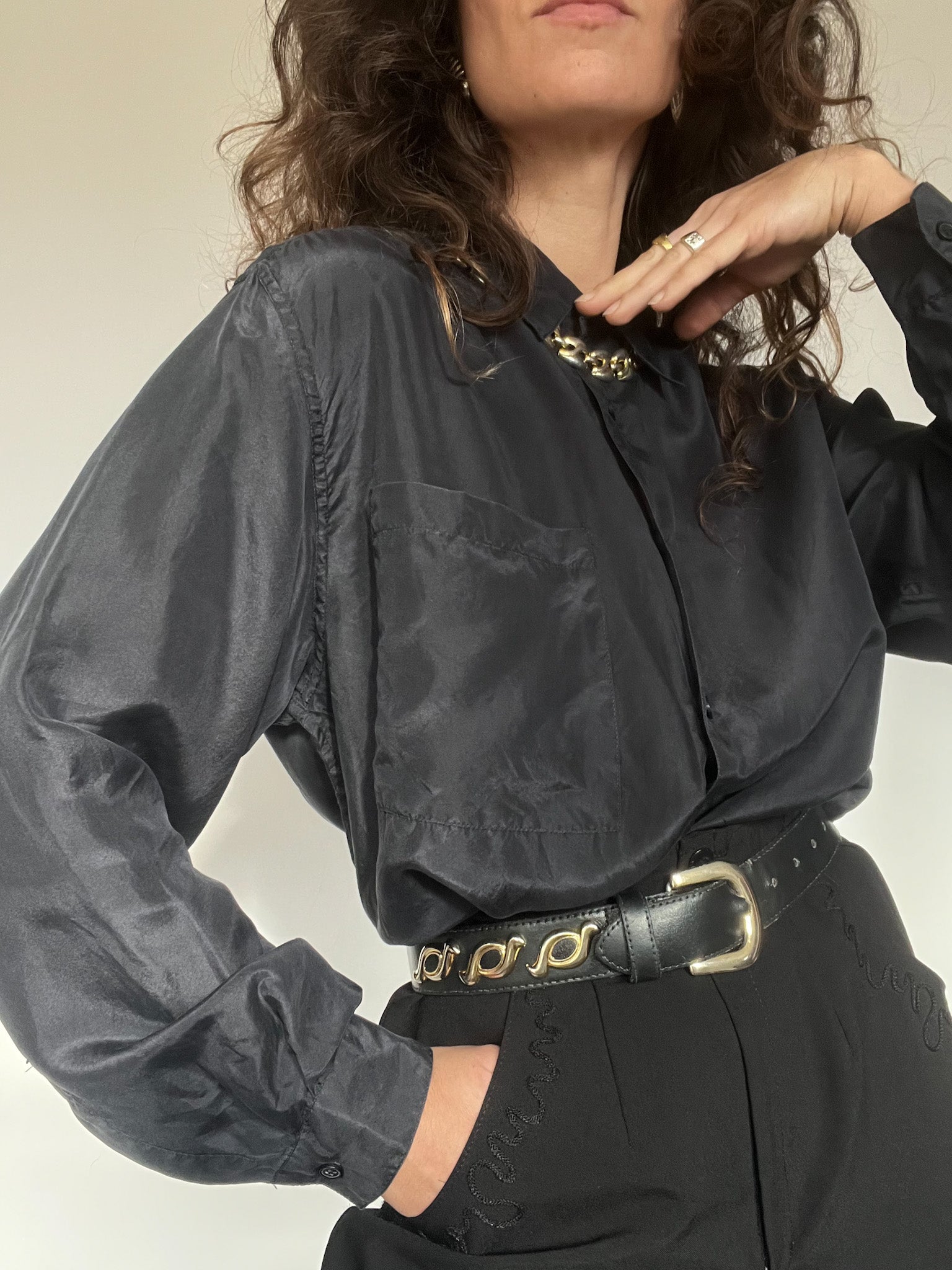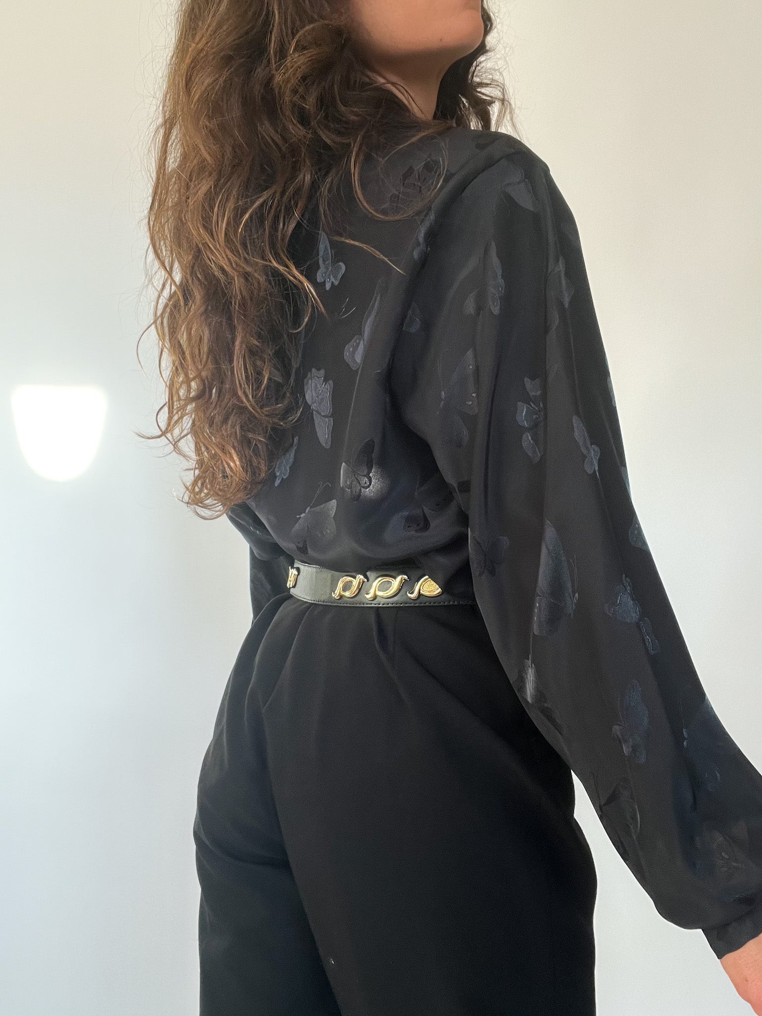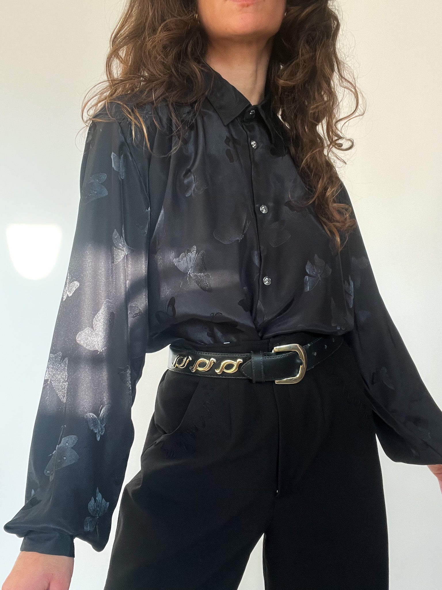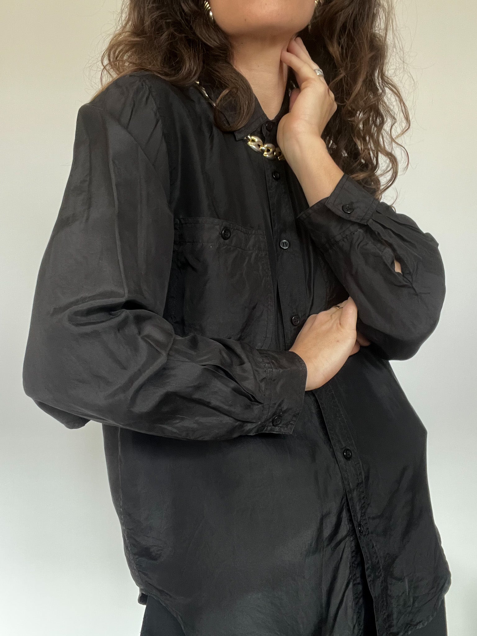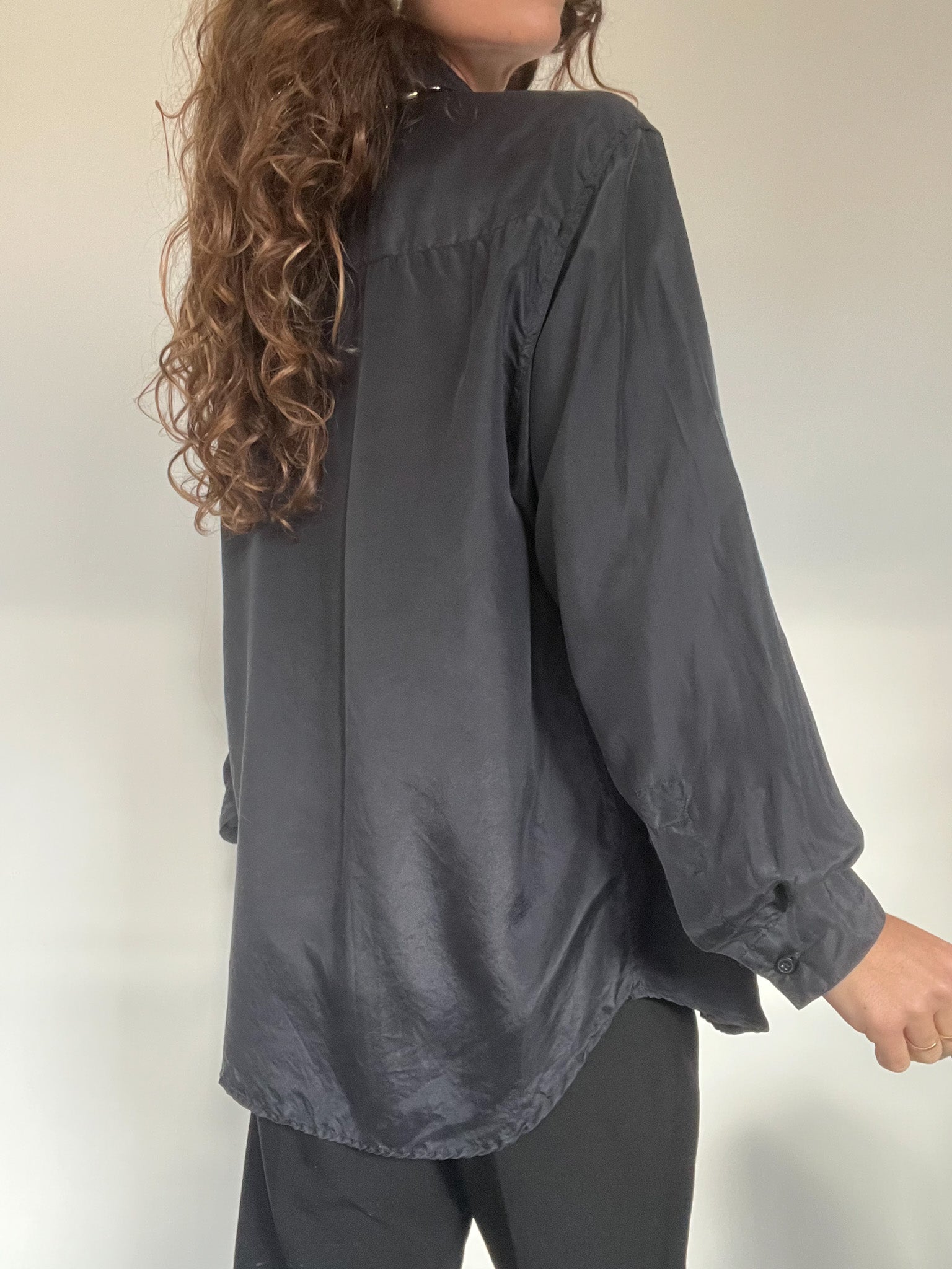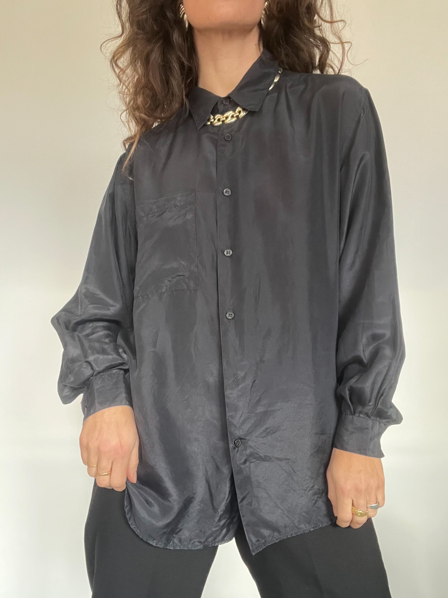 Vintage 90’s Black Textured Ruffled Collar Shirt