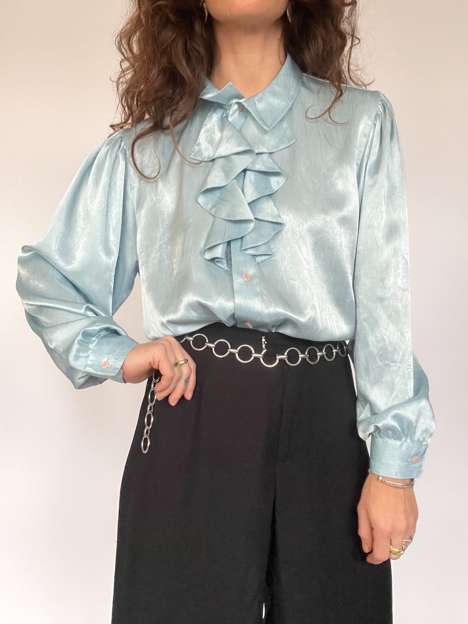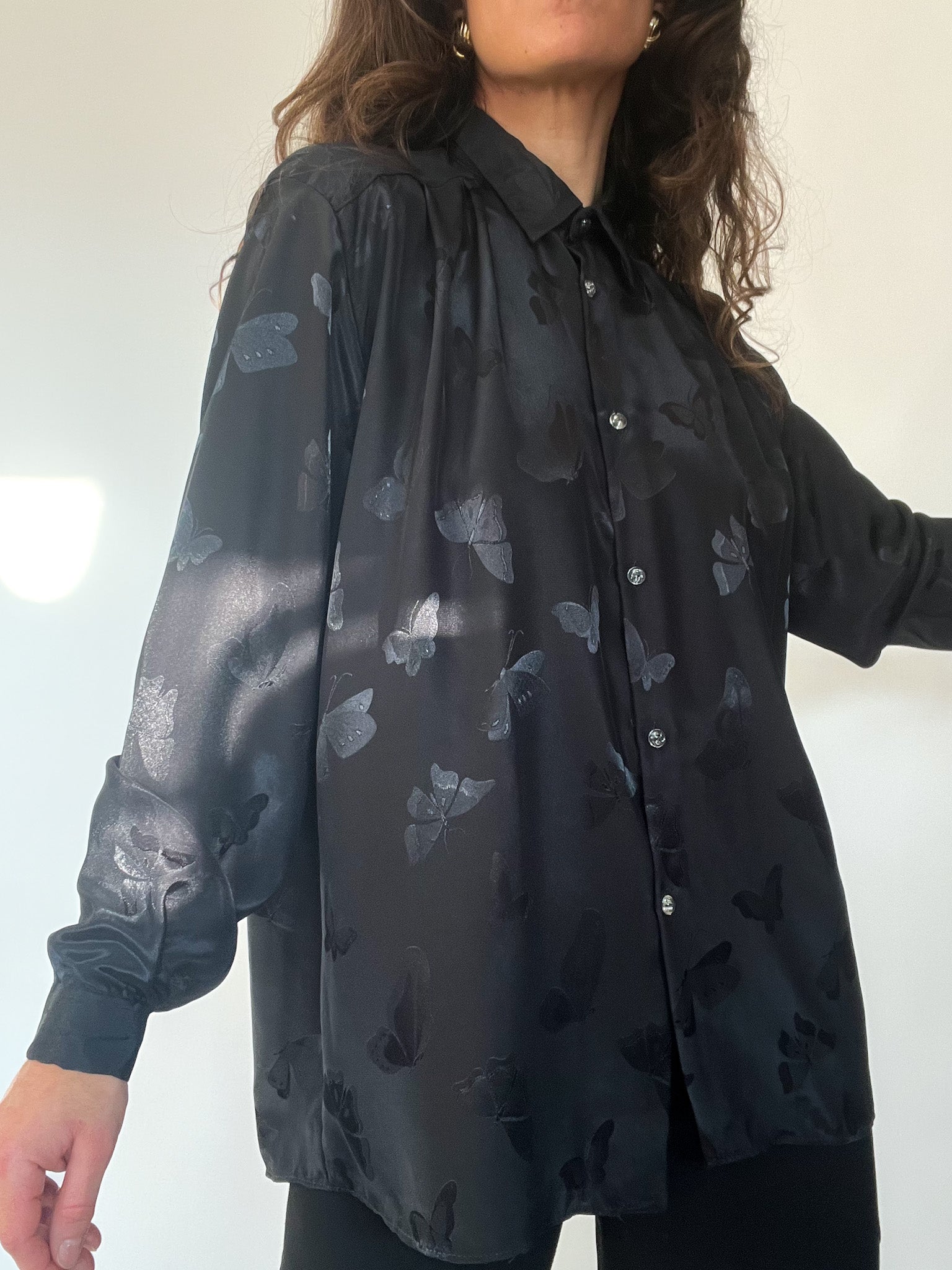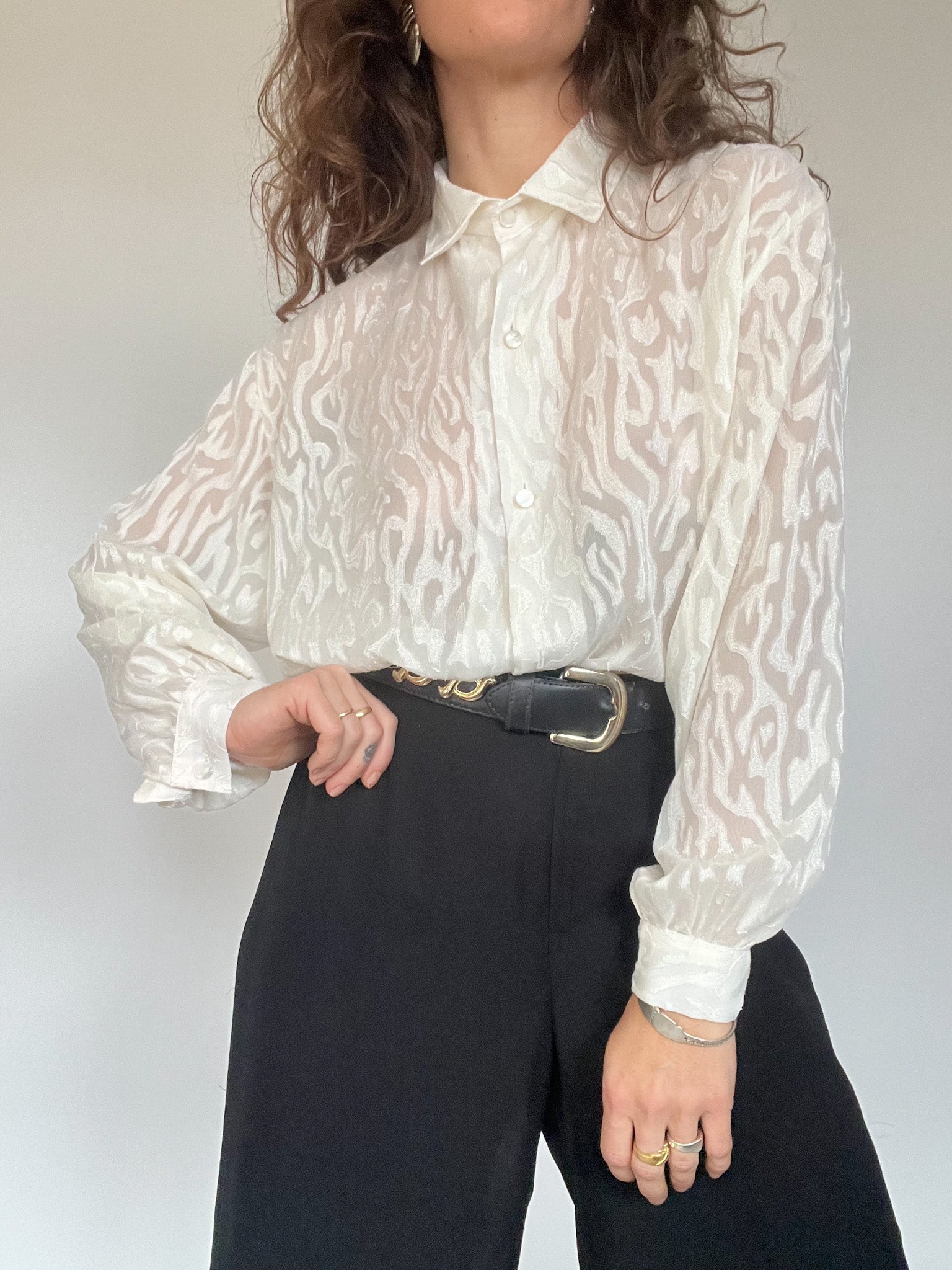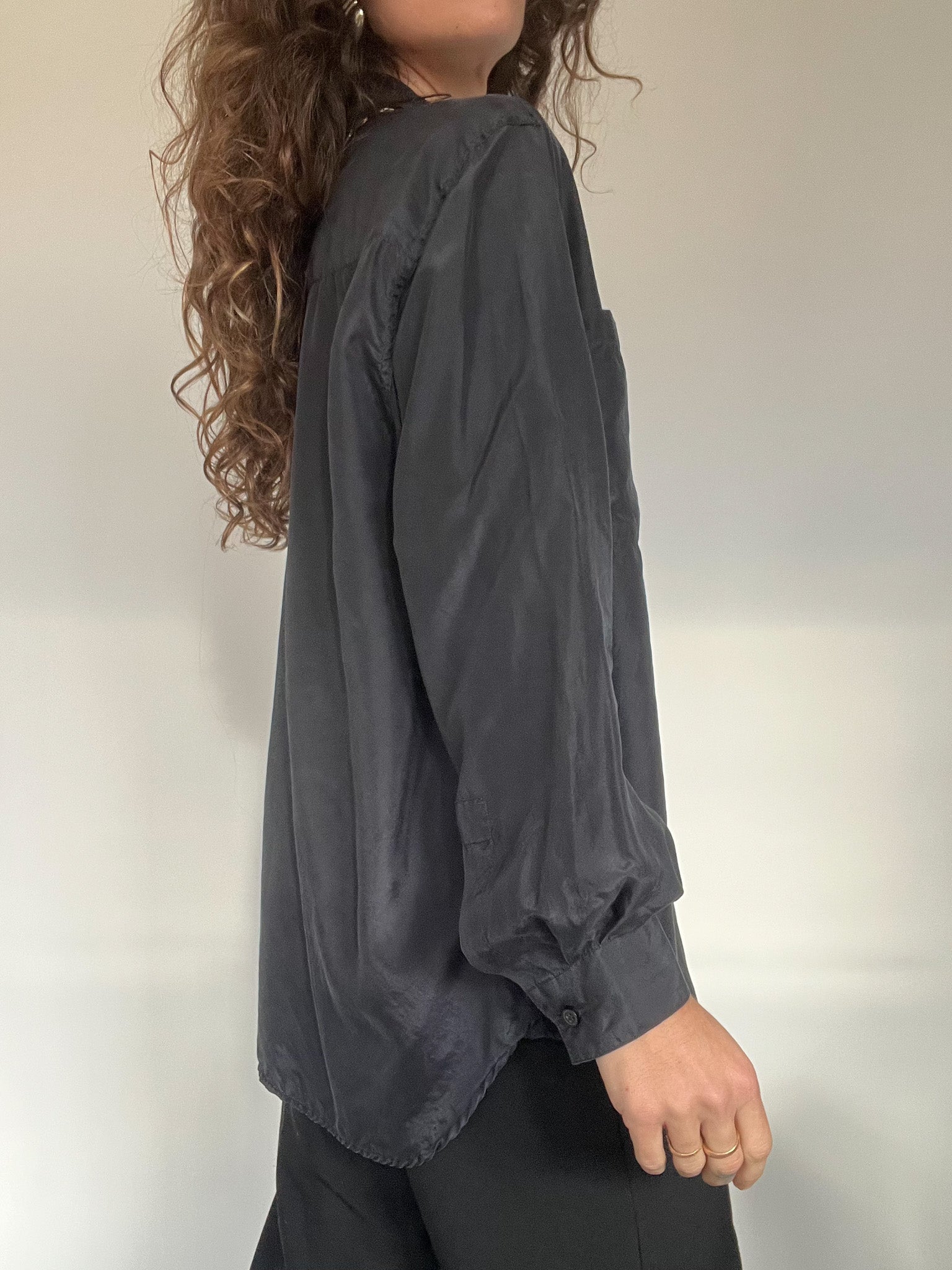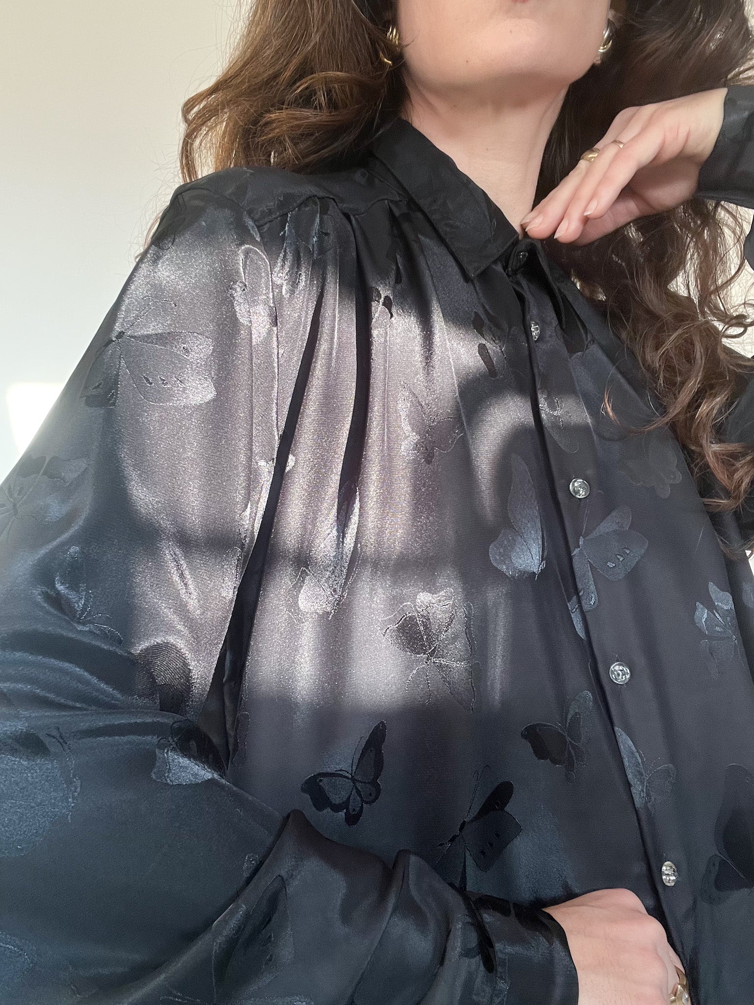 Vintage 90’s Black Textured Ruffled Collar Shirt