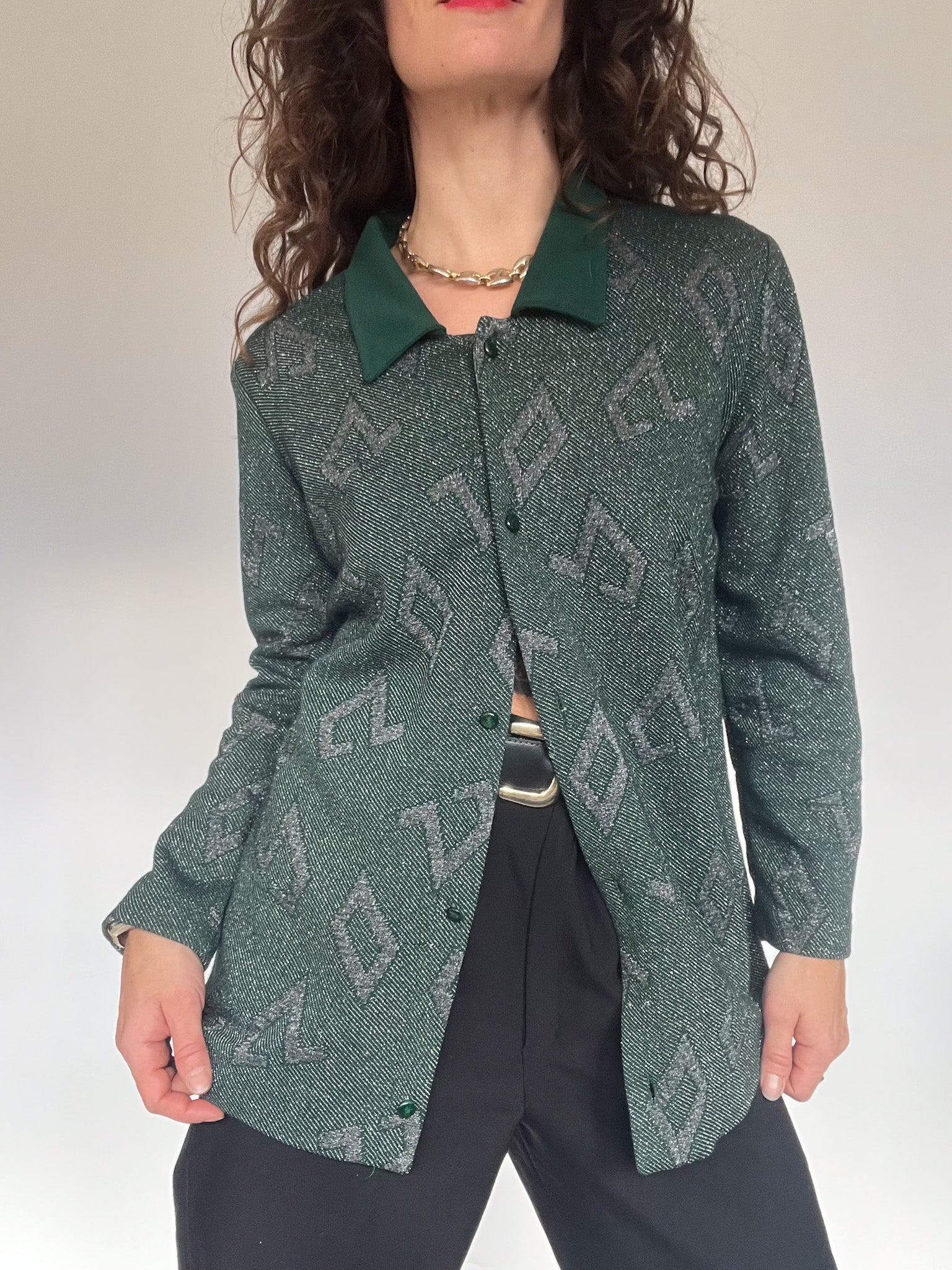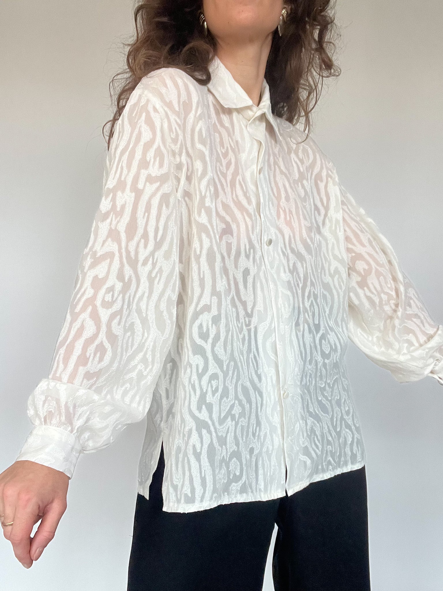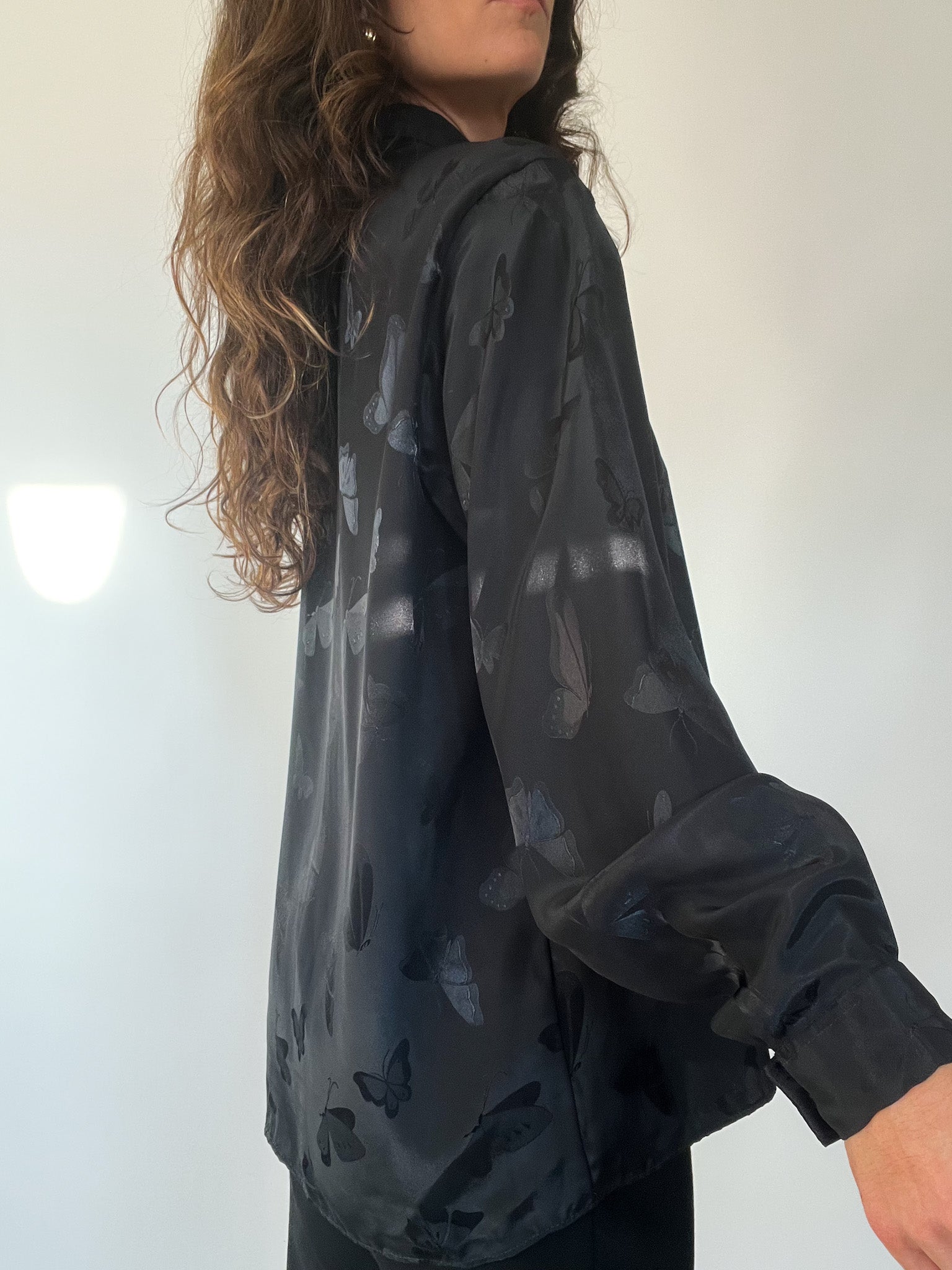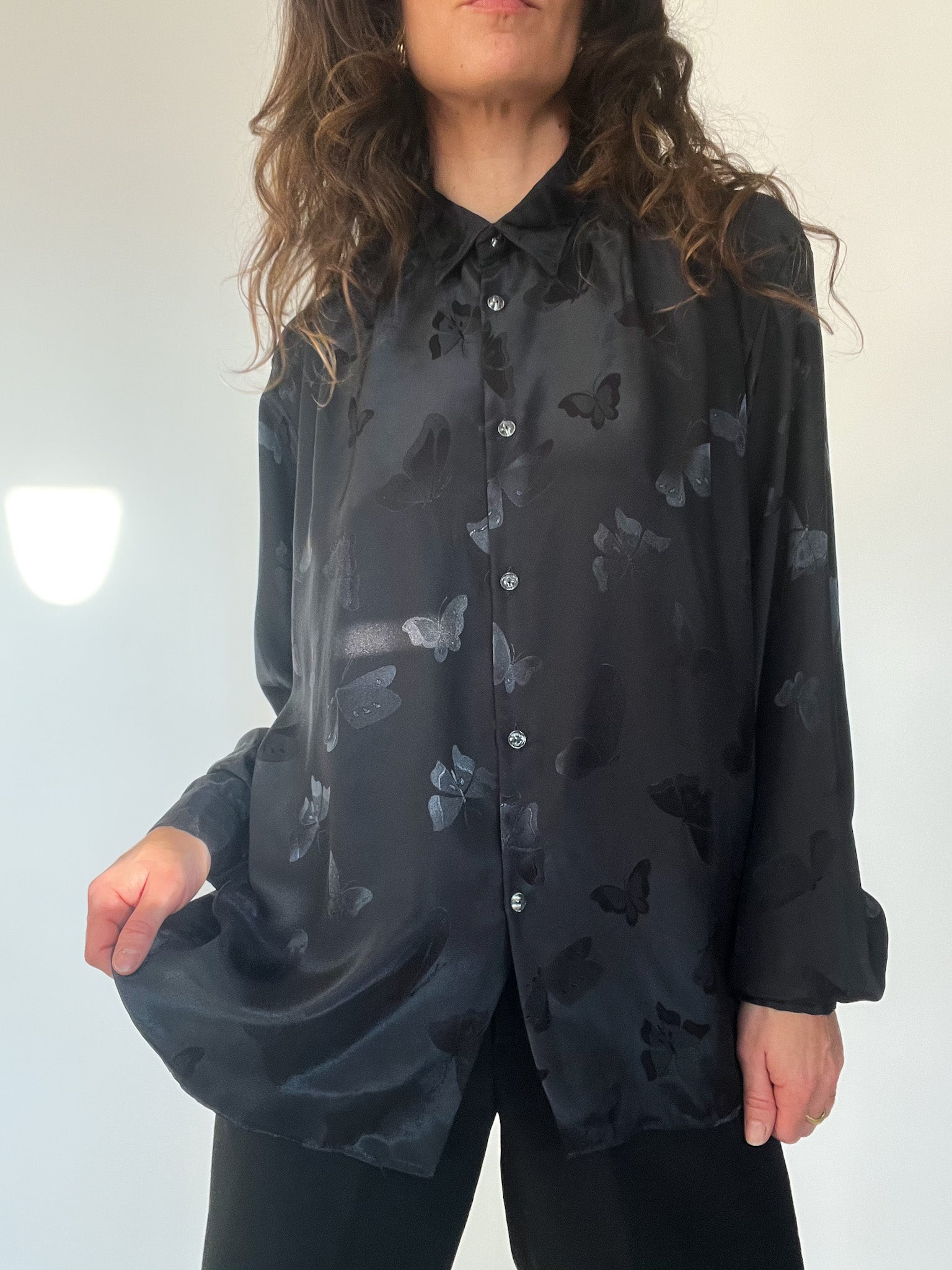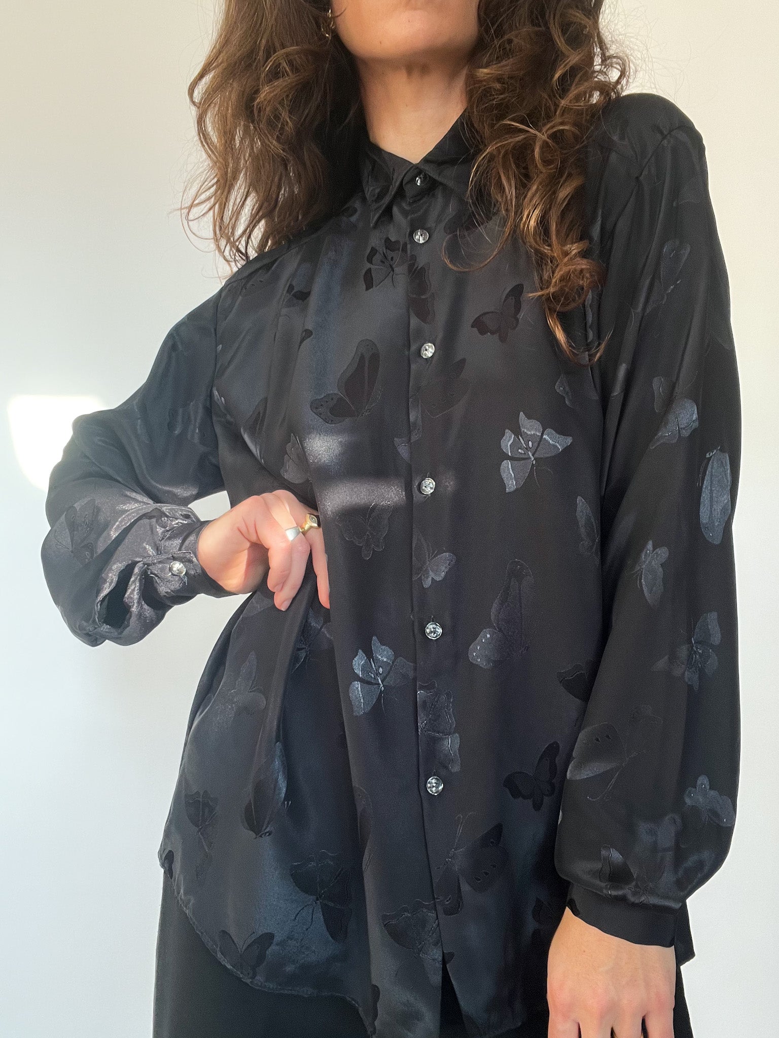 Vintage 90’s Black Textured Ruffled Collar Shirt