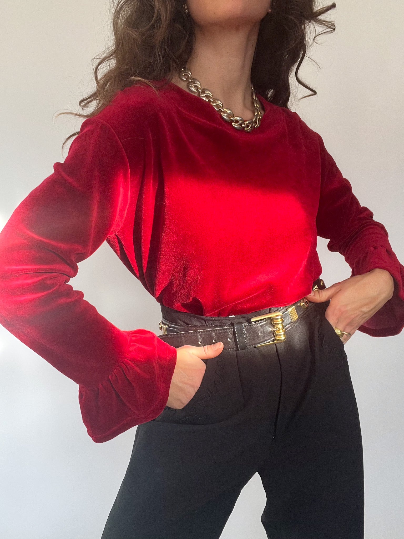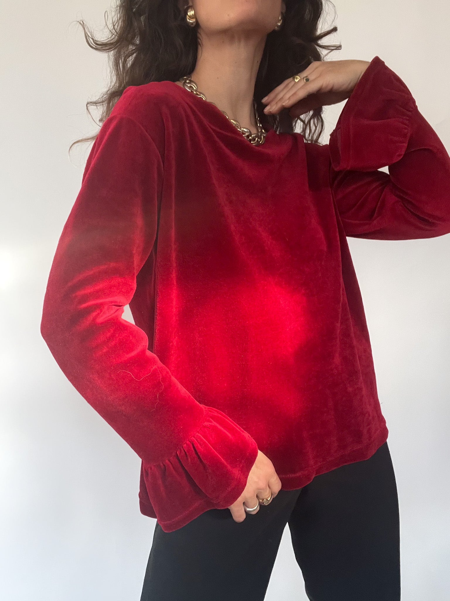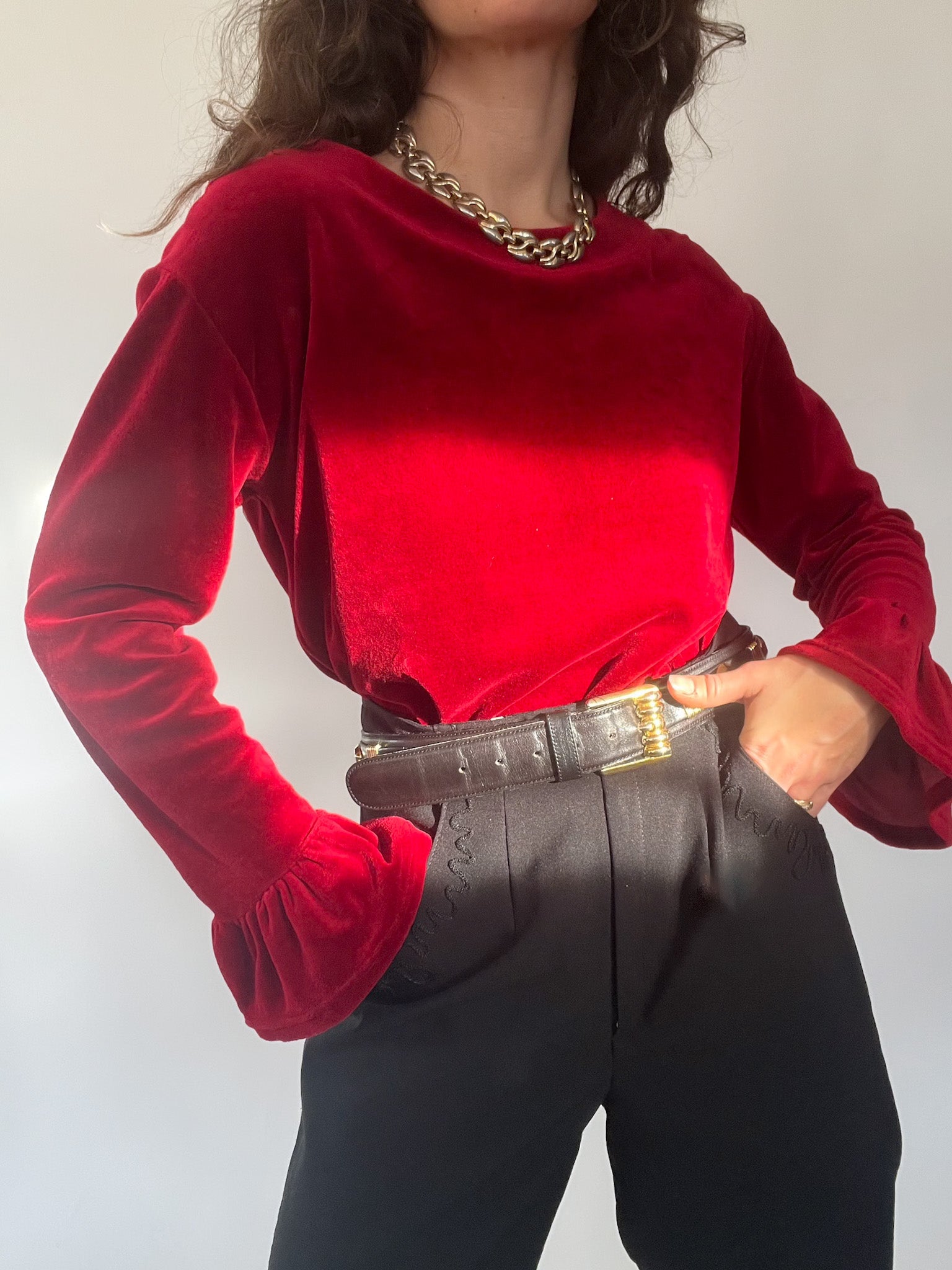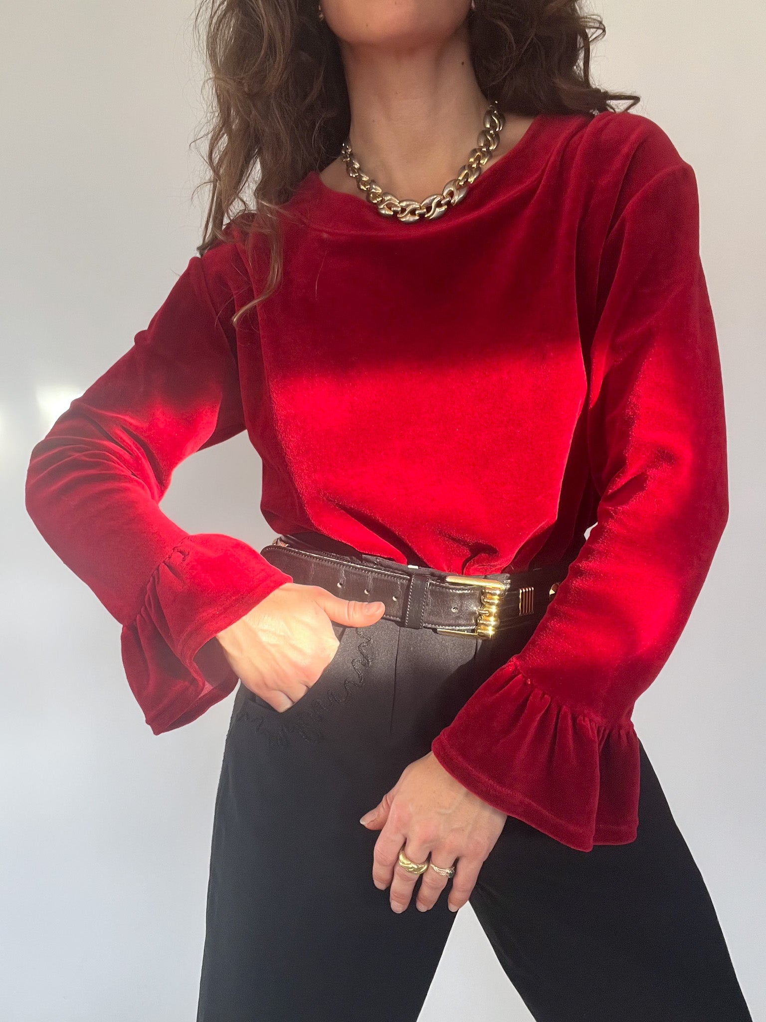 Vintage 90’s Crimson Velvet Flounce Sleeve Blouse