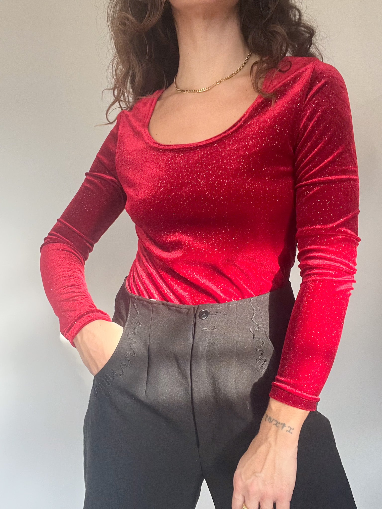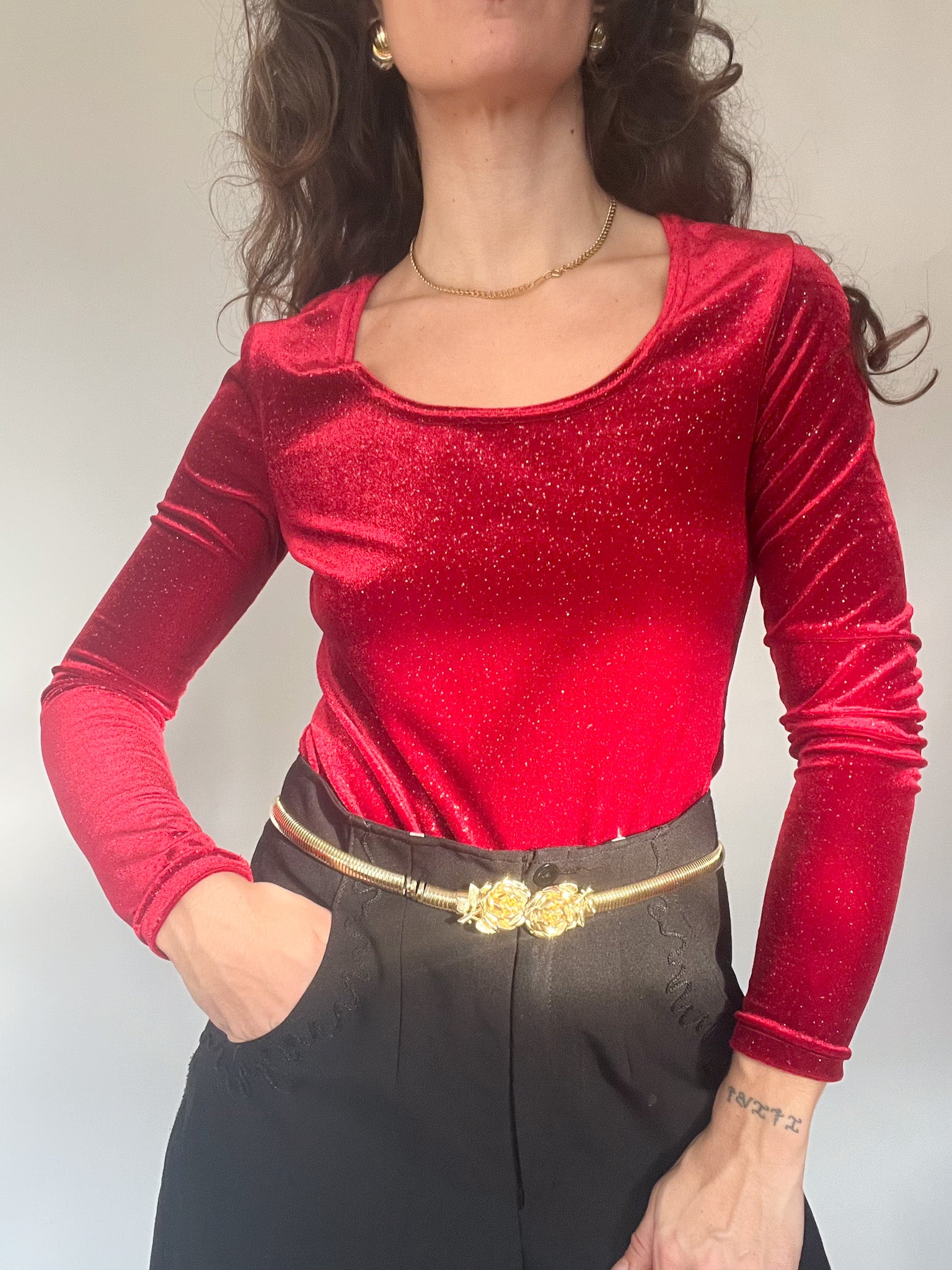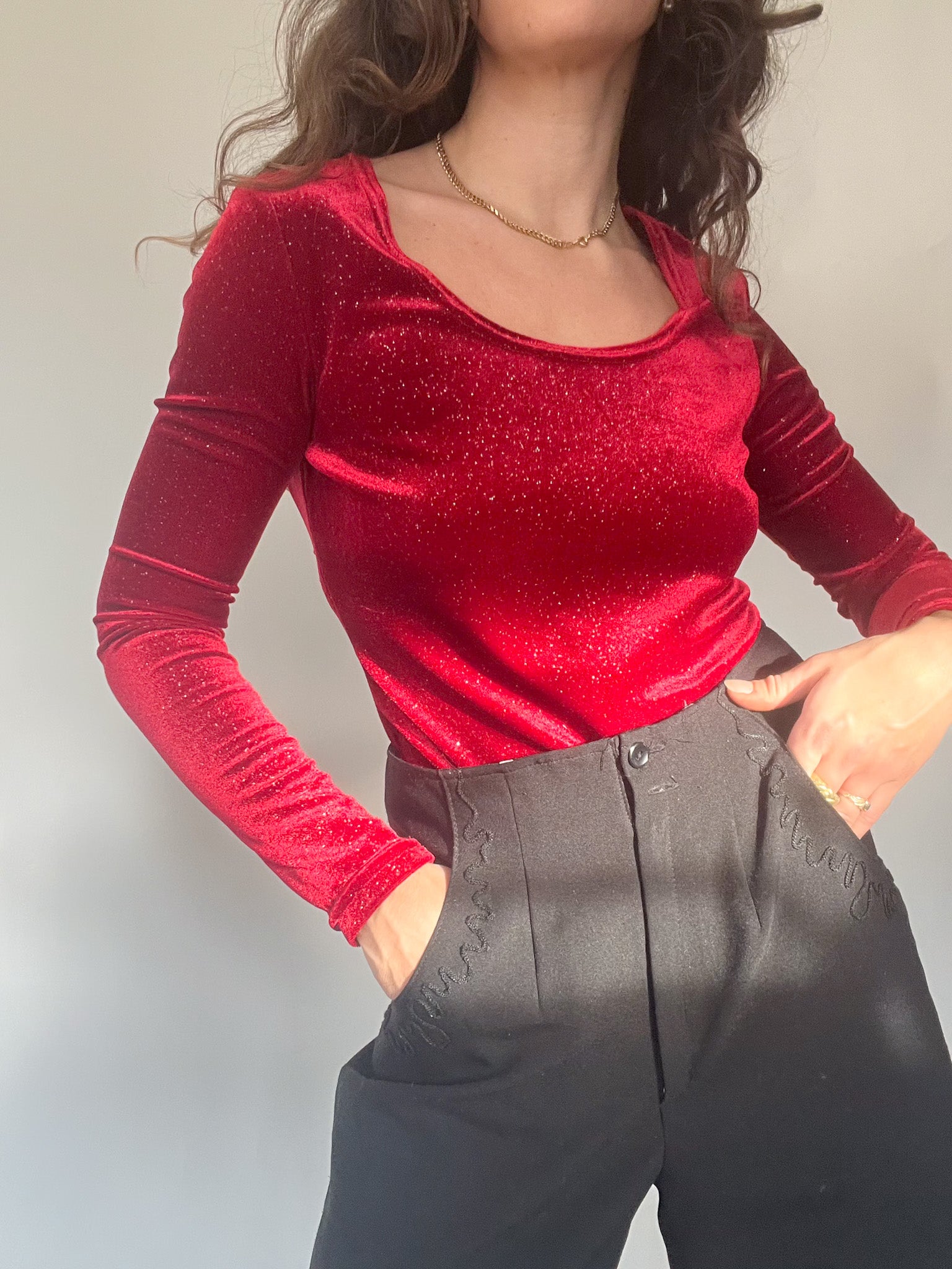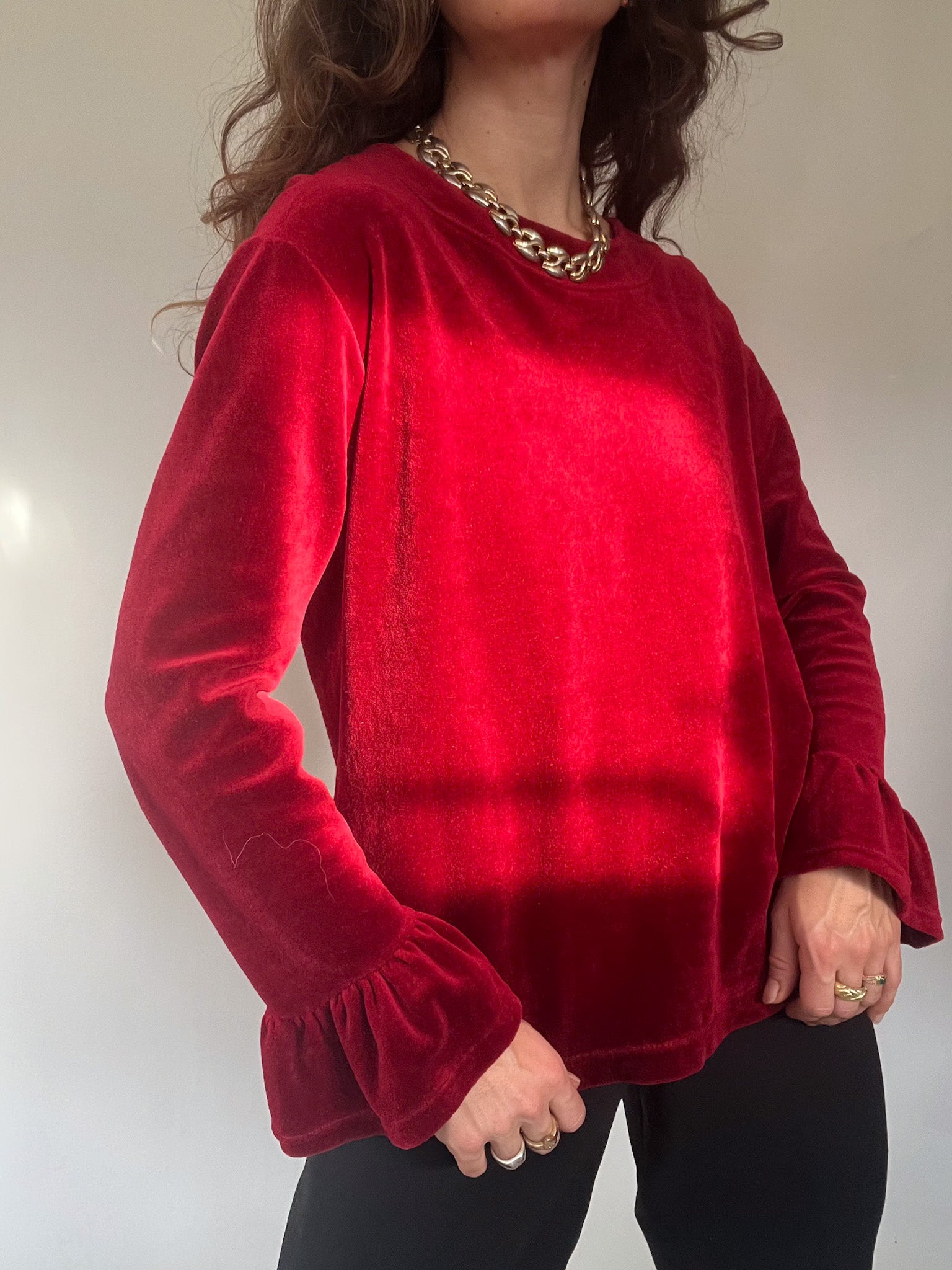 Vintage 90’s Crimson Velvet Flounce Sleeve Blouse