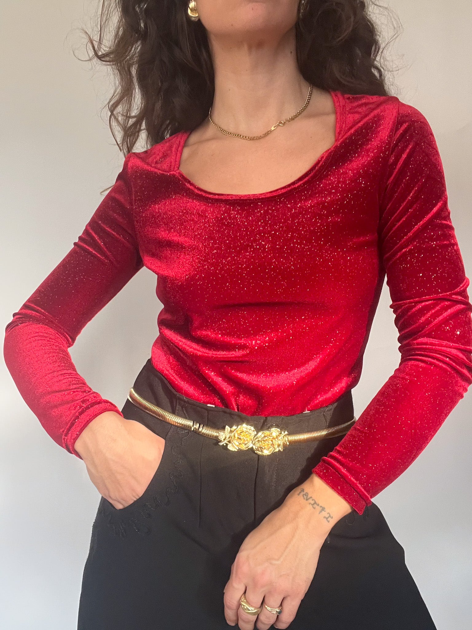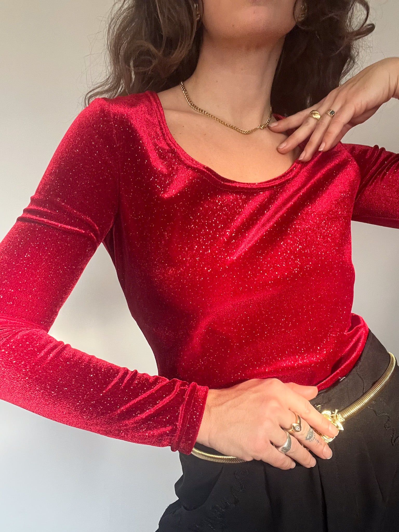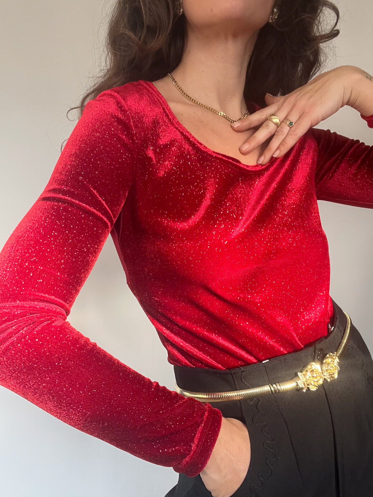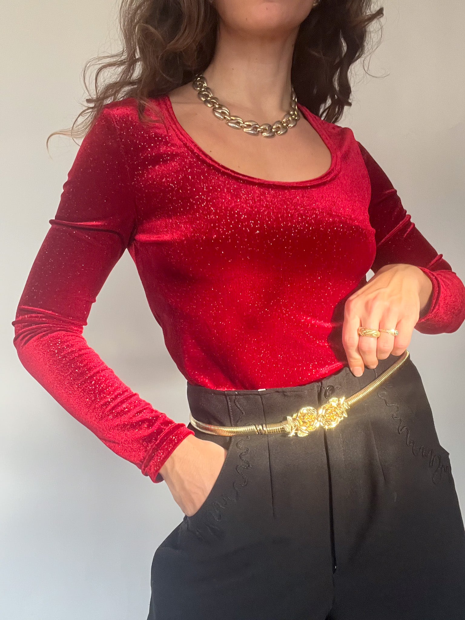 Vintage 90’s Crimson Velvet Flounce Sleeve Blouse