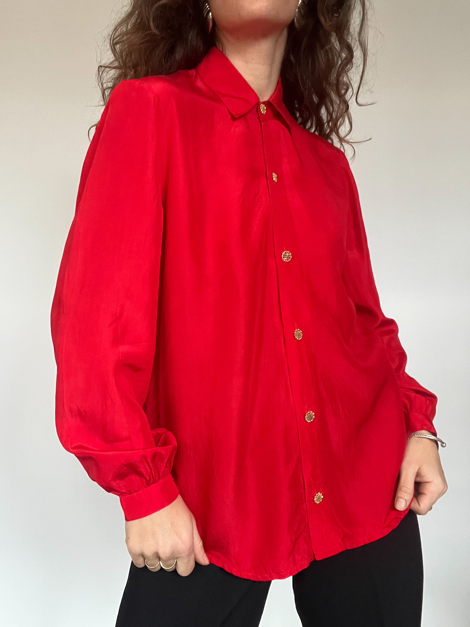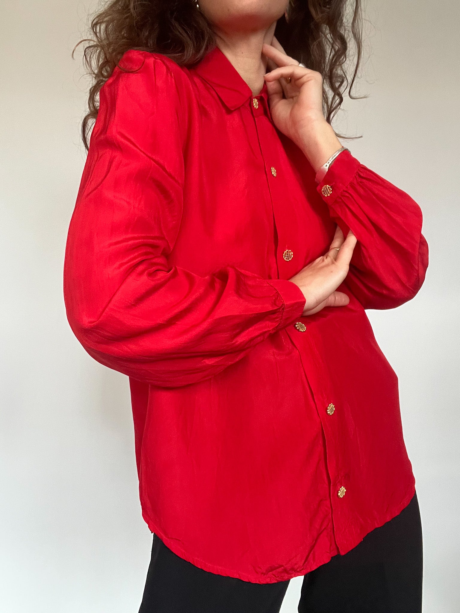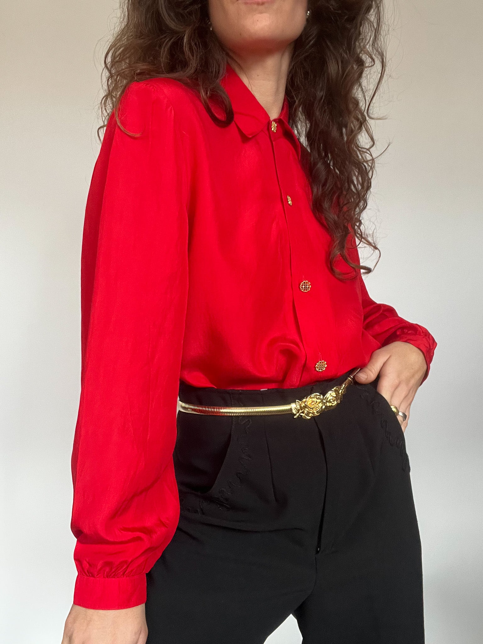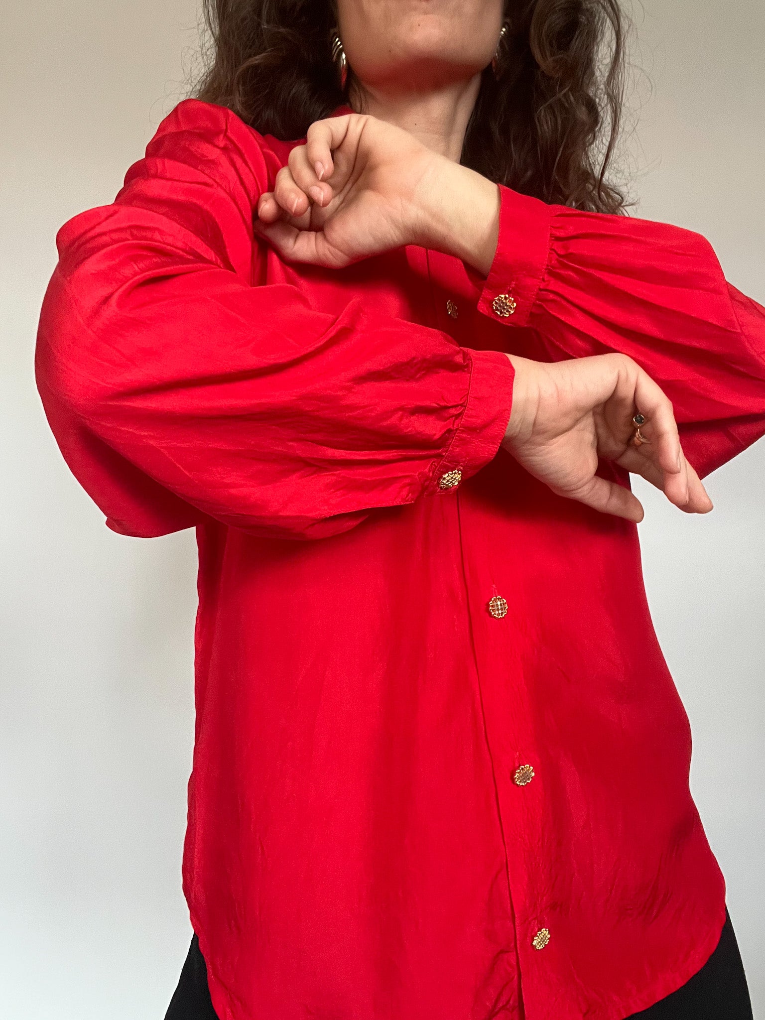 Vintage 90’s Crimson Velvet Flounce Sleeve Blouse