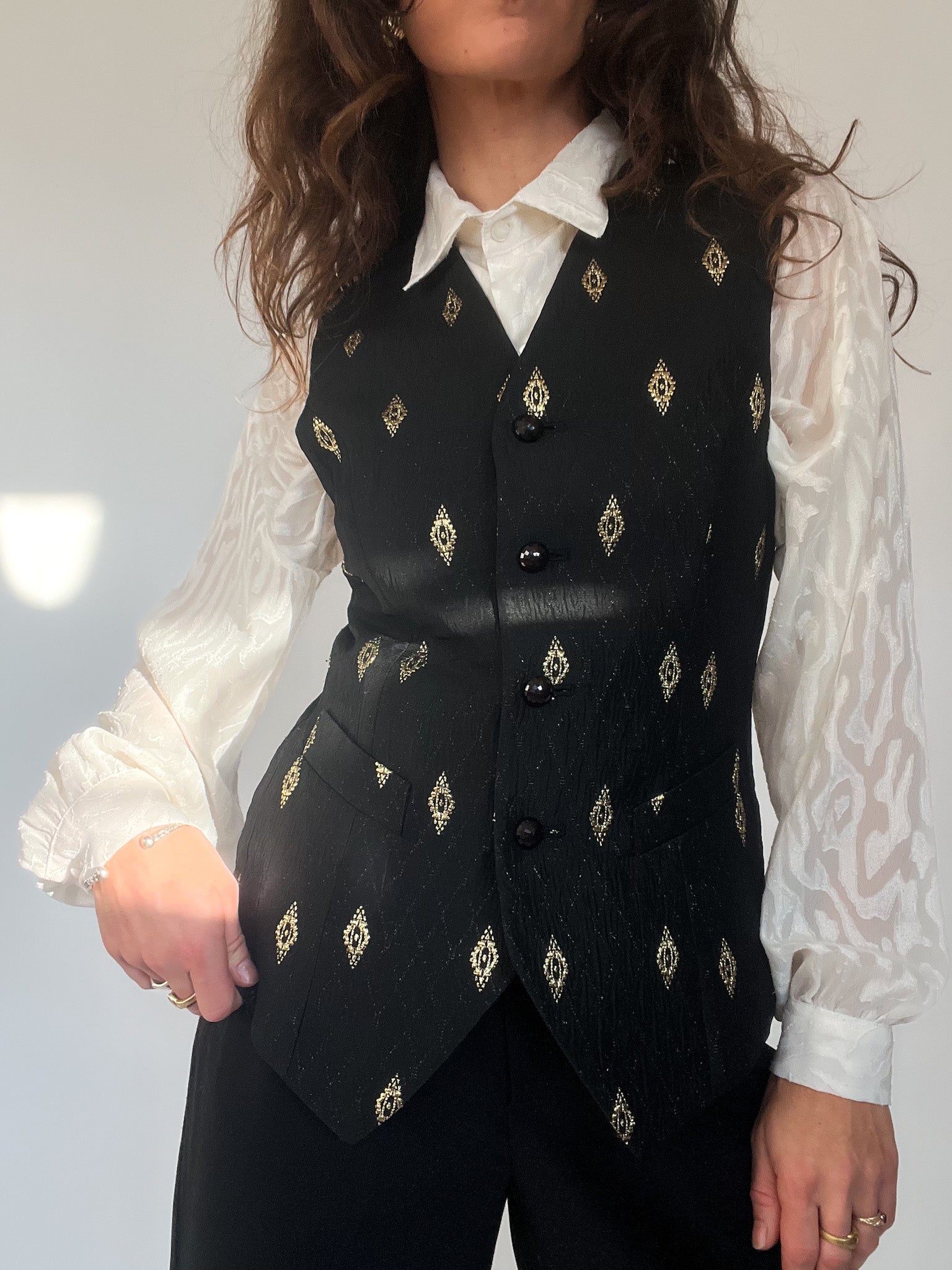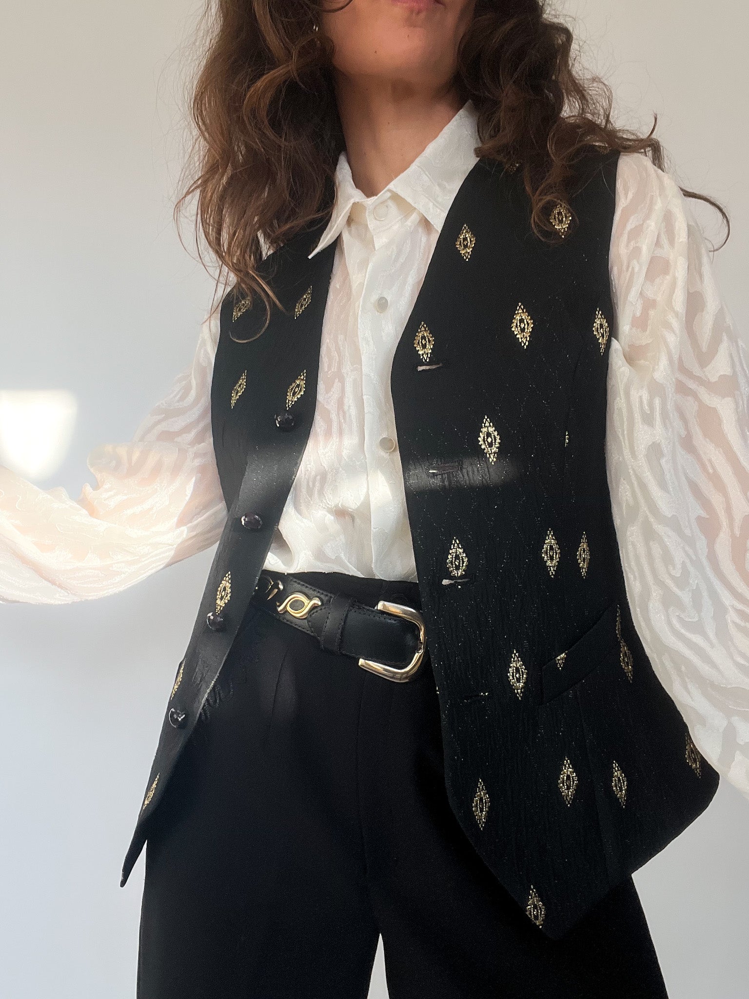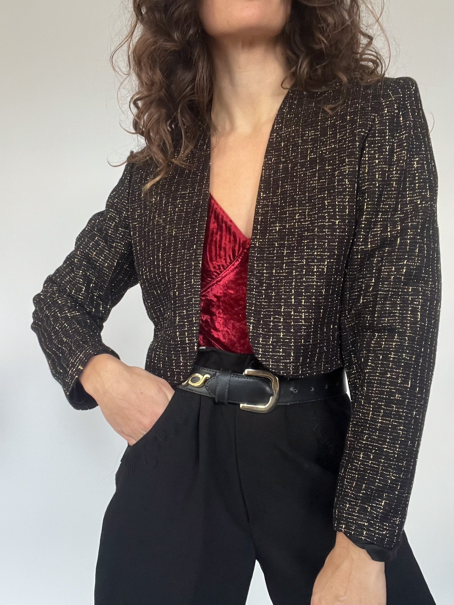 Vintage 90’s Black & Gold Cropped Evening Jacket