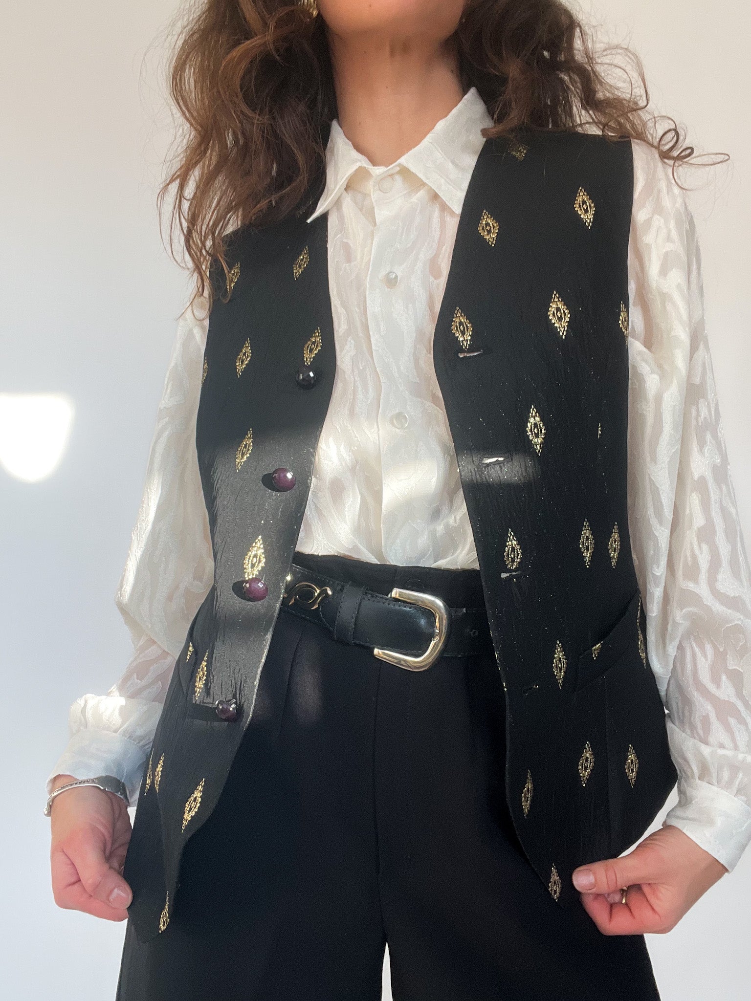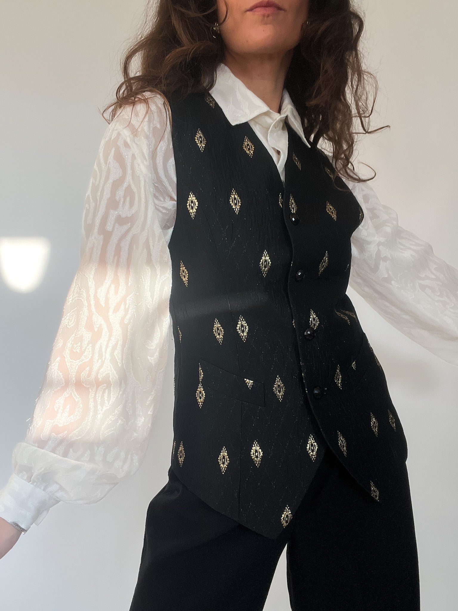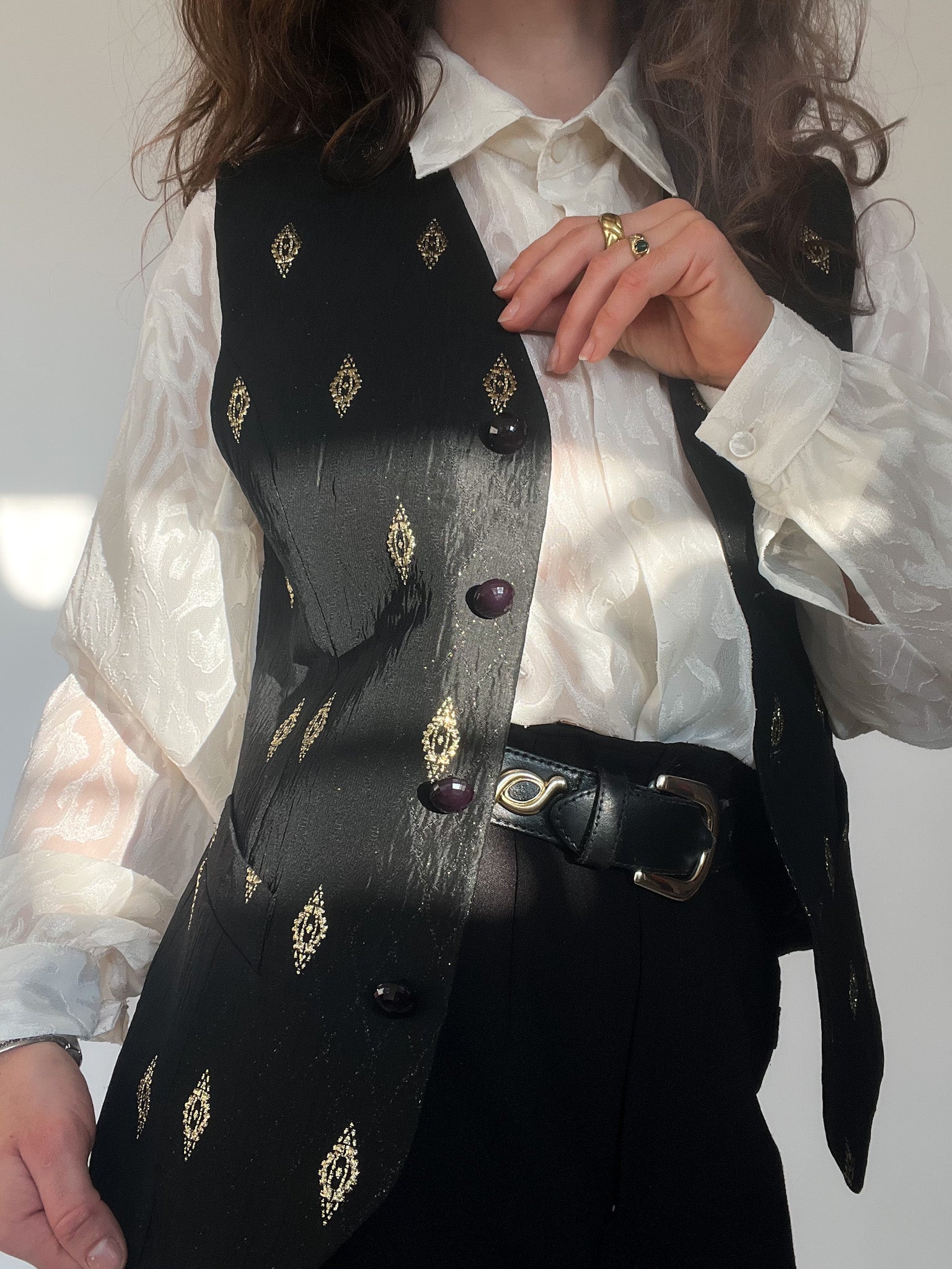 Vintage 90’s Black & Gold Cropped Evening Jacket