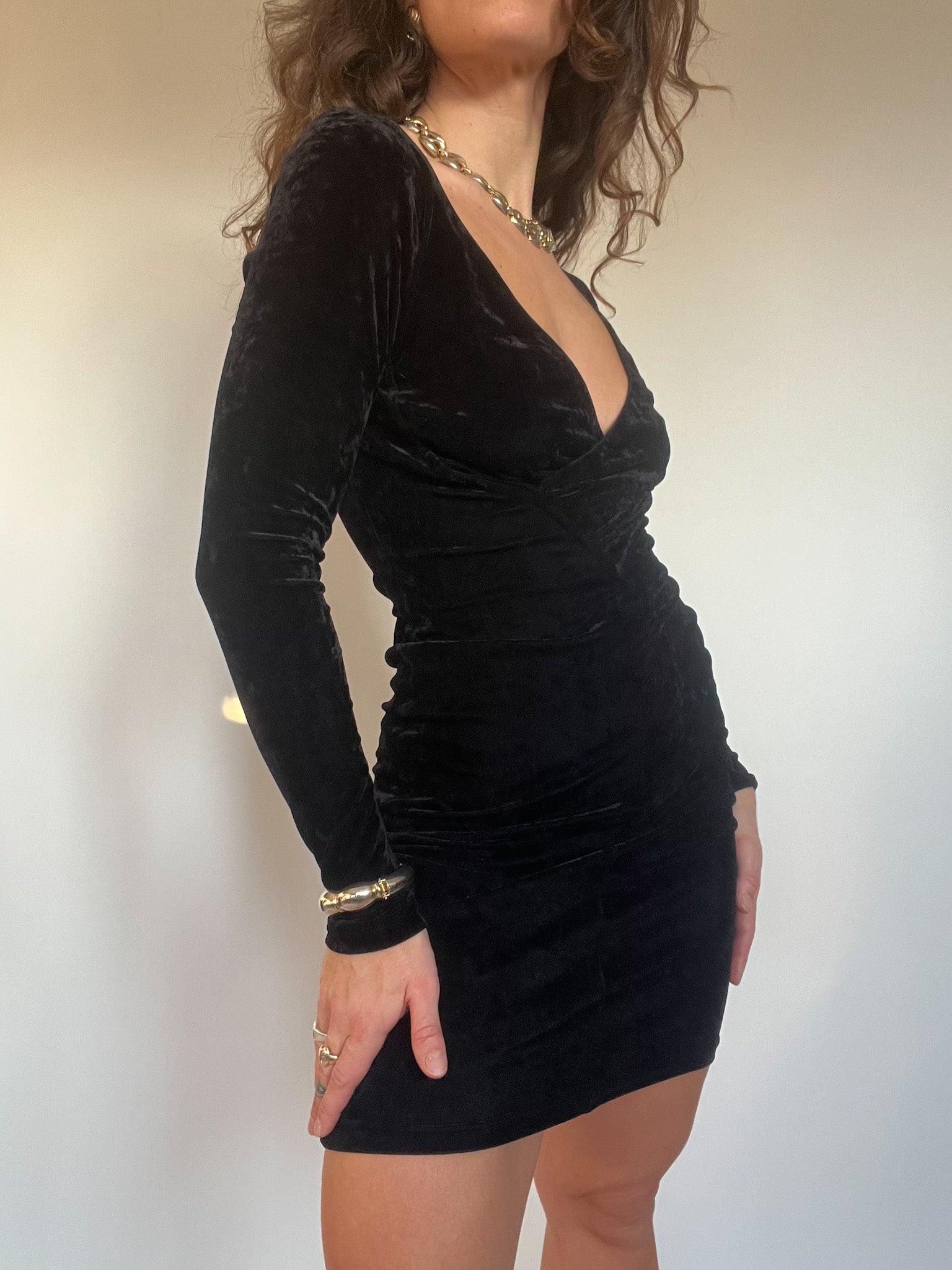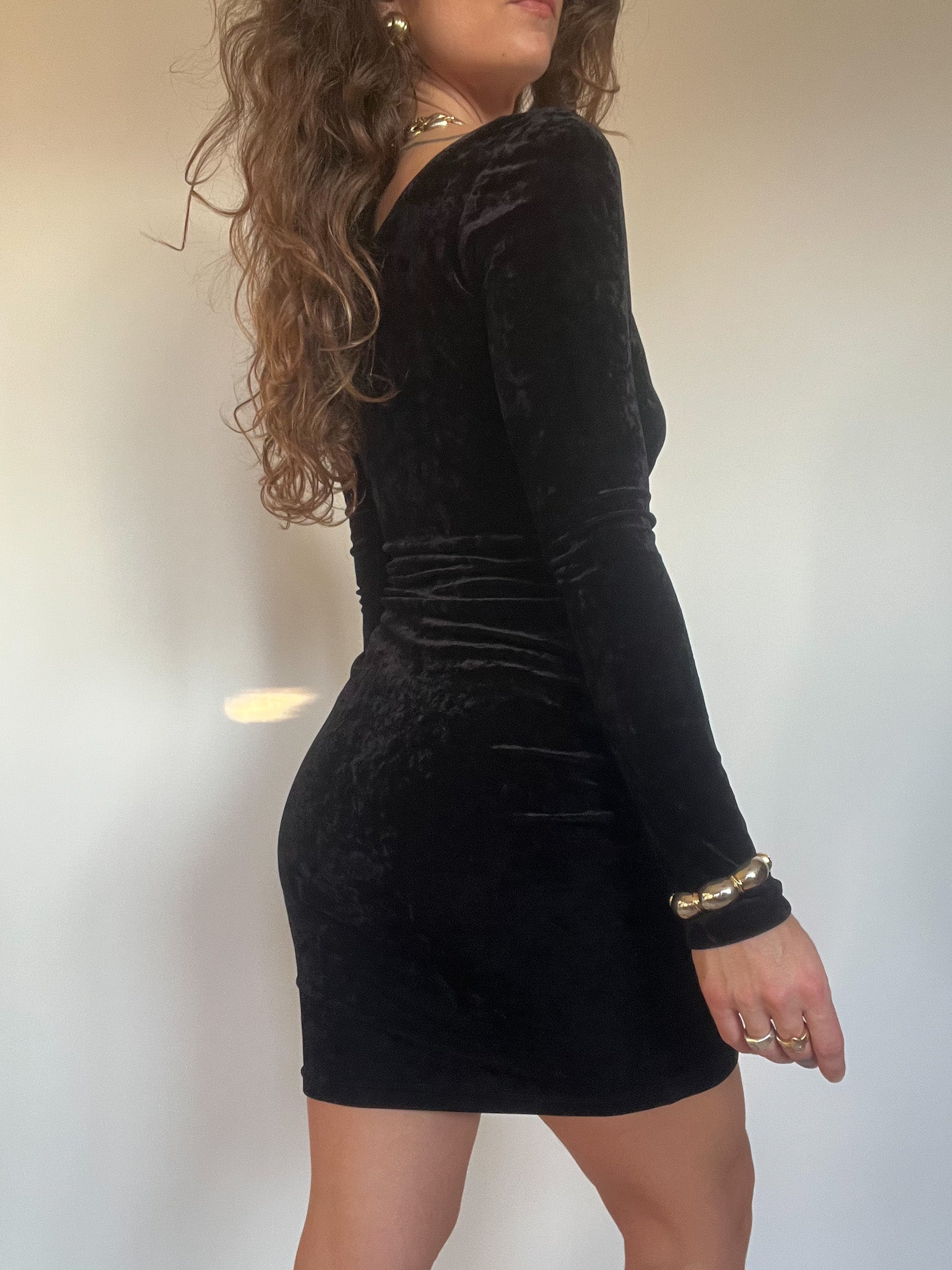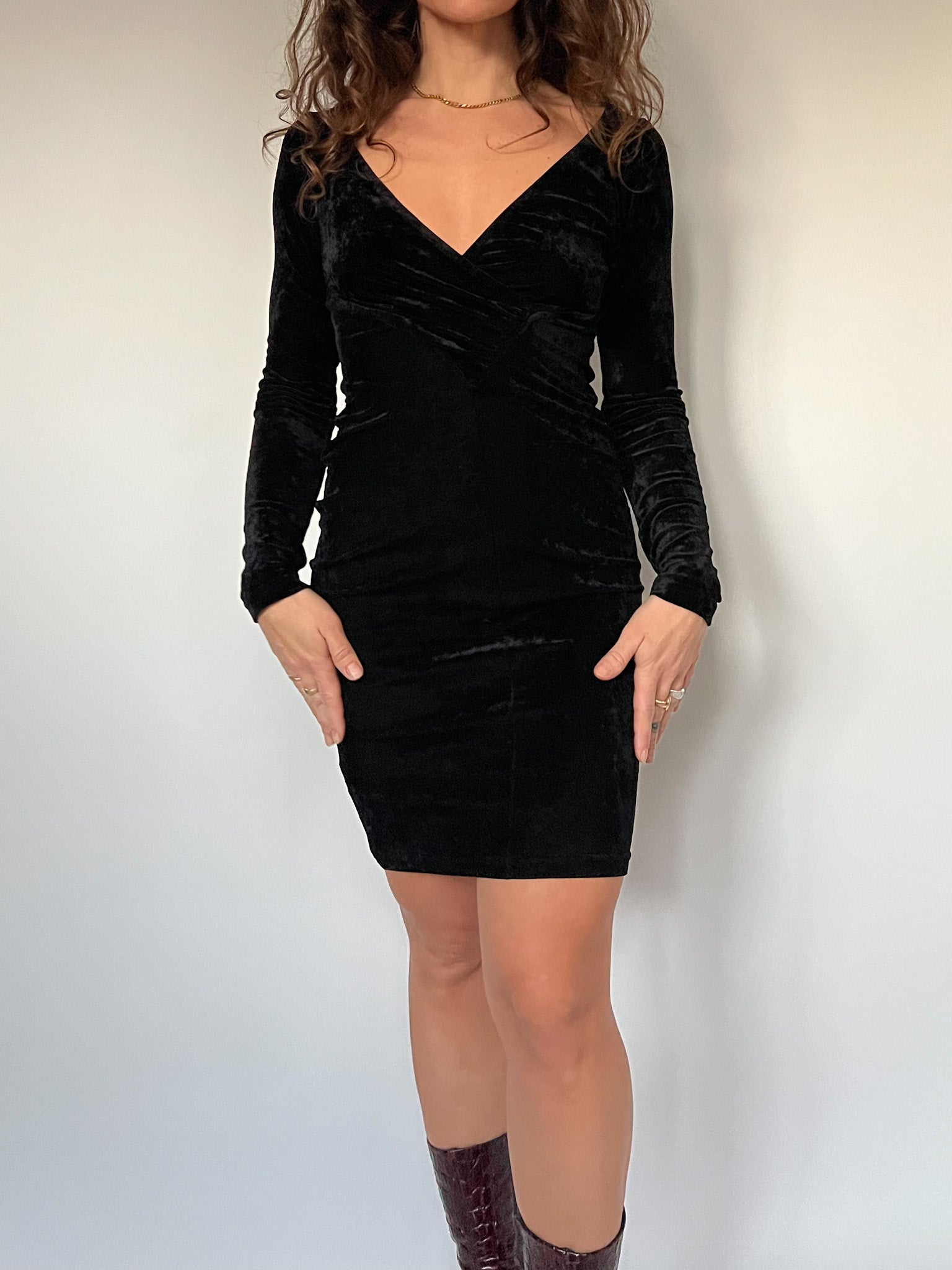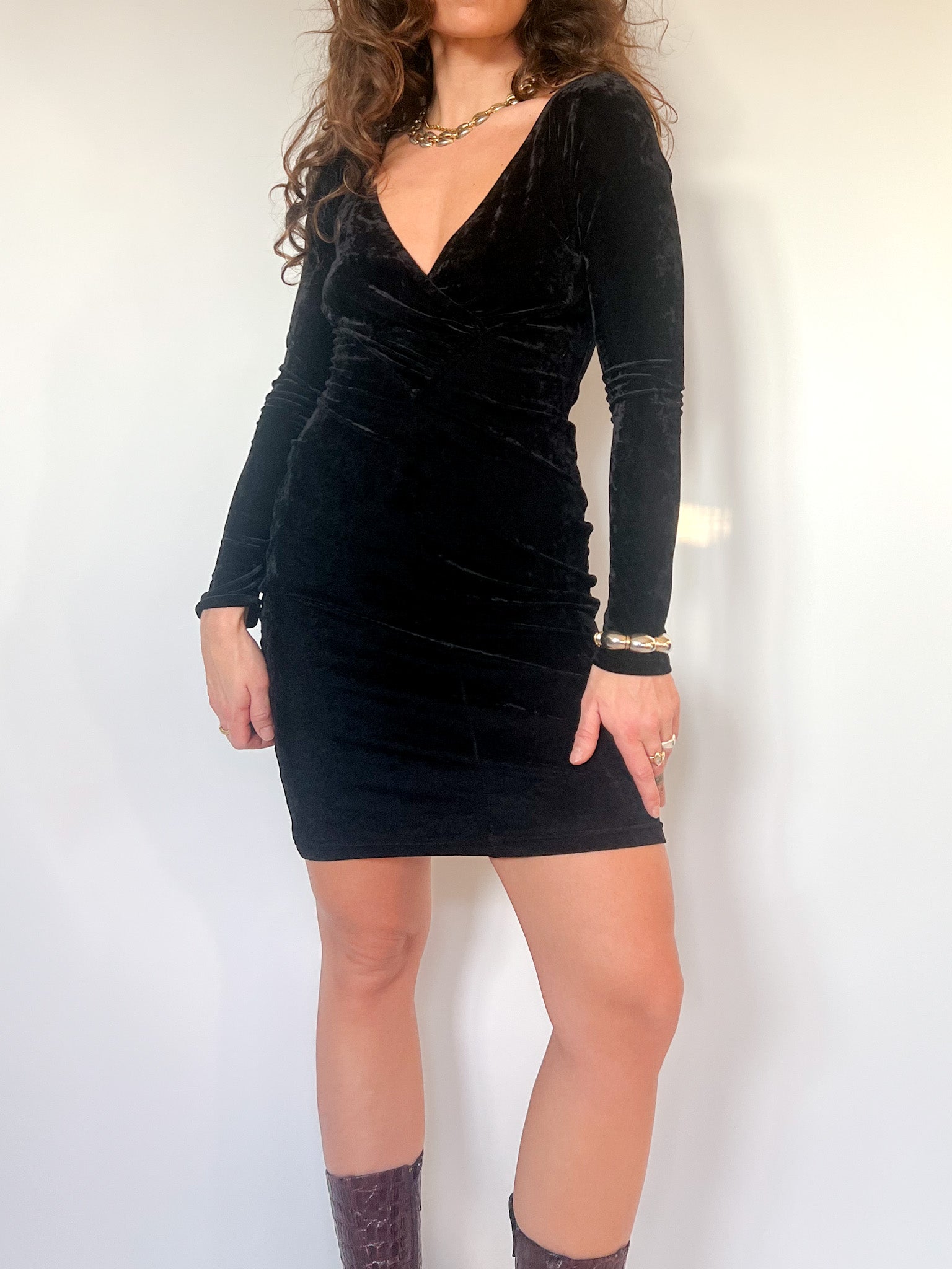 Vintage 90’s Black Velvet Wrap Effect Mini Dress