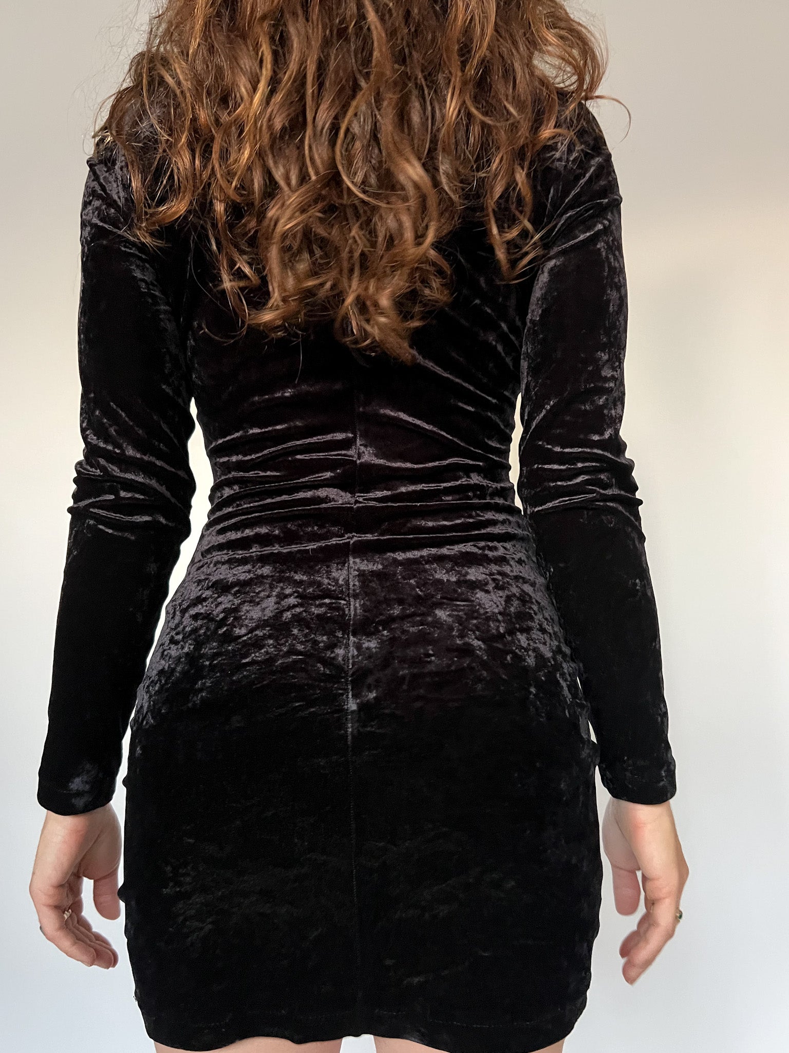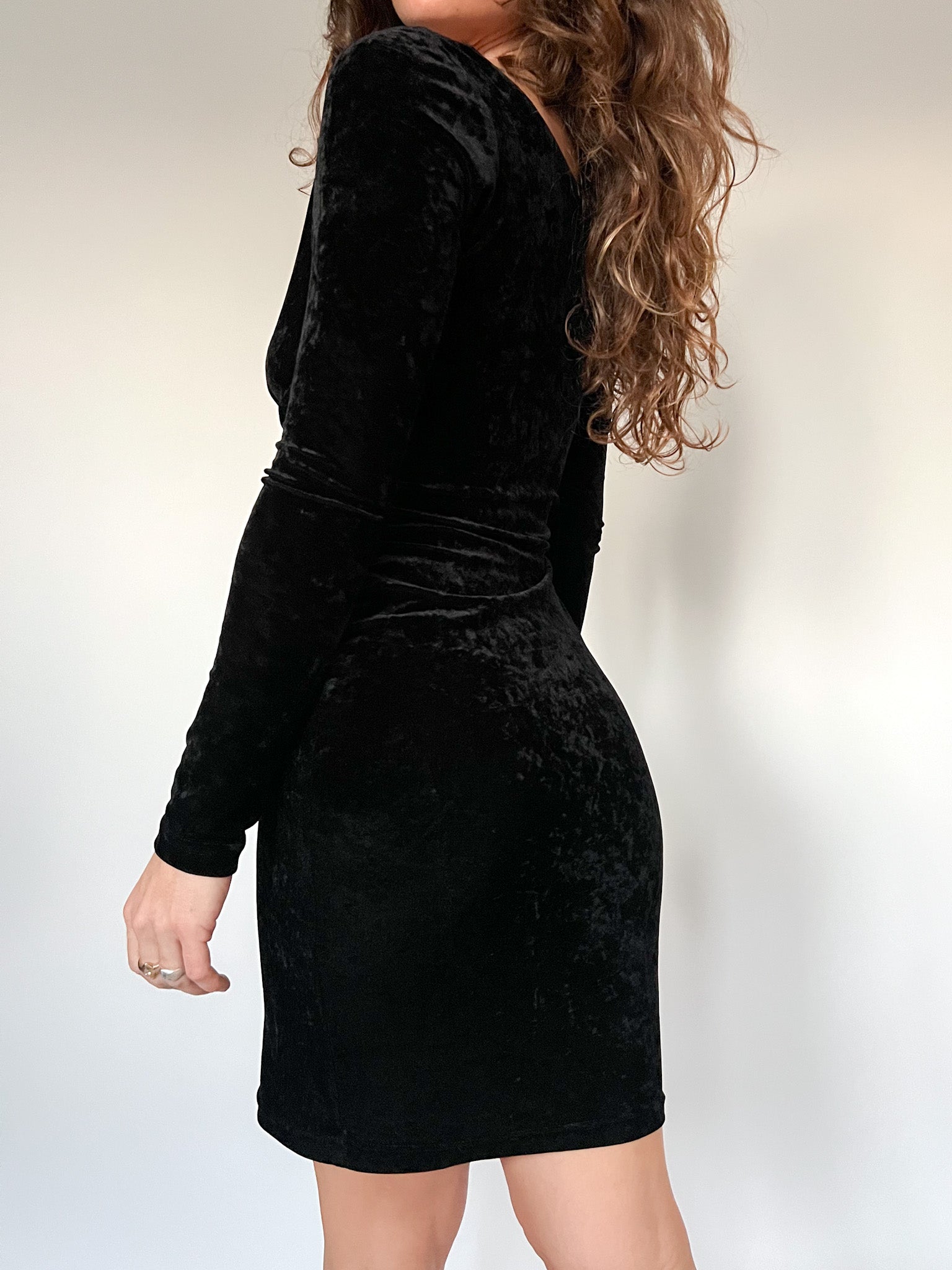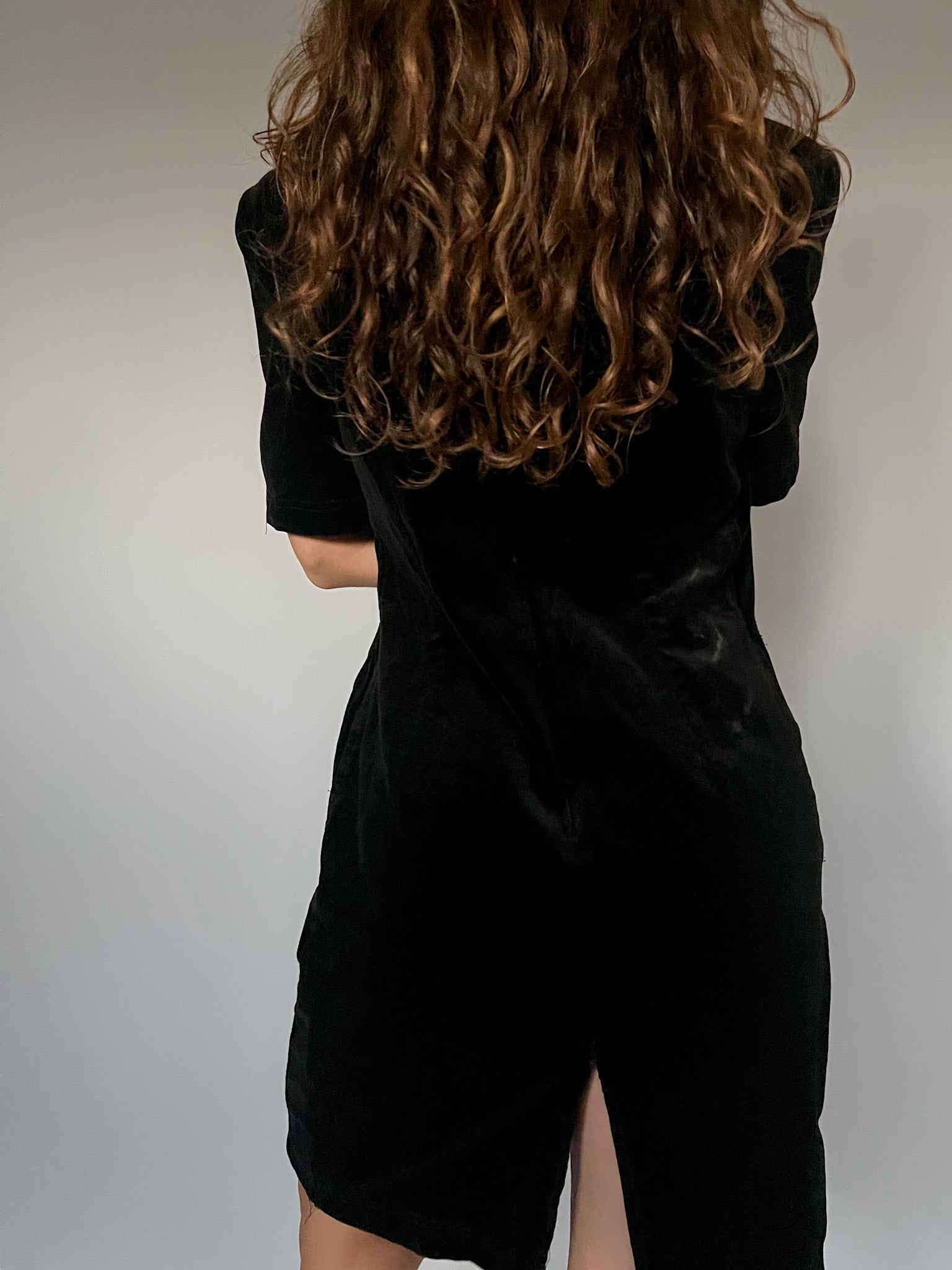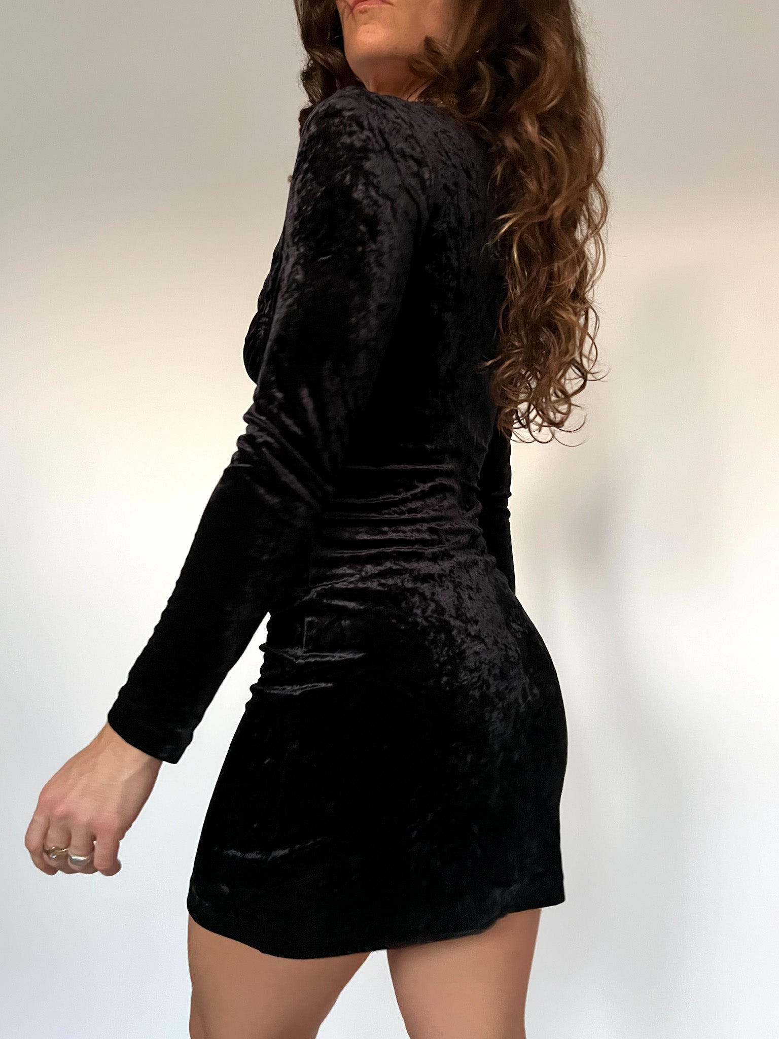 Vintage 90’s Black Velvet Wrap Effect Mini Dress