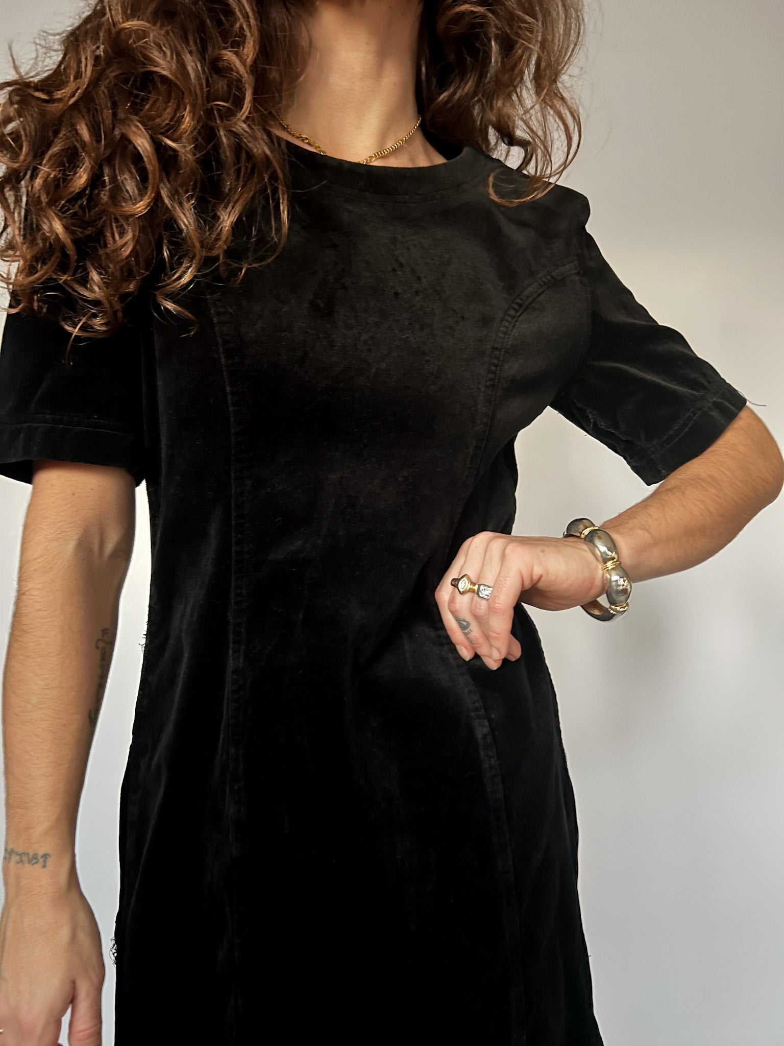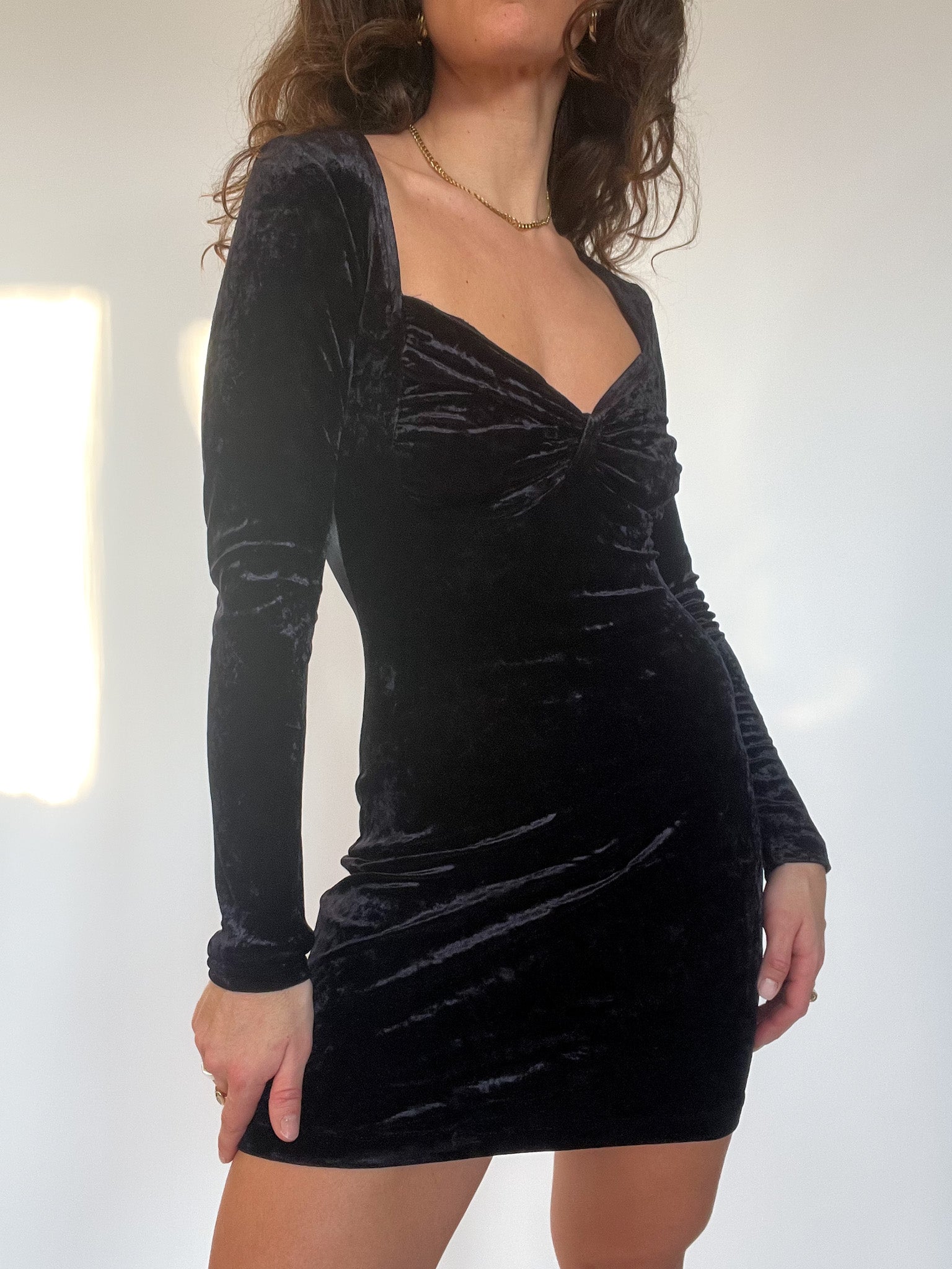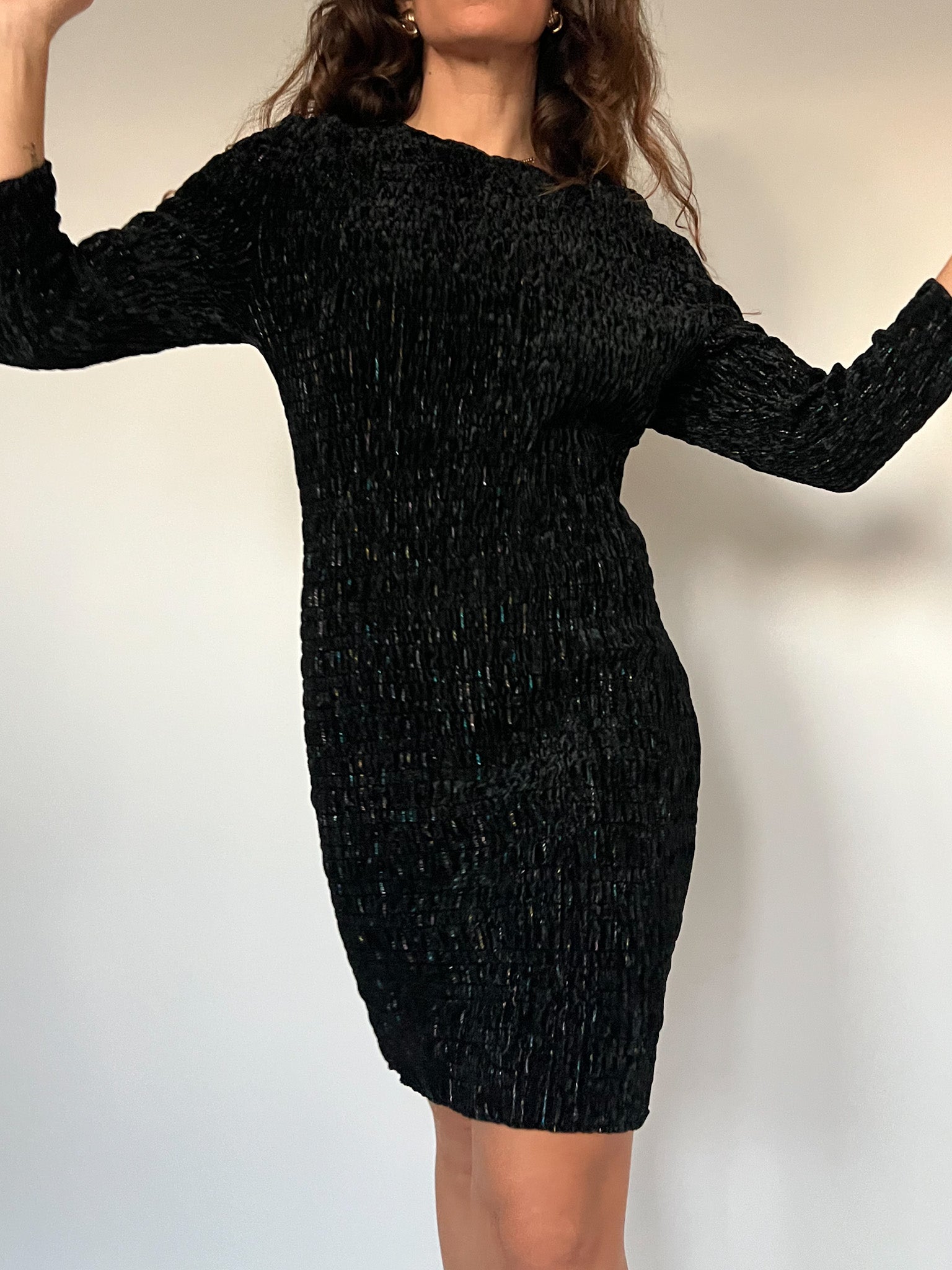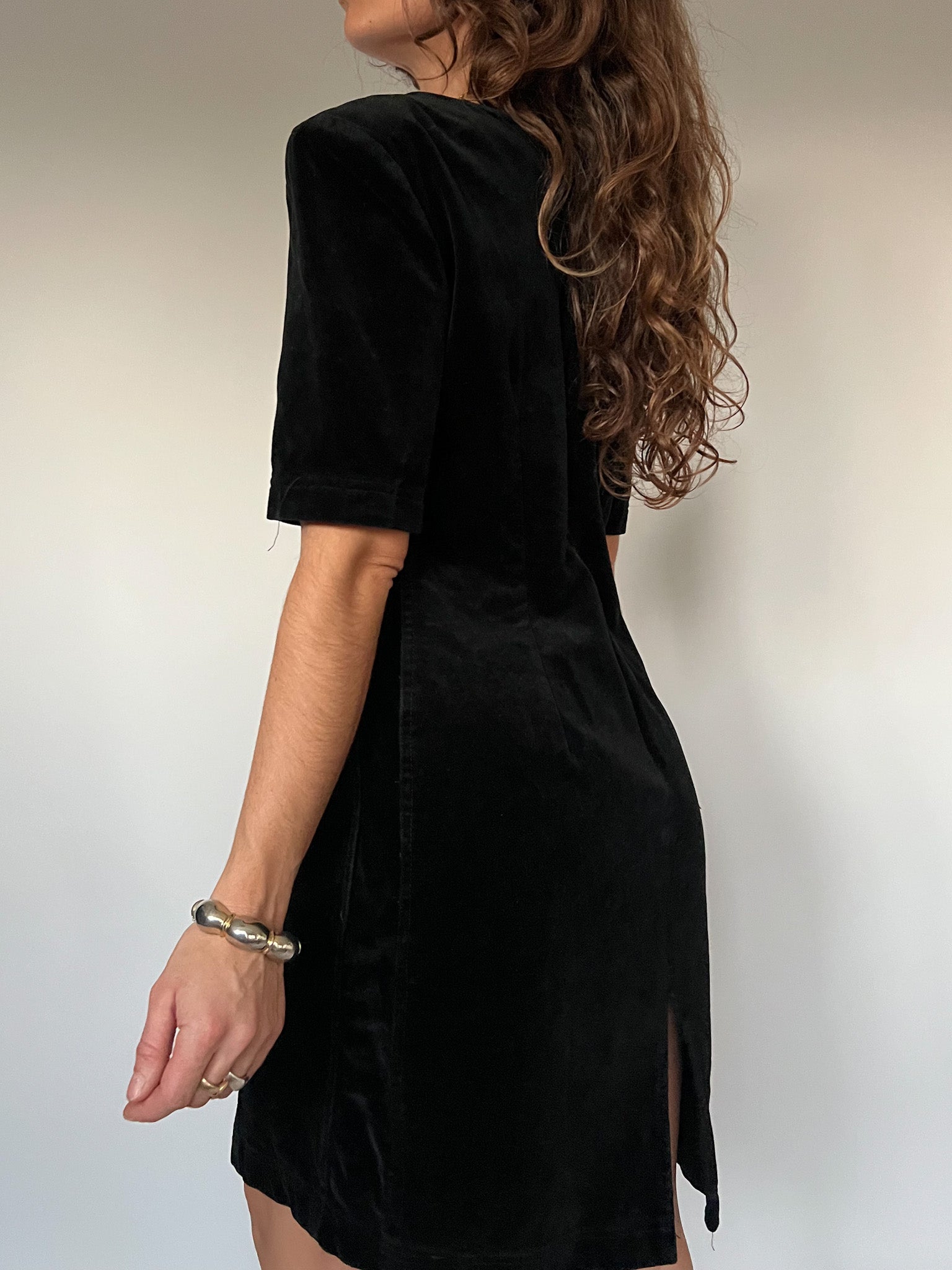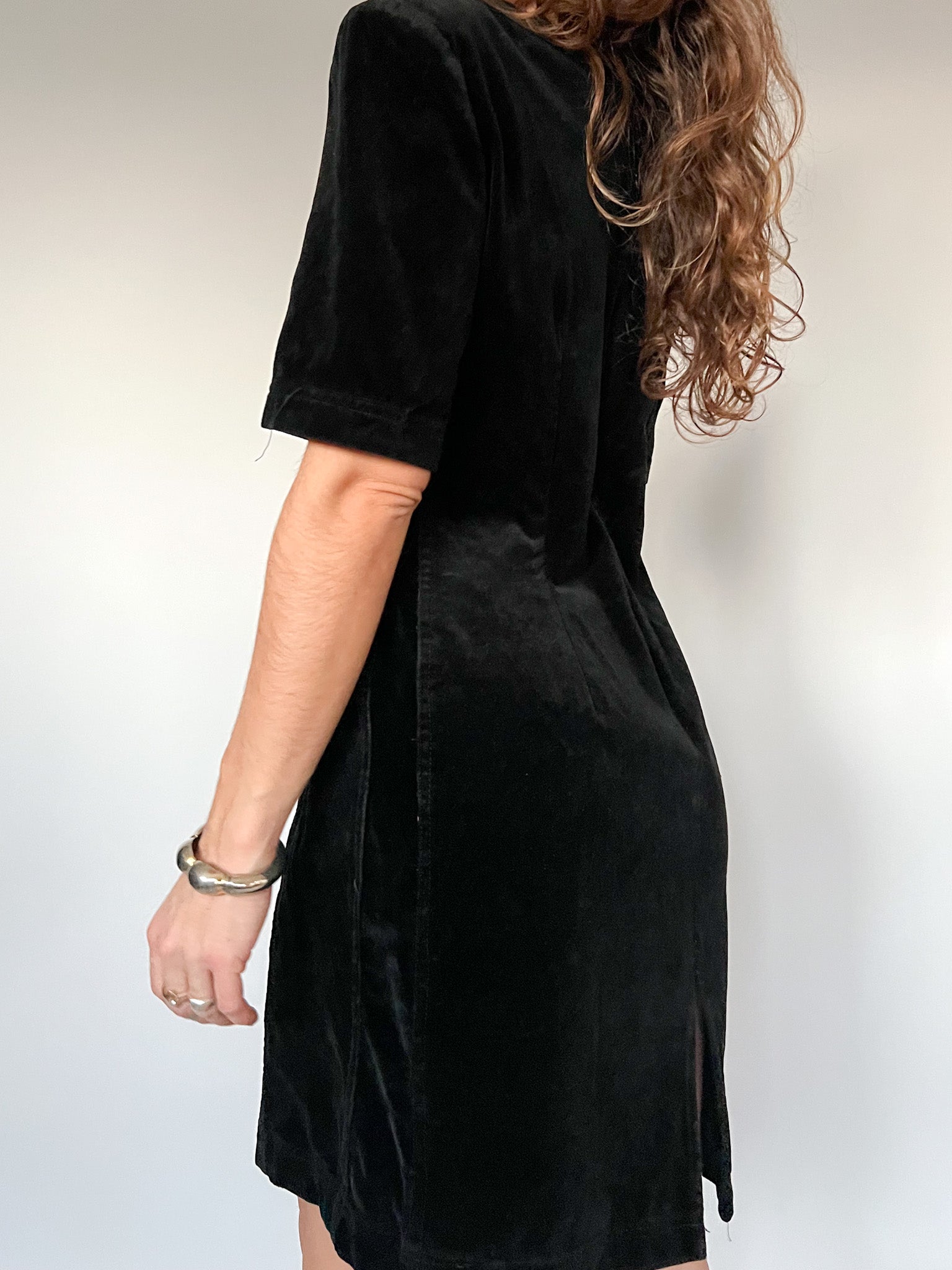 Vintage 90’s Black Velvet Wrap Effect Mini Dress